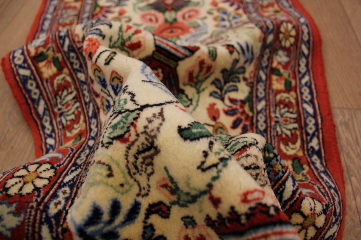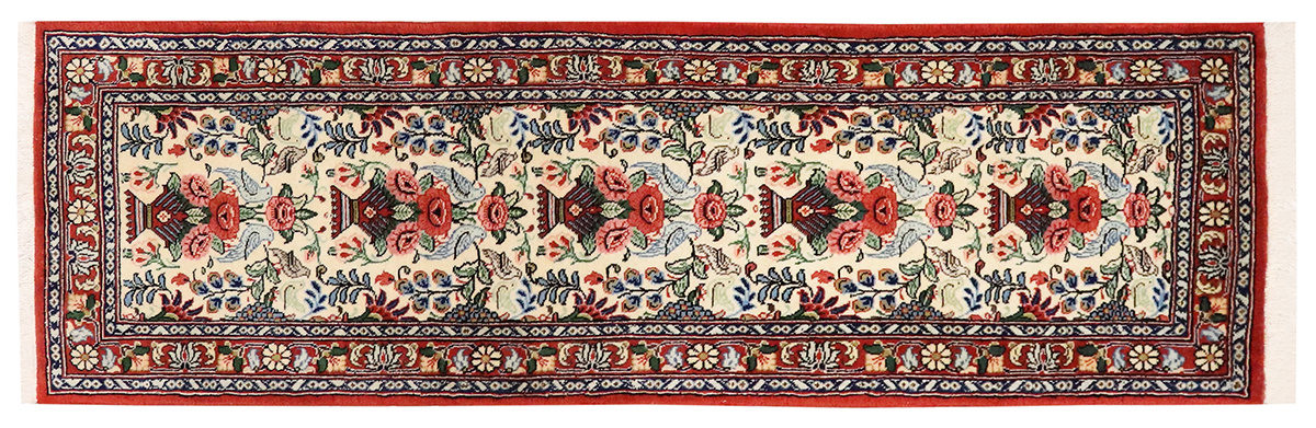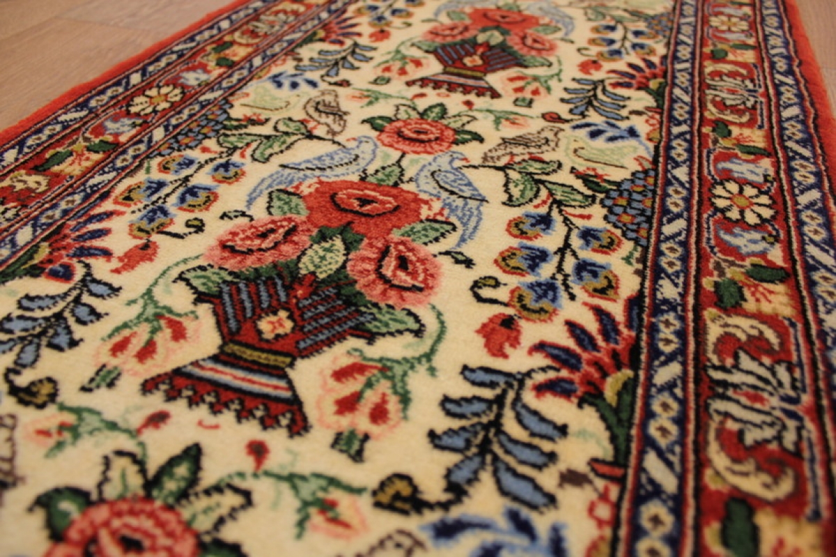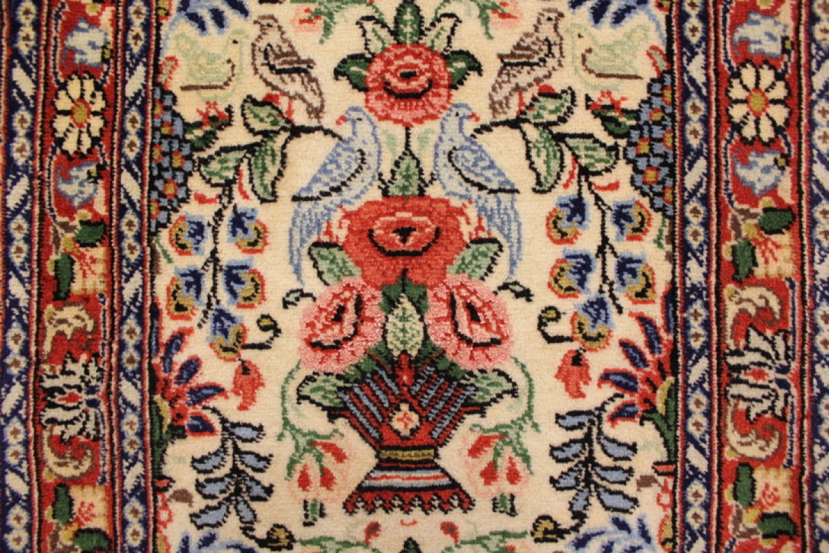 Waraminteppiche sind einer der qualitativ feinsten Teppiche überhaupt. Diese haben etwa 500.000 Knoten per Quadratmeter und haben ihr eigenes spezielles Design mit sehr vielen Vögelabbildungen und Paradiesmuster.