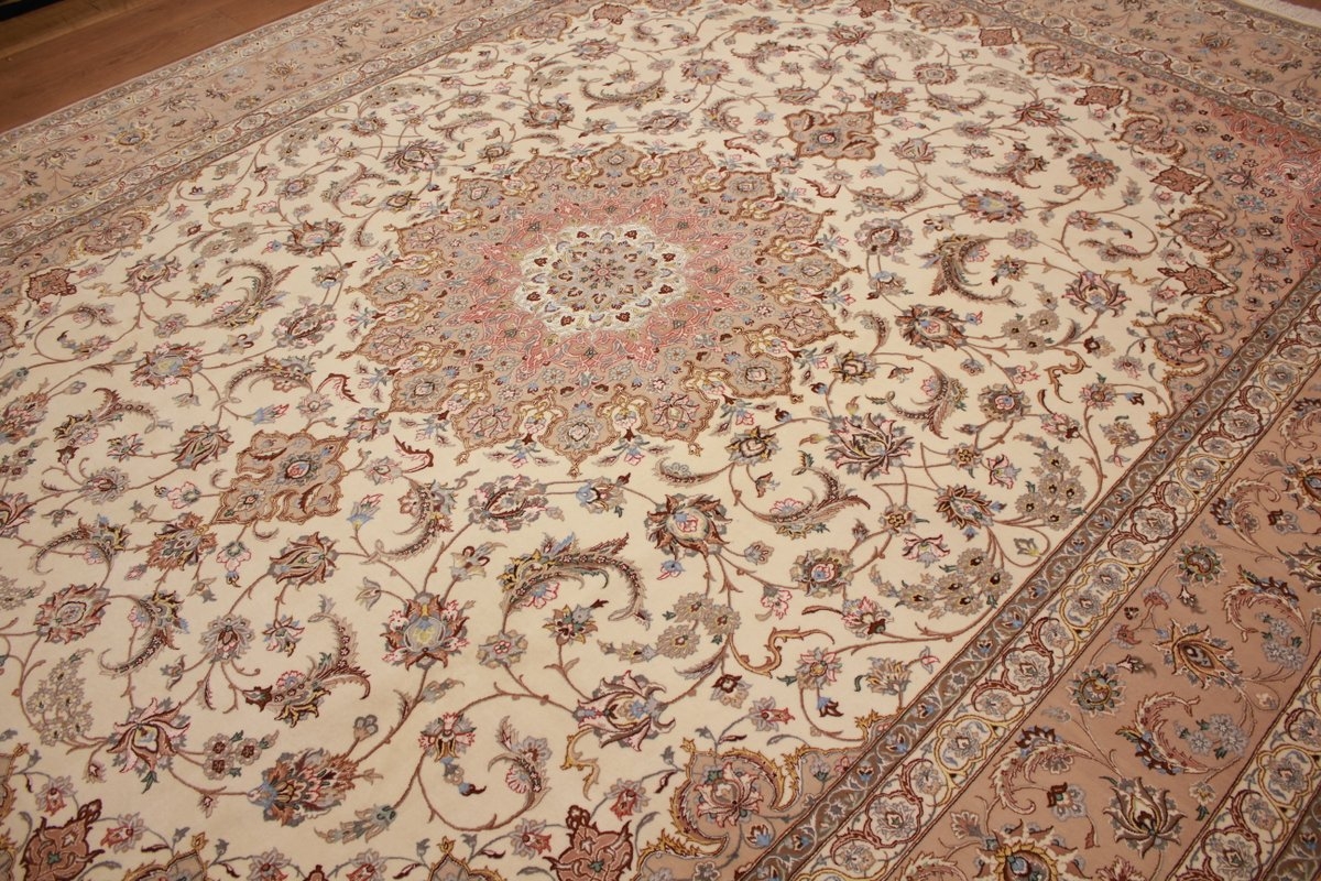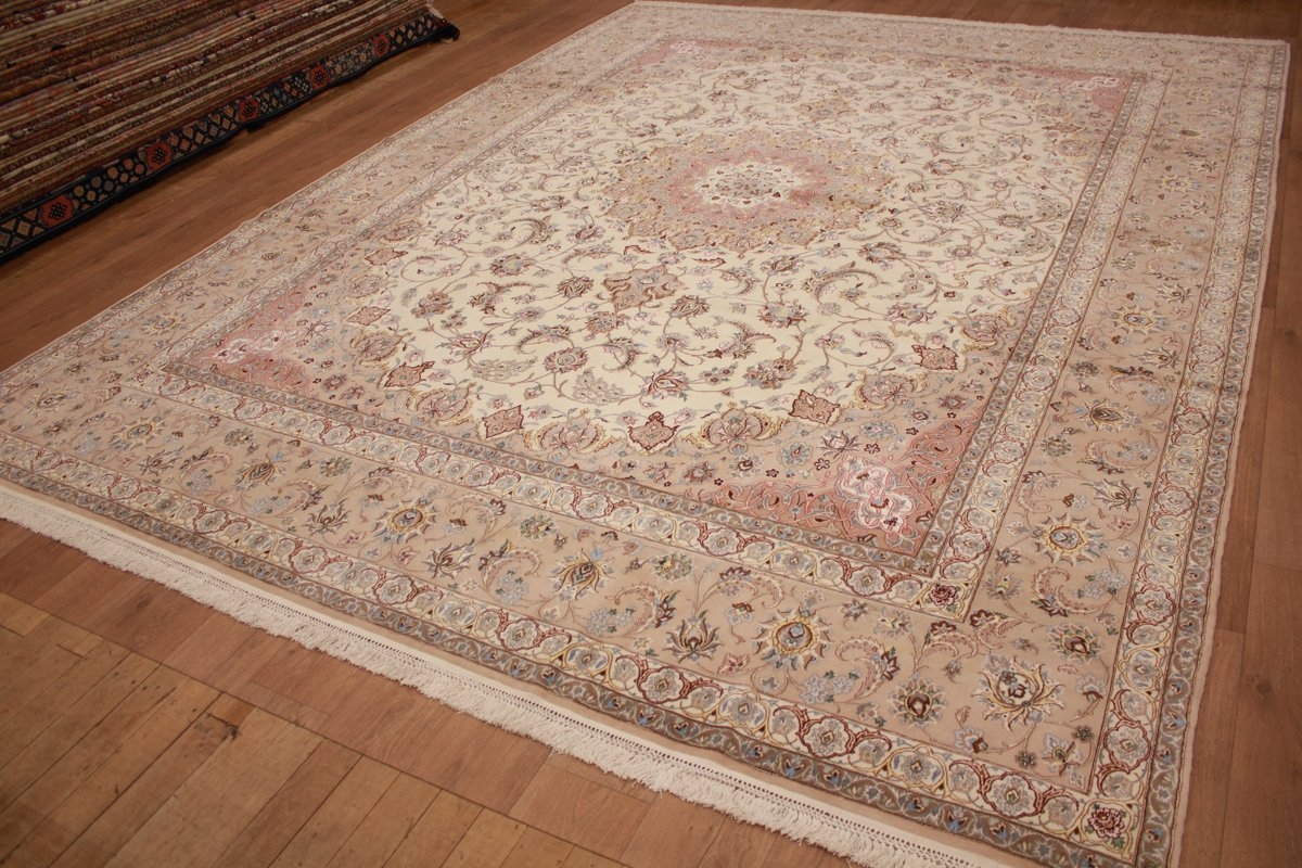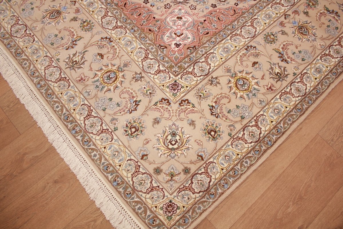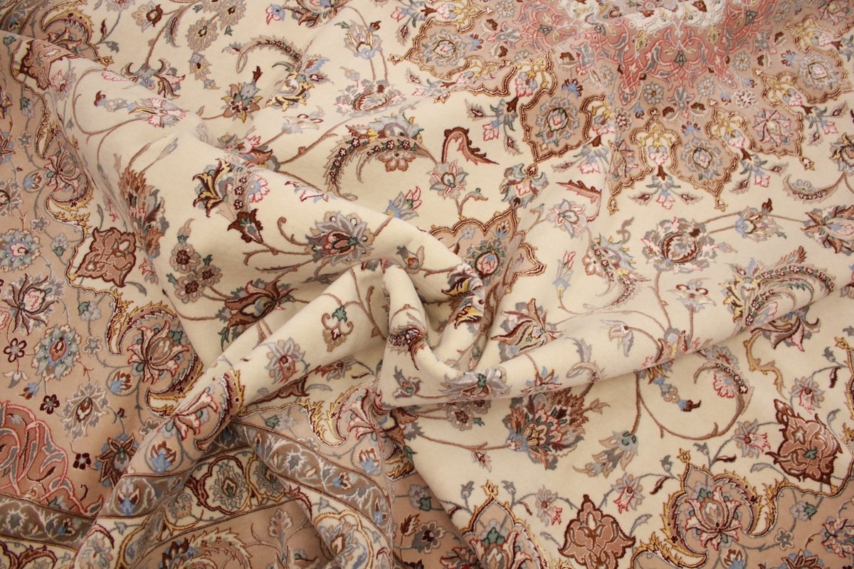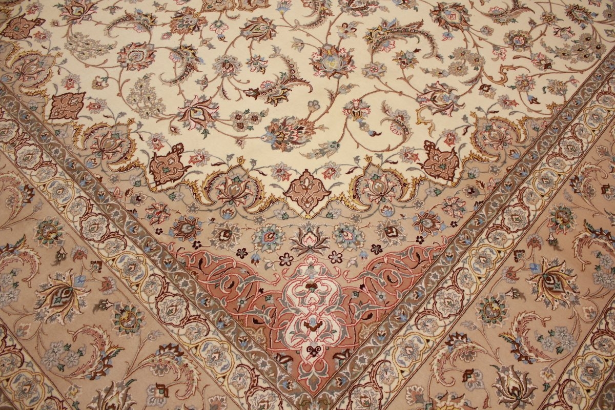 Großer Teppich Isfahan mit Seide 407x315 cm Beige