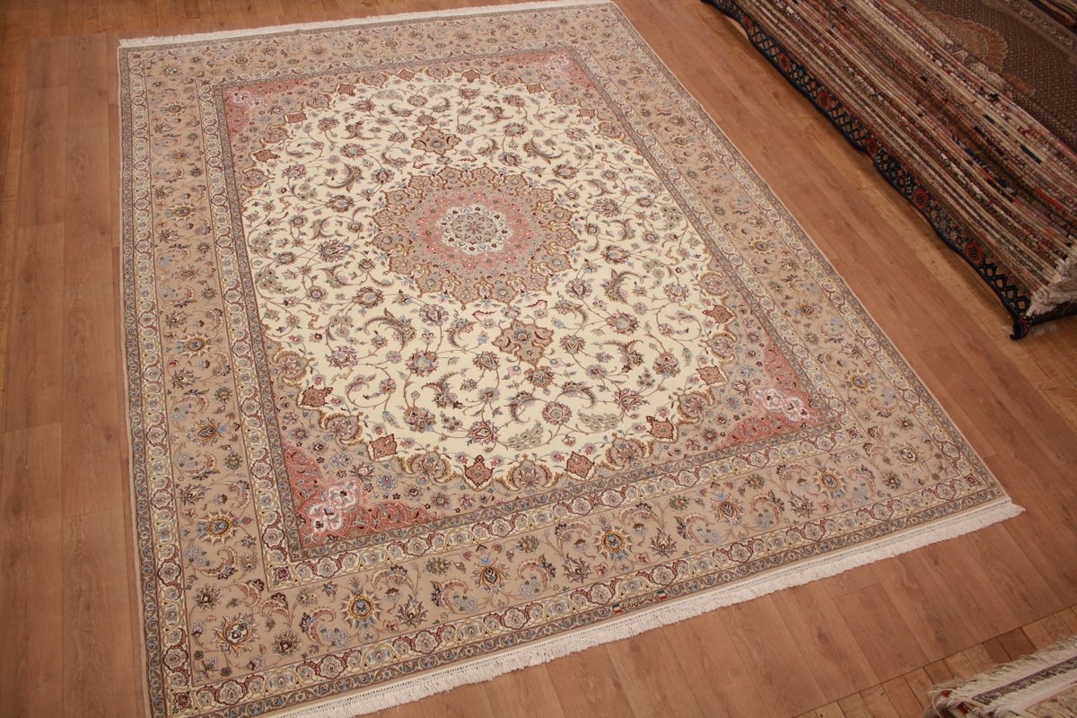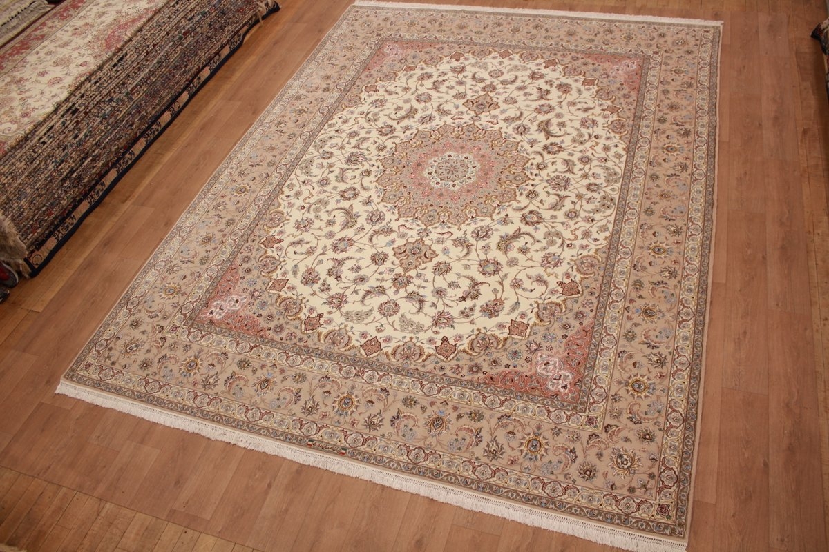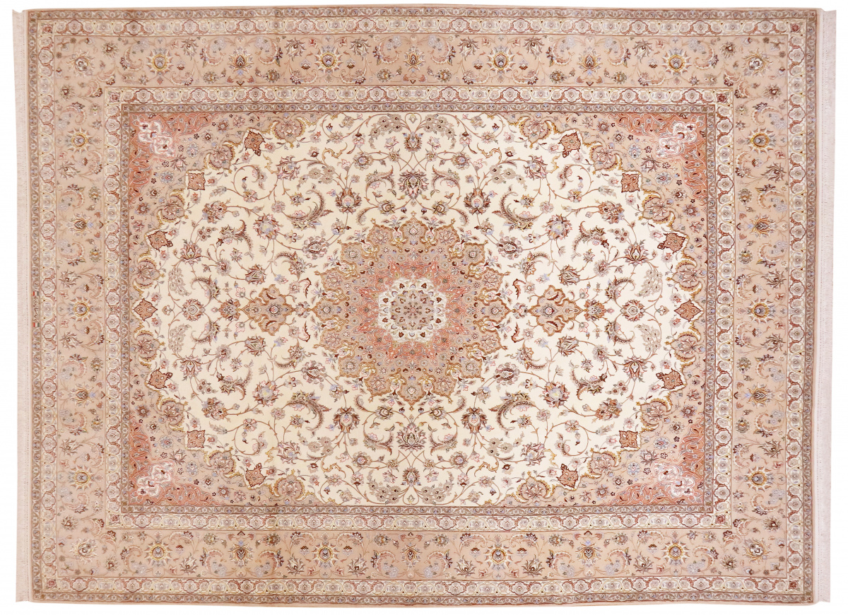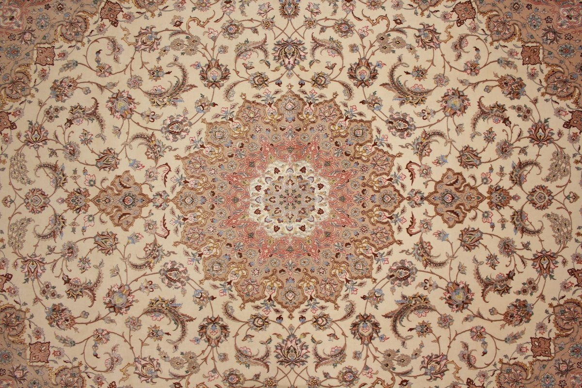 Großer Teppich Isfahan mit Seide 407x315 cm Beige