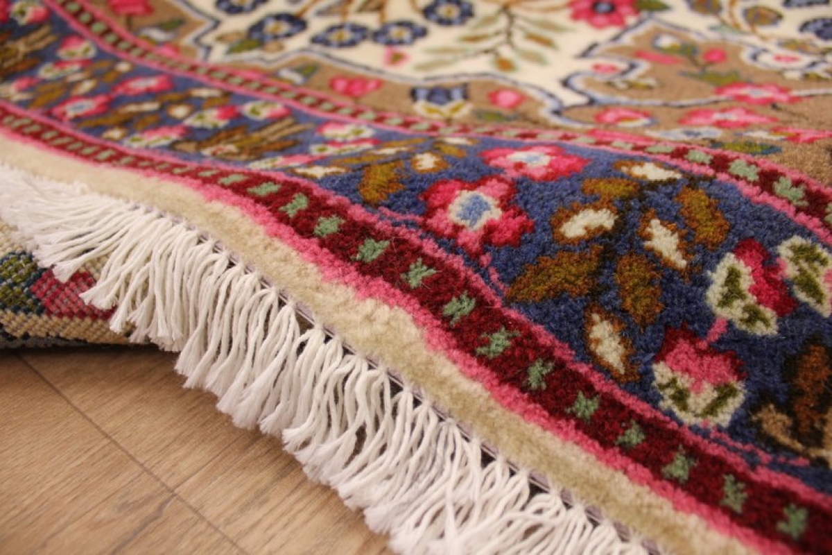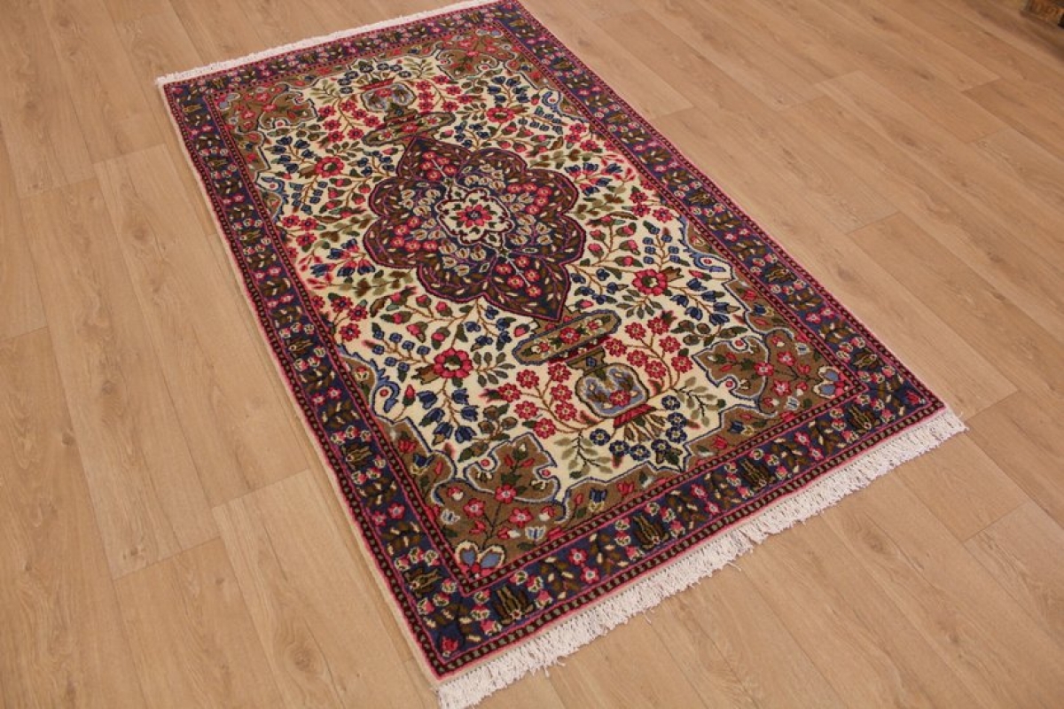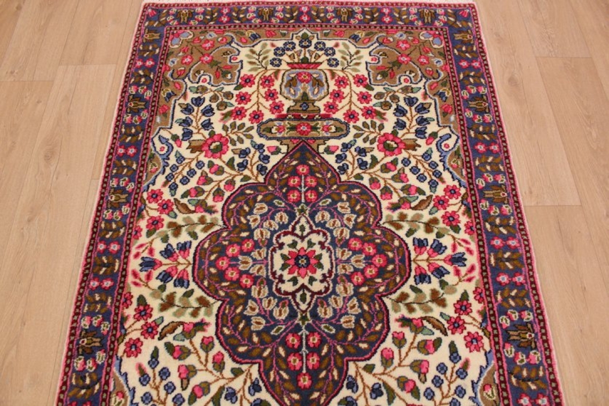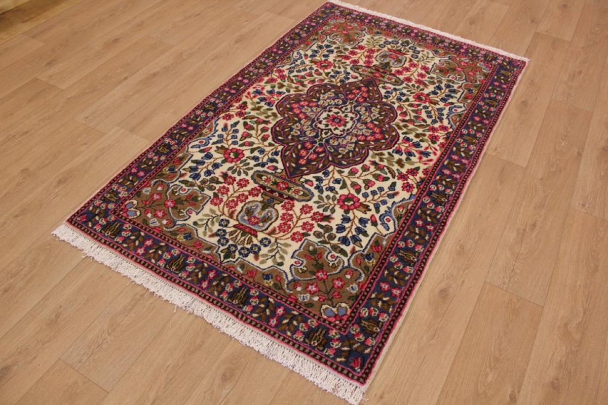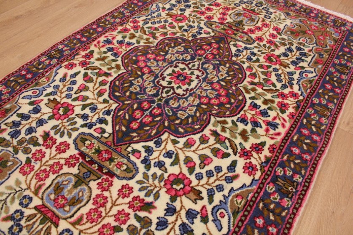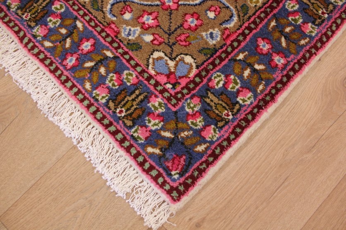 Kerman, auch Kirman, Hauptstadt der gleichnamigen Provinz in Persien. Kerman liegt 1076 km südöstlich von Tehran und 370 Kilometer südöstlich von Yazd entfernt. Die Stadt wurde von Ardashir I. (224 - 241) gegründet und liegt im Zentralpersien. Kerman wurde durch Turkmans, Araber und Mongols nach dem 7. Jahrhundert eingenommen. Kerman wurde für seine Teppiche berühmt, nachdem Marco Polo sie entdeckt hatte. Die Teppichproduktion ist sehr traditionsreich, die gute Qualität sowie die Lebendigkeit und Harmonie der Muster und Farben zeichnen Kerman Teppiche aus.
