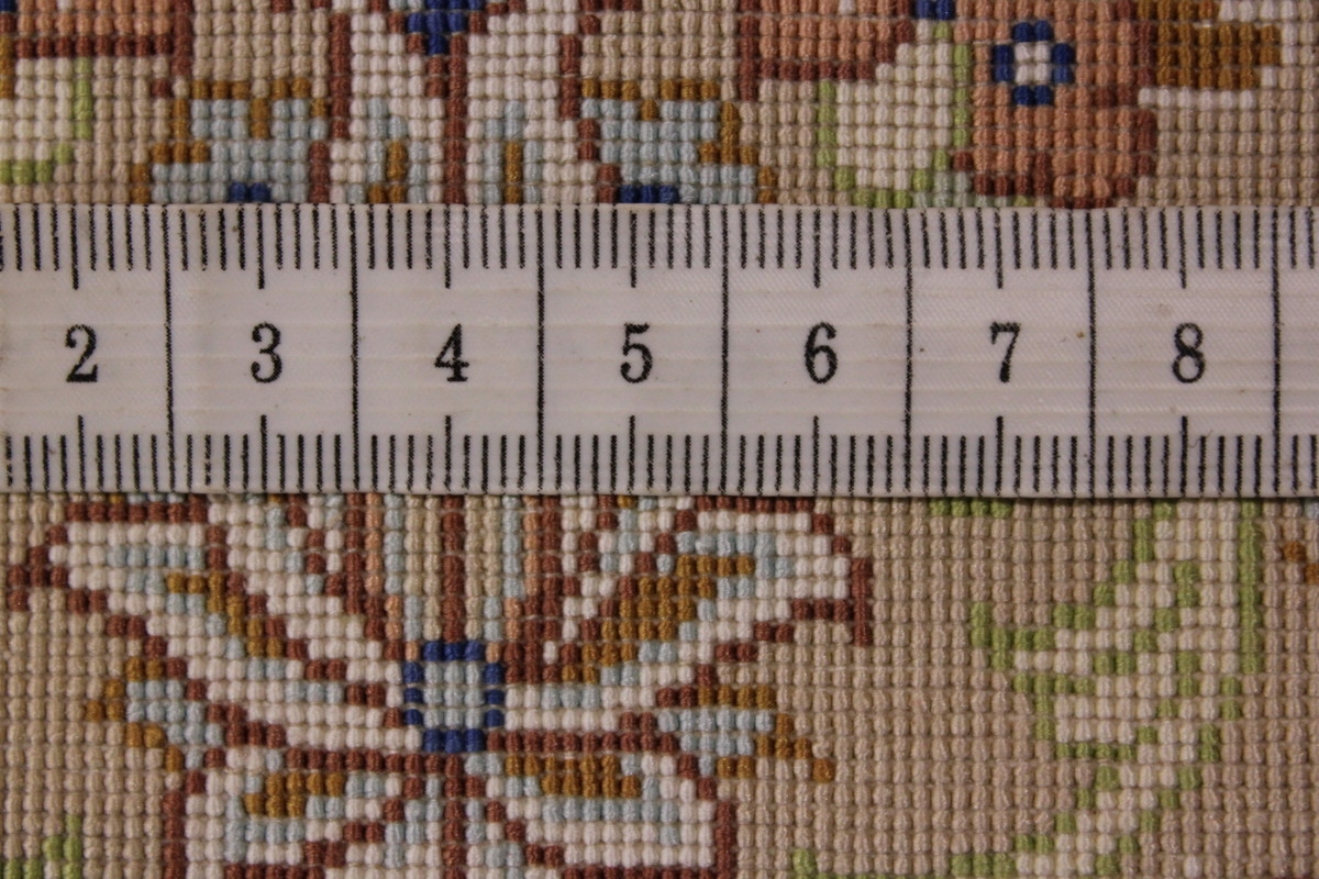Trotz der vielseitigen Farbpalette hat der Gom-Teppich niemals grelle Farkontraste, sondern achtet auf eine harmonische Farbabstimmung. Bemerkenswert ist auch die äußerst exakte Knüpfung, die fast an Maschinenarbeit erinnert.