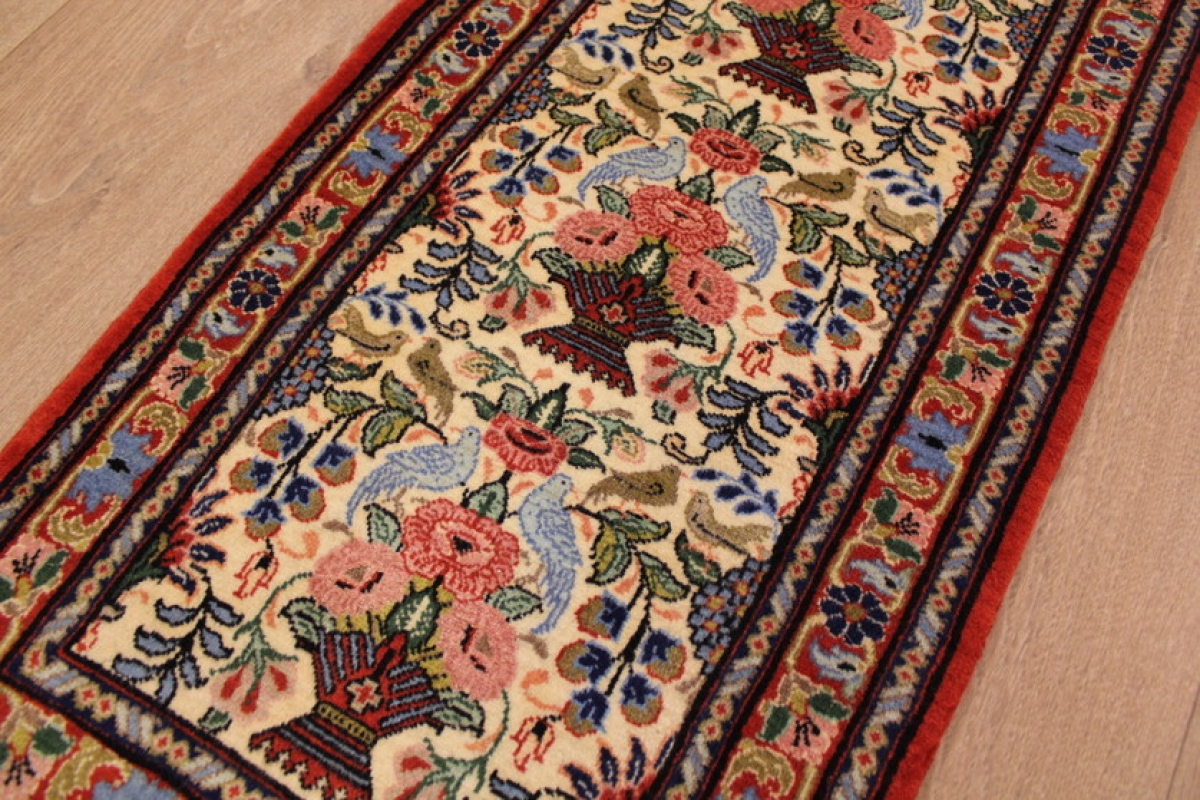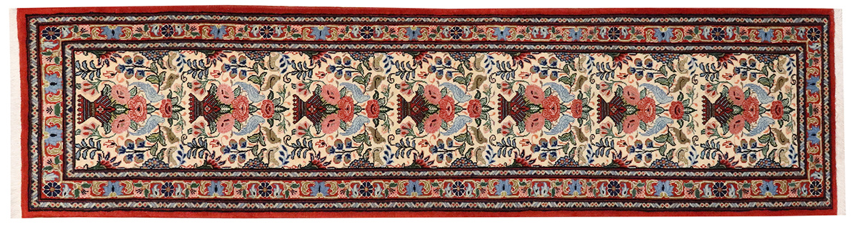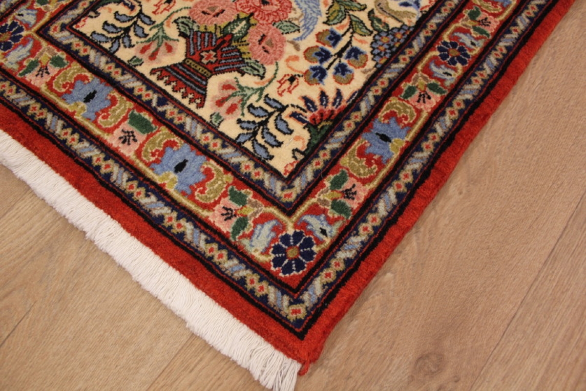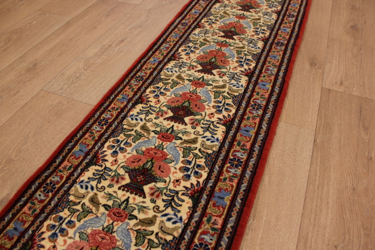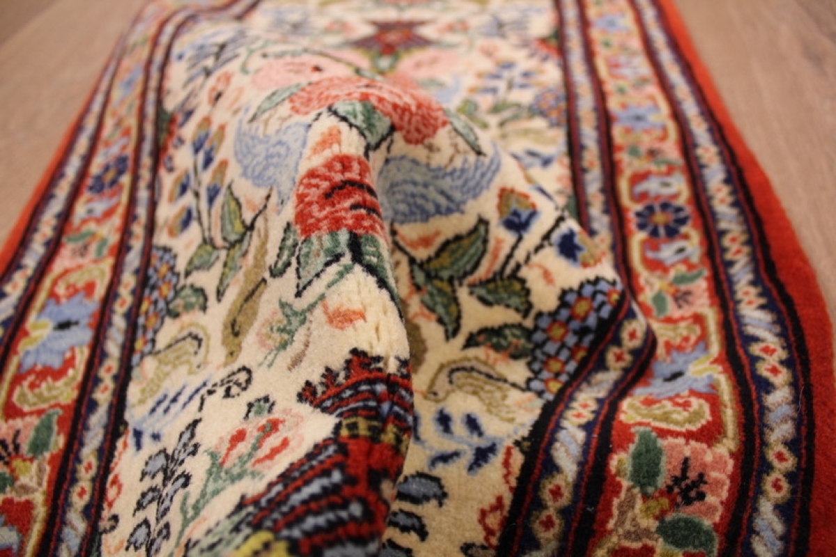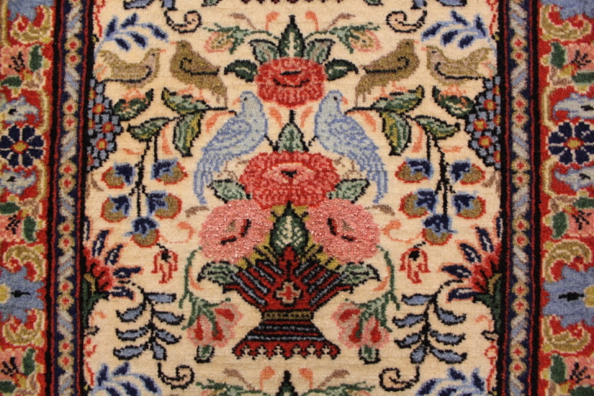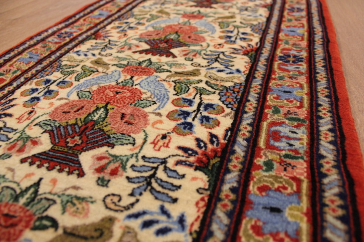 Waraminteppiche sind einer der qualitativ feinsten Teppiche überhaupt. Diese haben etwa 500.000 Knoten per Quadratmeter und haben ihr eigenes spezielles Design mit sehr vielen Vögelabbildungen und Paradiesmuster.