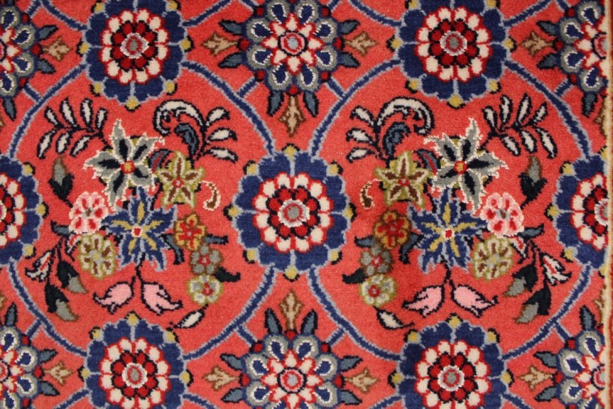 Saroug zählt qualitativ zu den bedeutendsten Knüpforten des Orients. Die Muster sind sehr originär und traditionsreich. Farbenfreudige Blatt- und Blumenmotive machen das Muster der Saroug Teppiche aus. Die exzellente Wollqualität sowie die hohe Knüpfdichte führten zur hohen Bekannt- und Beliebtheit von Saroug Teppichen weltweit. Antike Sarougs werden heute hoch gehandelt und unterstreichen die Hochwertigkeit und Qualität von Saroug Teppichen.