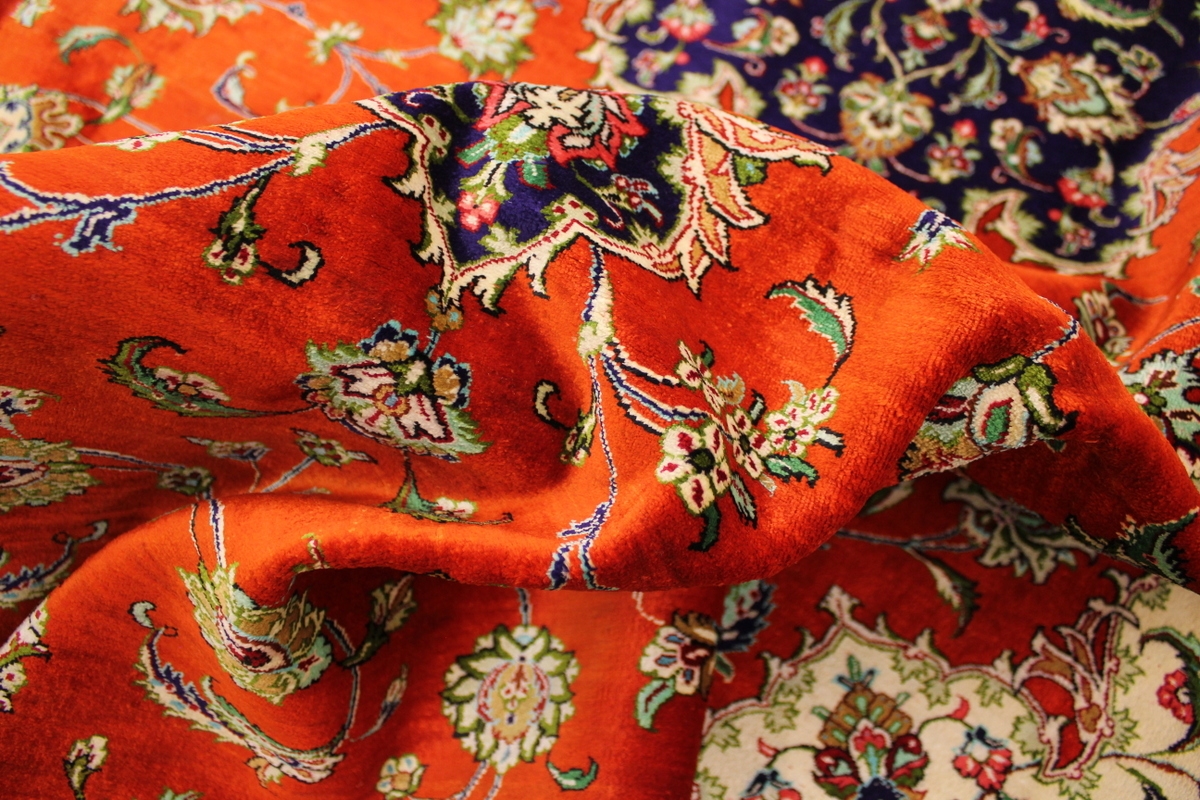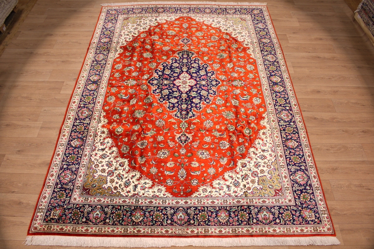 Perser Teppich Ghom Seidenteppich 344x244 cm Rot