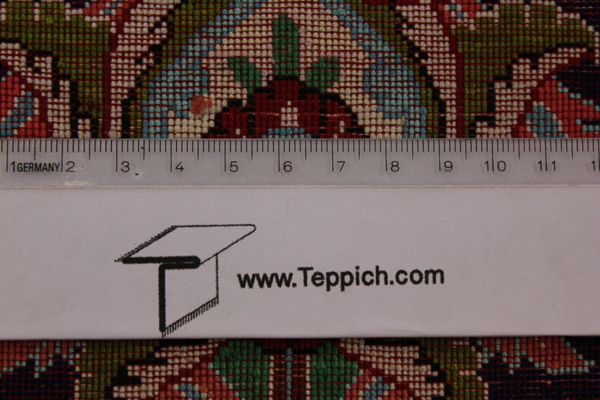 Trotz der vielseitigen Farbpalette hat der Gom-Teppich niemals grelle Farkontraste, sondern achtet auf eine harmonische Farbabstimmung. Bemerkenswert ist auch die äußerst exakte Knüpfung, die fast an Maschinenarbeit erinnert.