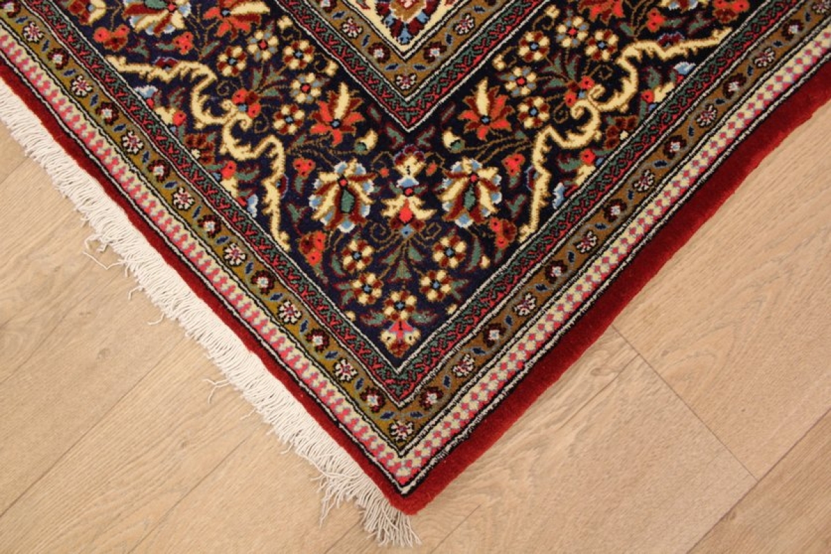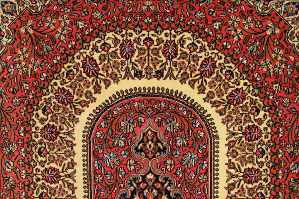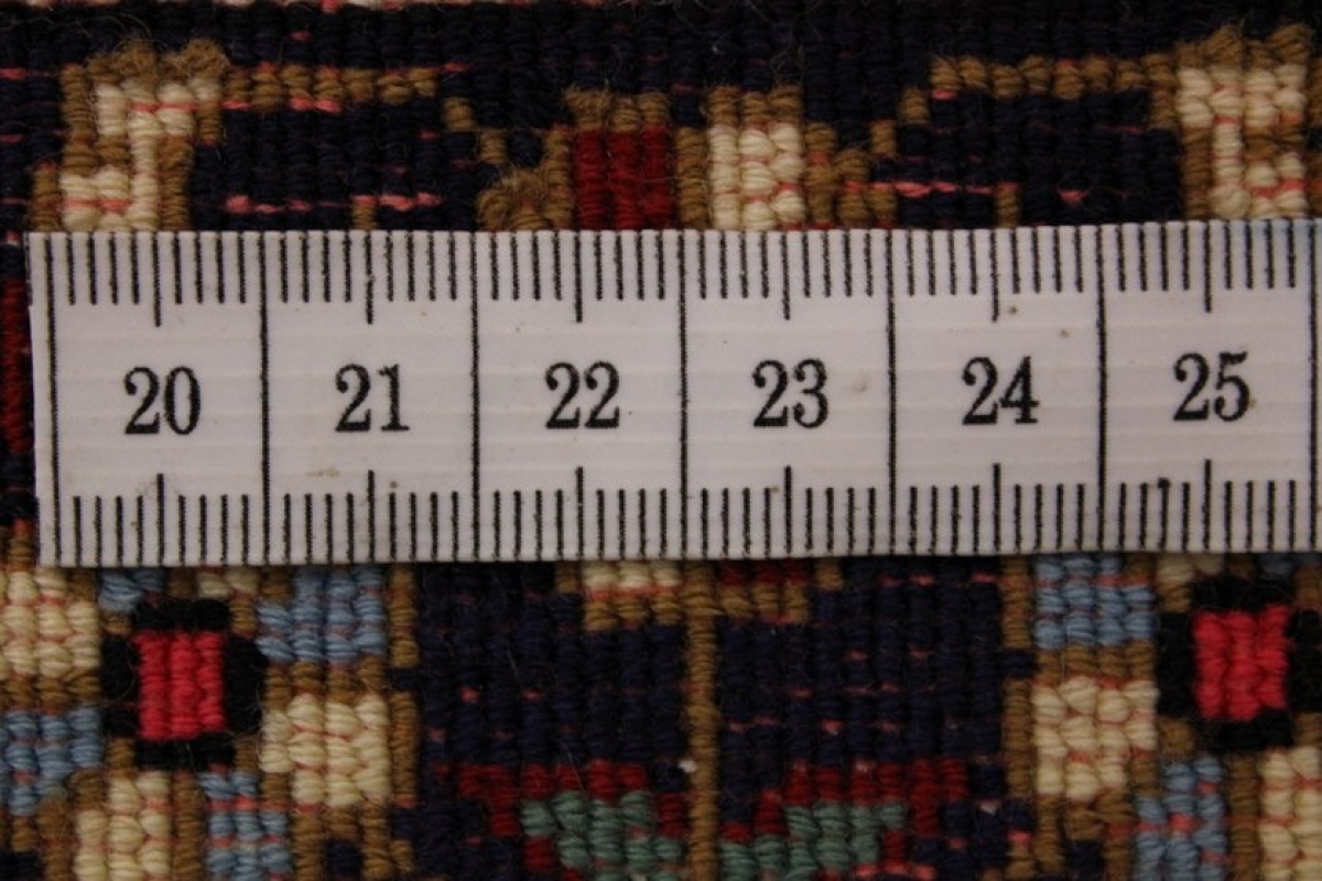 Trotz der vielseitigen Farbpalette hat der Gom-Teppich niemals grelle Farkontraste, sondern achtet auf eine harmonische Farbabstimmung. Bemerkenswert ist auch die äußerst exakte Knüpfung, die fast an Maschinenarbeit erinnert.