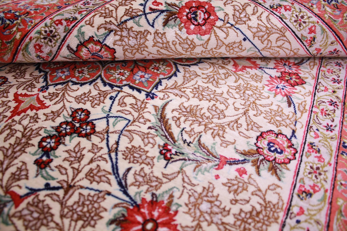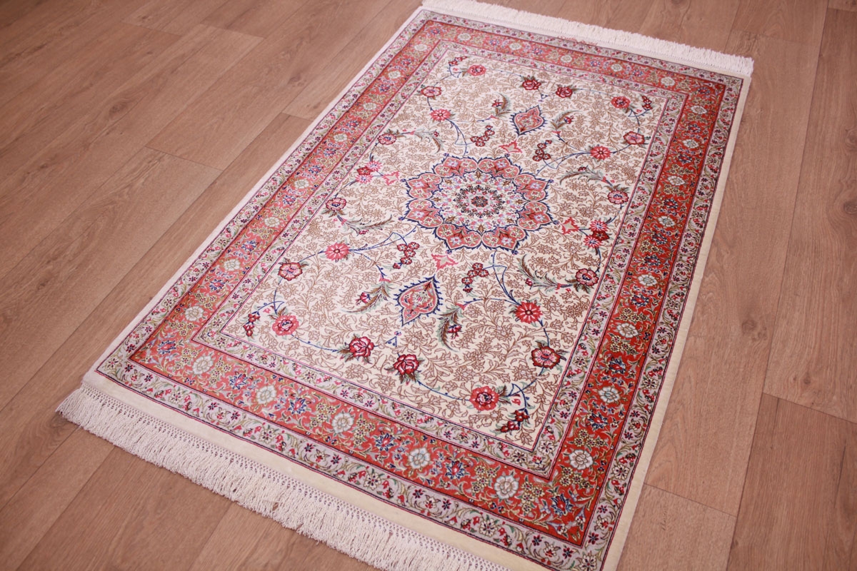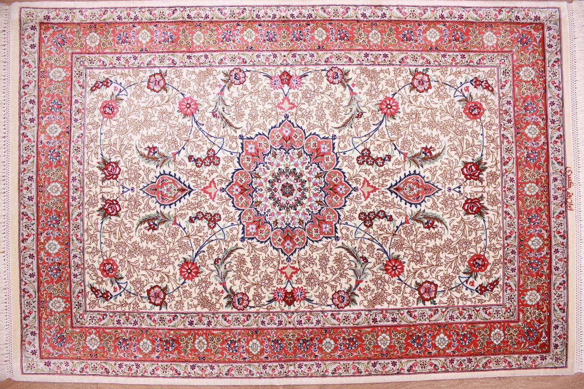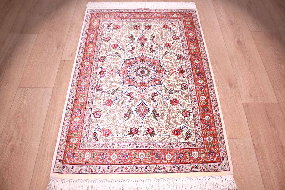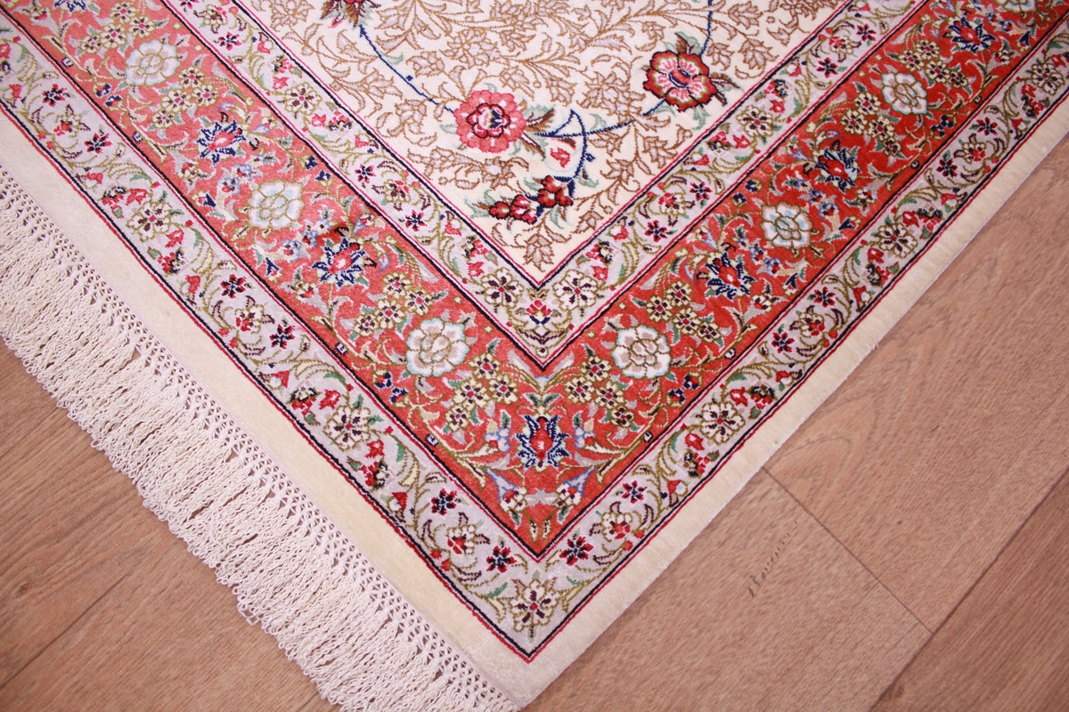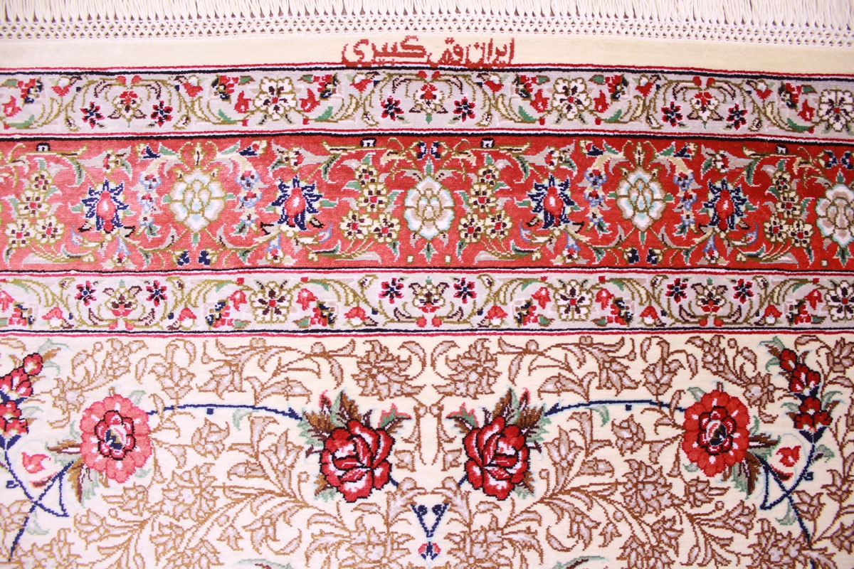 Perser Teppich Ghom Seidenteppich "Kabiri" 118x80 cm Beige
