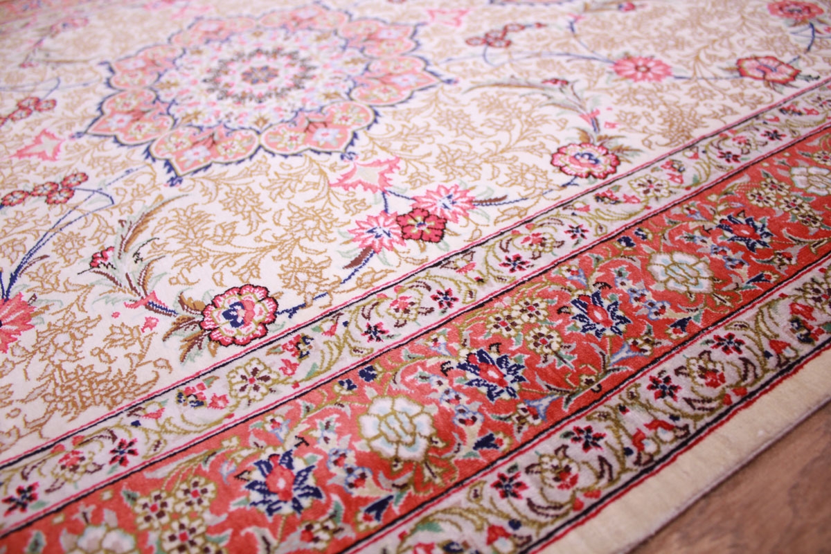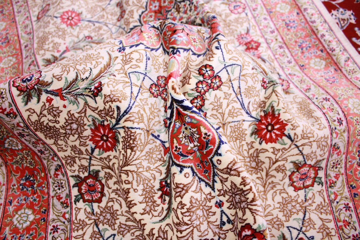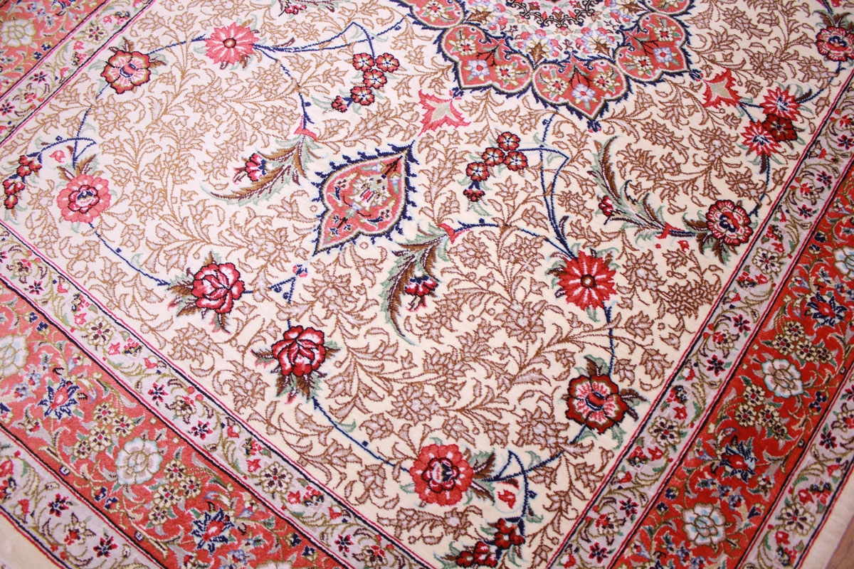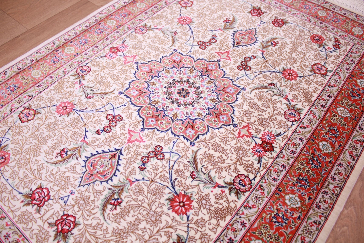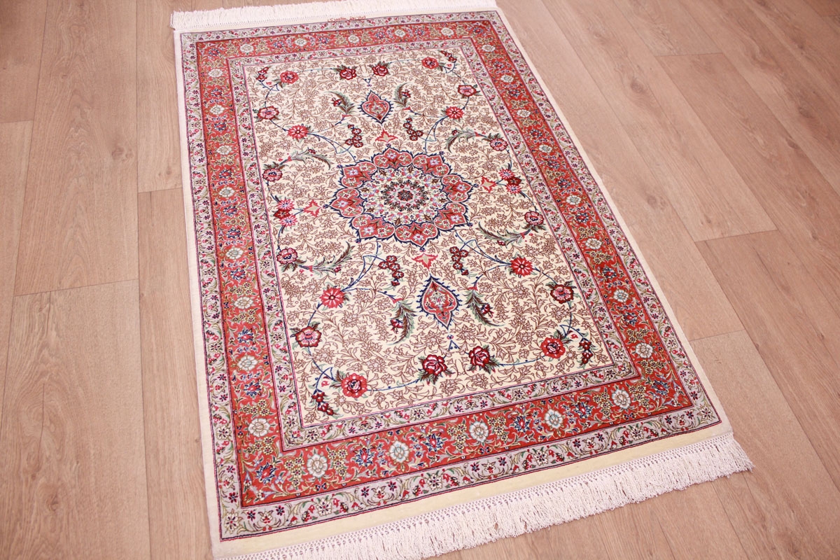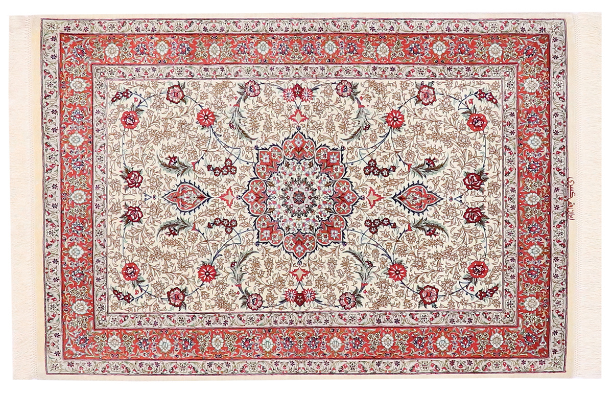 Perser Teppich Ghom Seidenteppich "Kabiri" 118x80 cm Beige