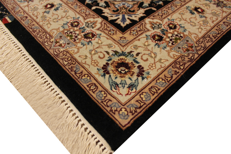 Der Saum von Isfahan-Teppichen besteht in der Regel aus einem großen mittleren Streifen, der von zwei schmalen Sicherheitsstreifen umgeben ist.