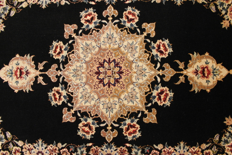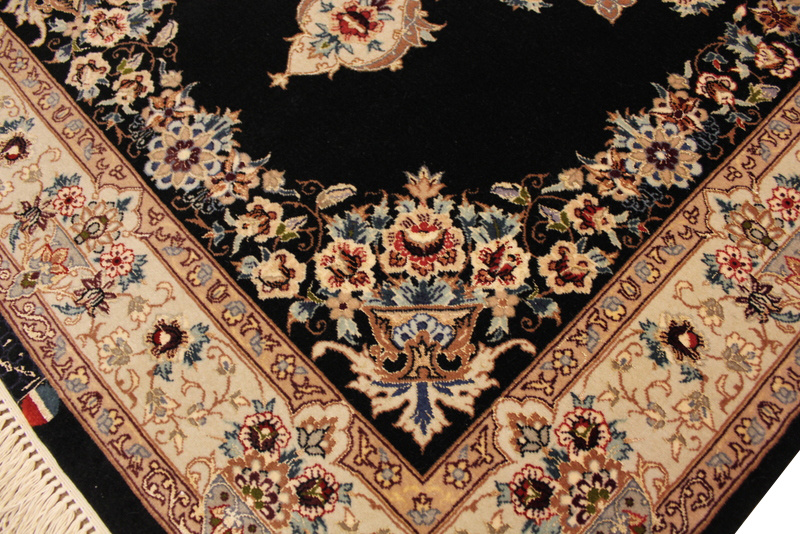 Eine breite Farbpalette findet bei Isfahan-Teppichen Verwendung, und ihre Knüpfer sind Meister im Gestalten harmonischer Kombinationen aus Untergrund und Design, wobei sie mit hellen und dunklen Farben zu variieren wissen.