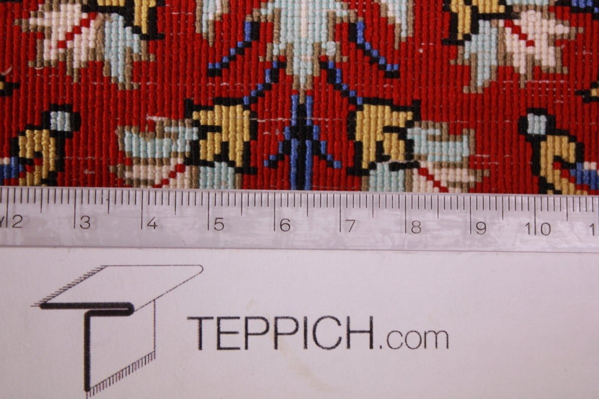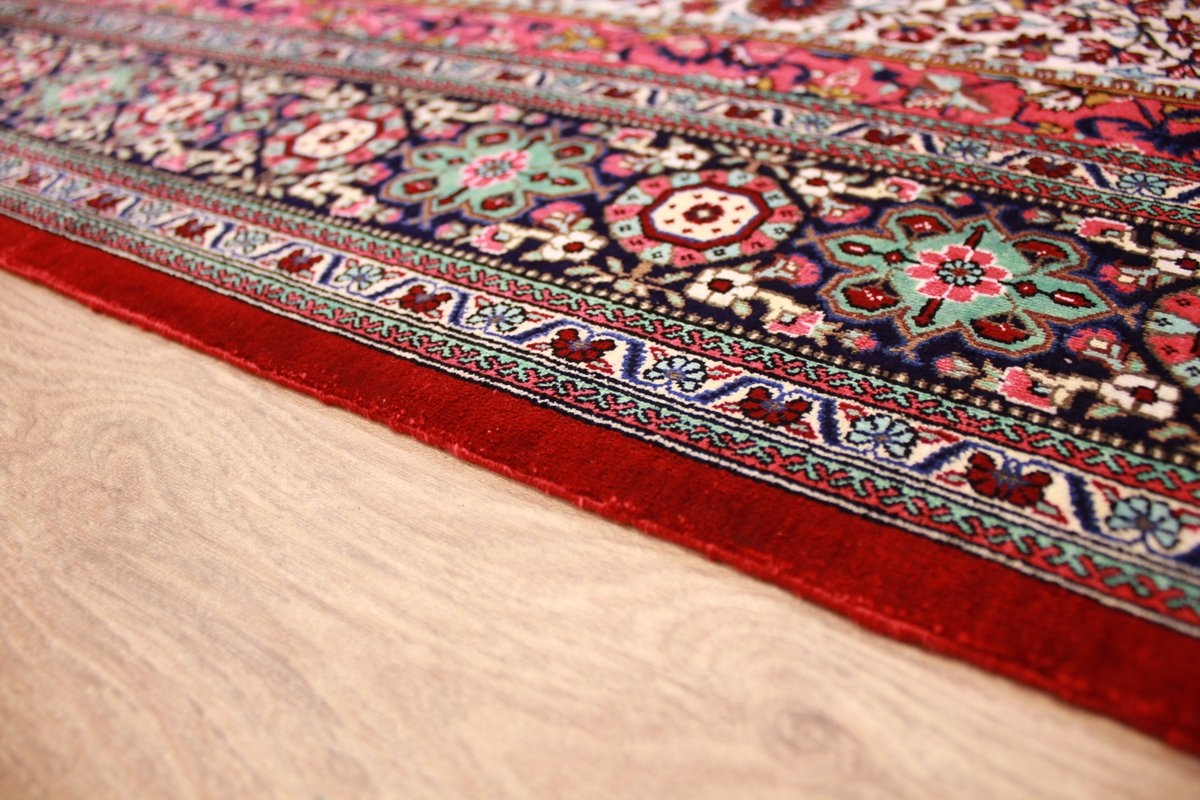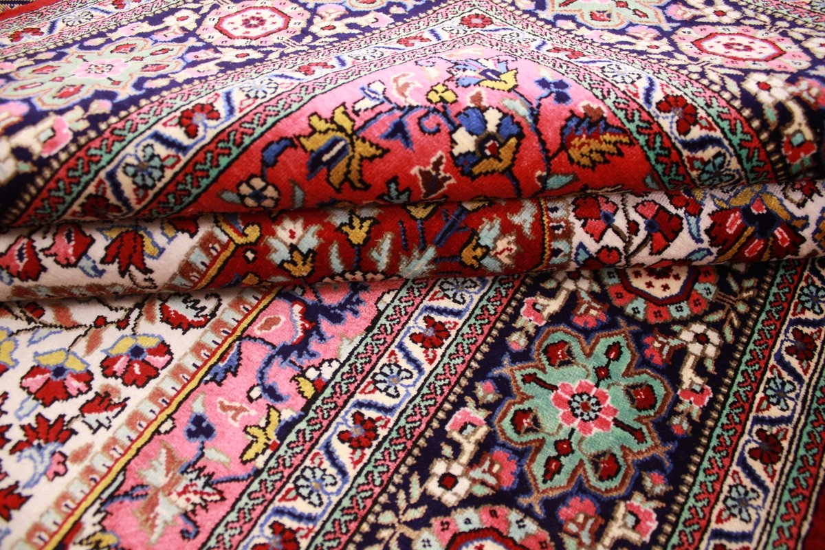 Trotz der vielseitigen Farbpalette hat der Gom-Teppich niemals grelle Farkontraste, sondern achtet auf eine harmonische Farbabstimmung. Bemerkenswert ist auch die äußerst exakte Knüpfung, die fast an Maschinenarbeit erinnert.