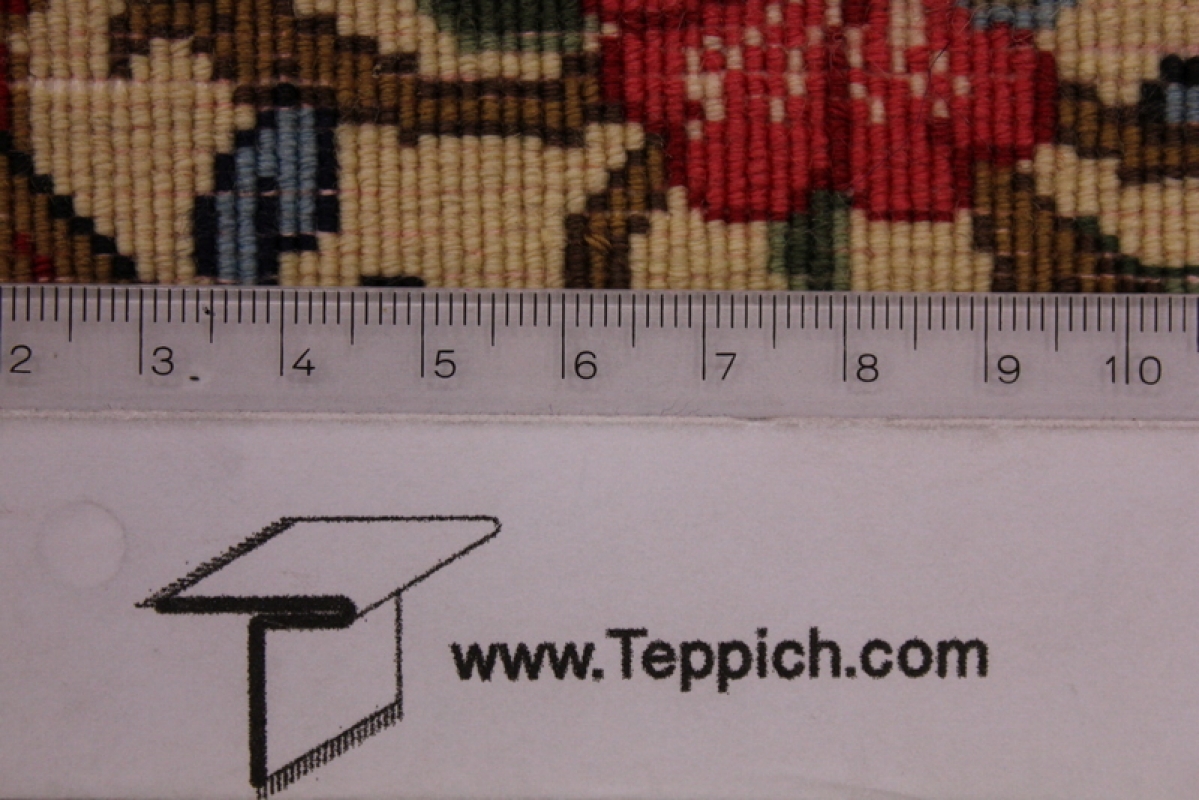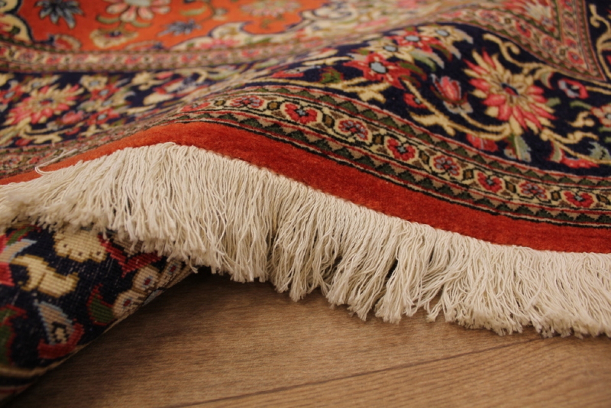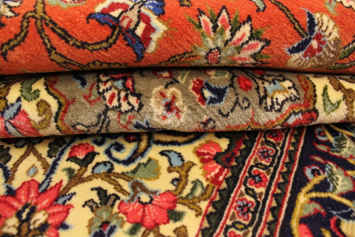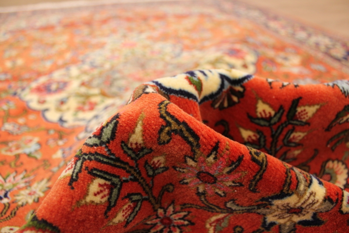 Trotz der vielseitigen Farbpalette hat der Gom-Teppich niemals grelle Farkontraste, sondern achtet auf eine harmonische Farbabstimmung. Bemerkenswert ist auch die äußerst exakte Knüpfung, die fast an Maschinenarbeit erinnert.