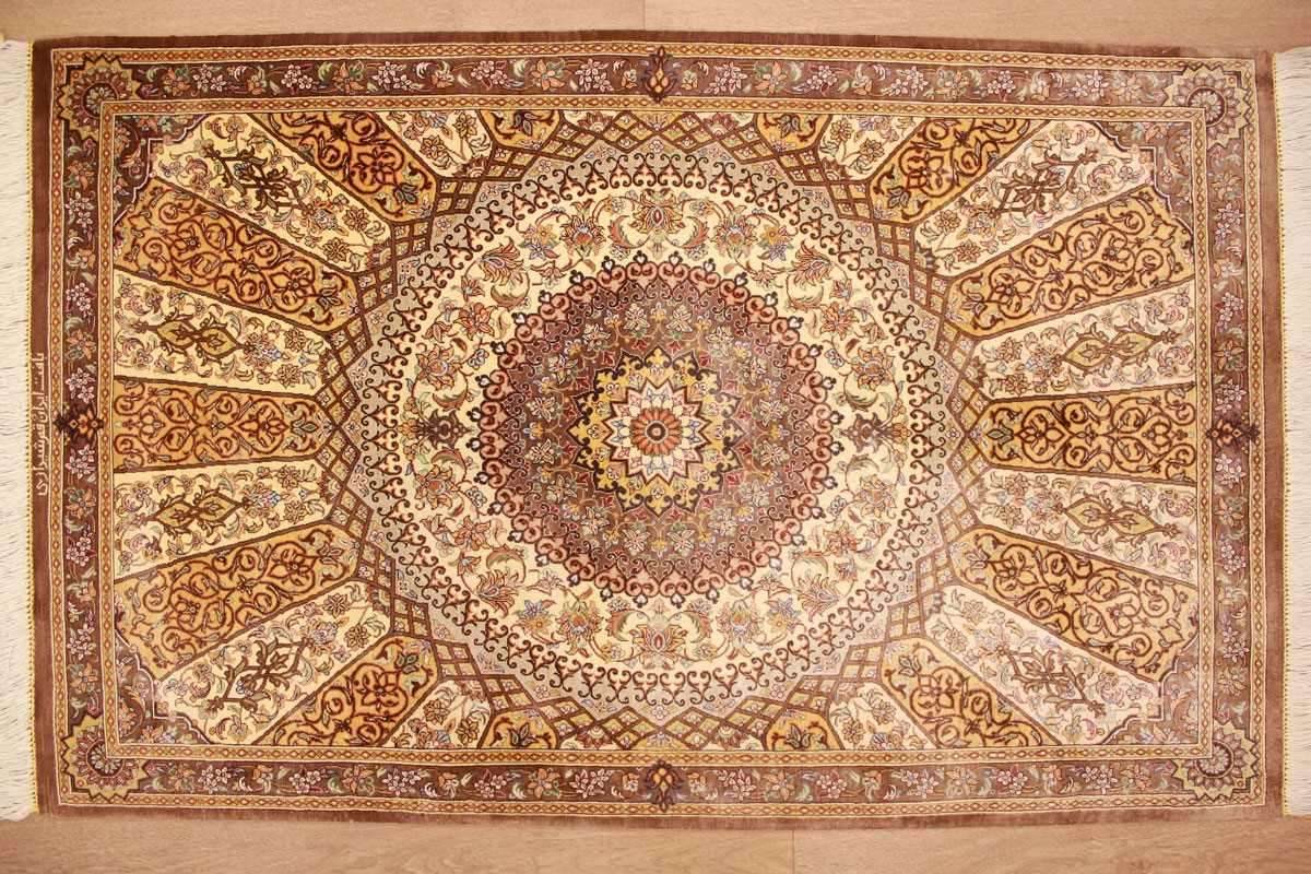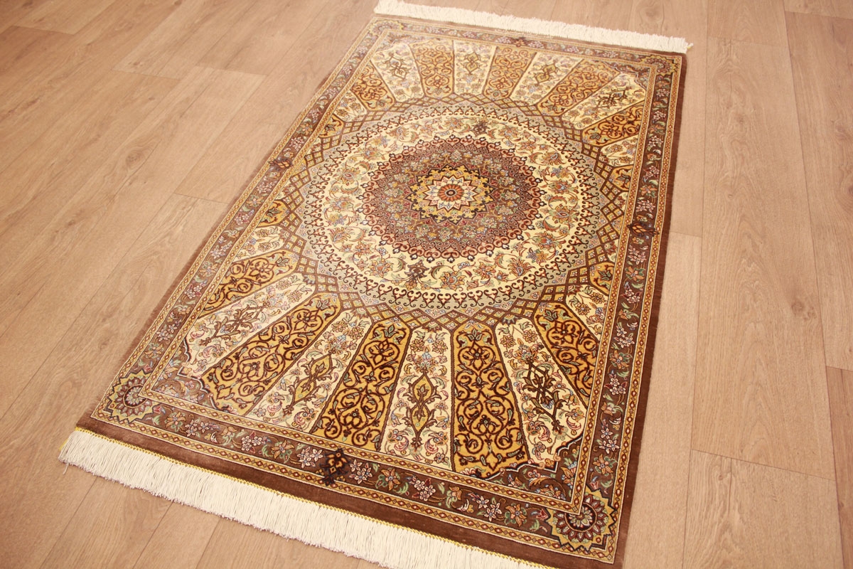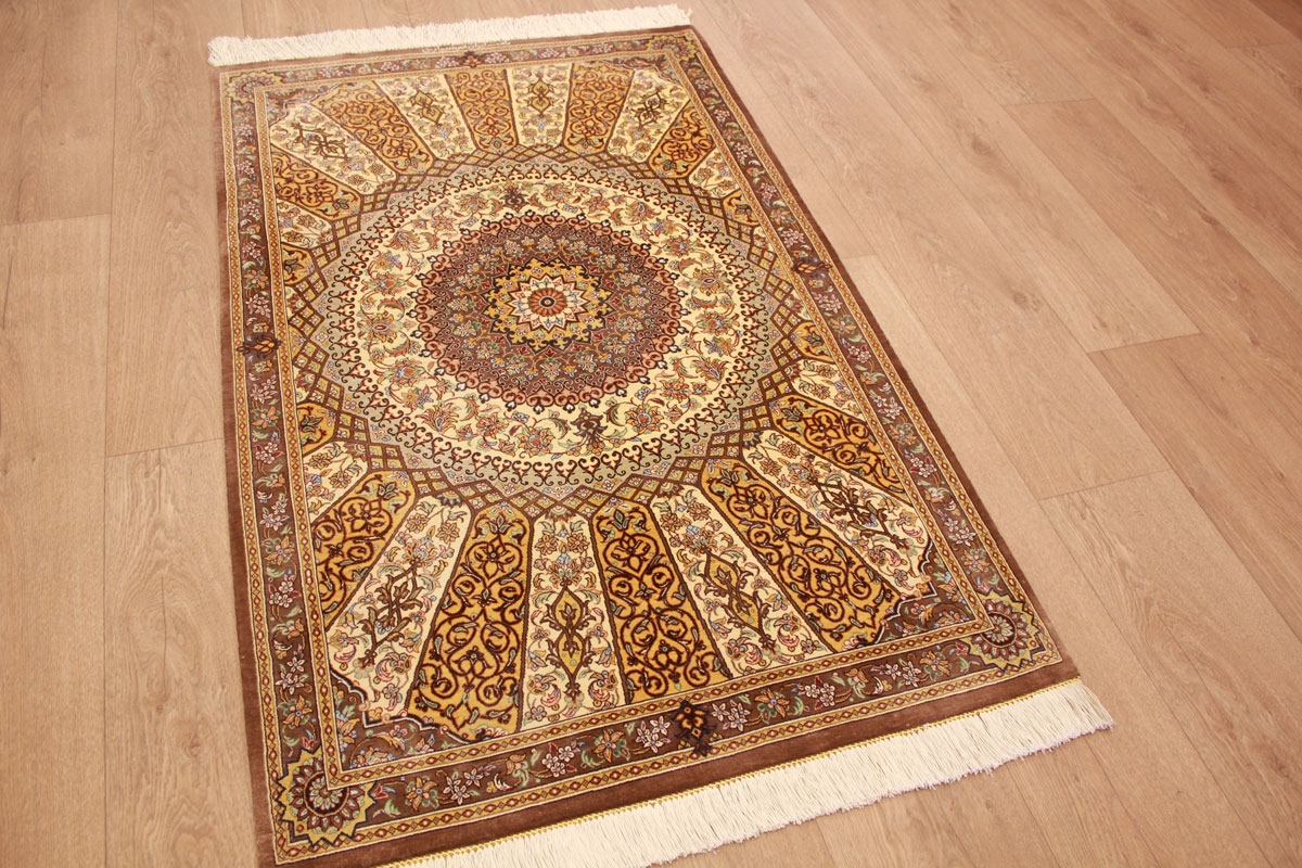 Perser Teppich Ghom Seidenteppich "Schirazi" 127x84 cm Royal