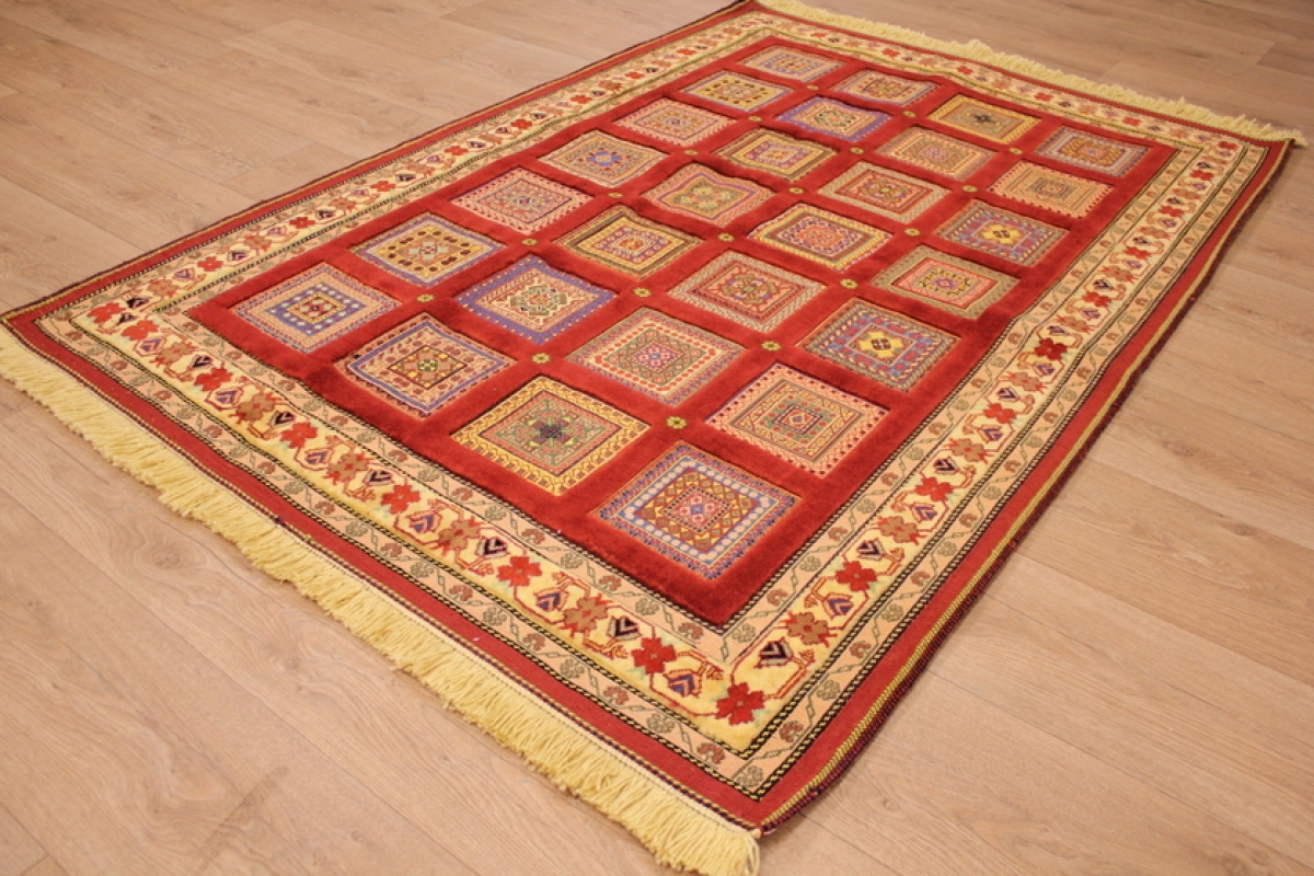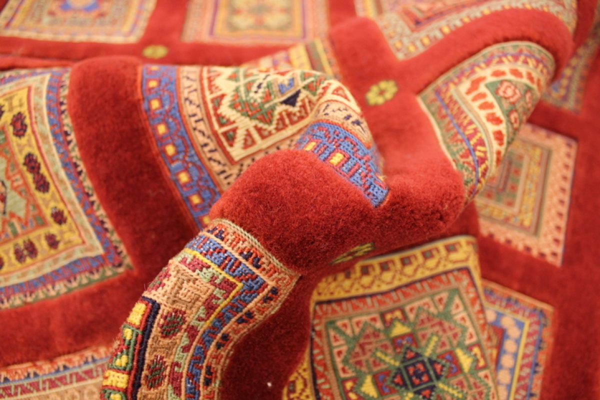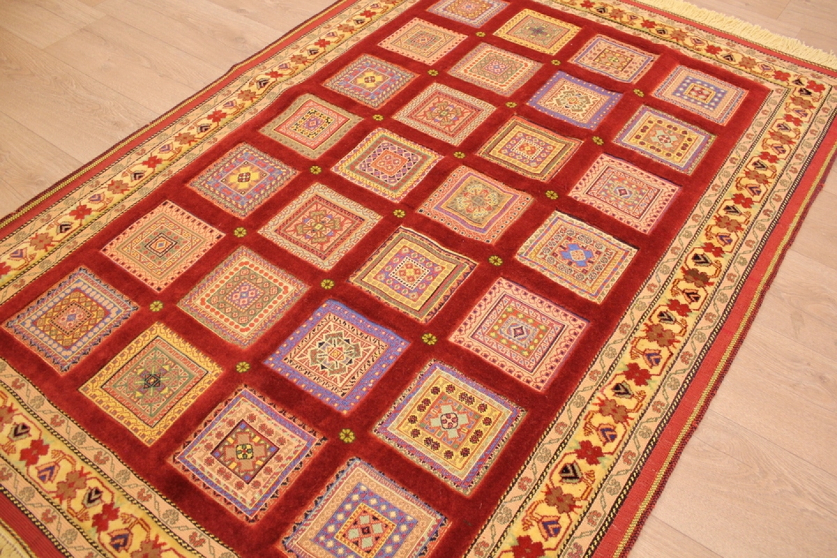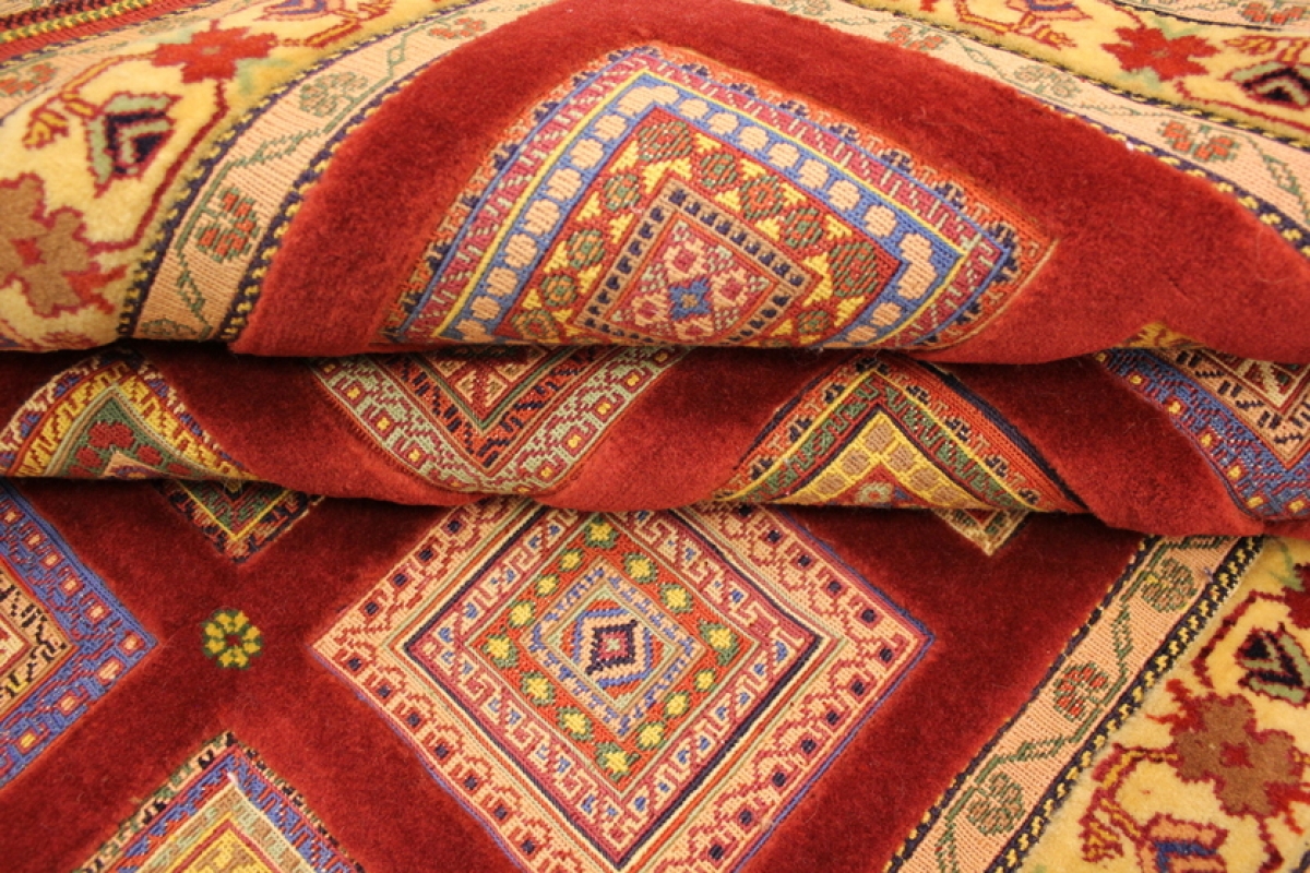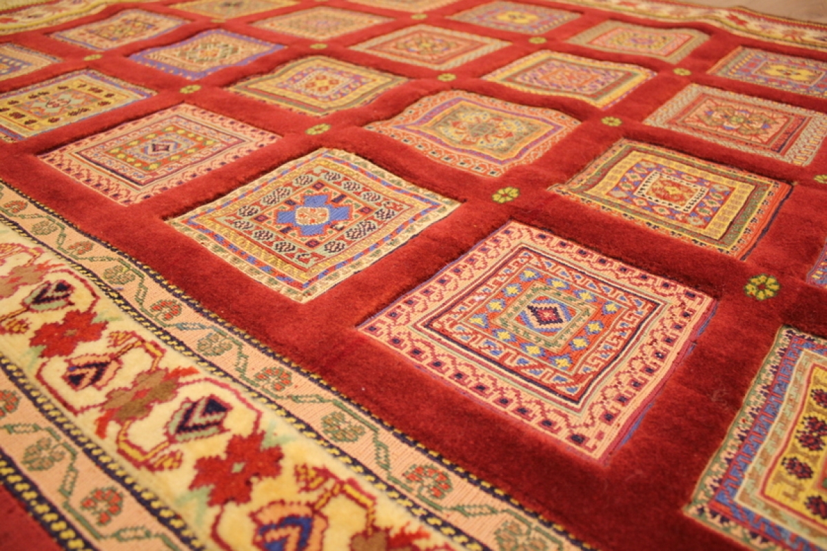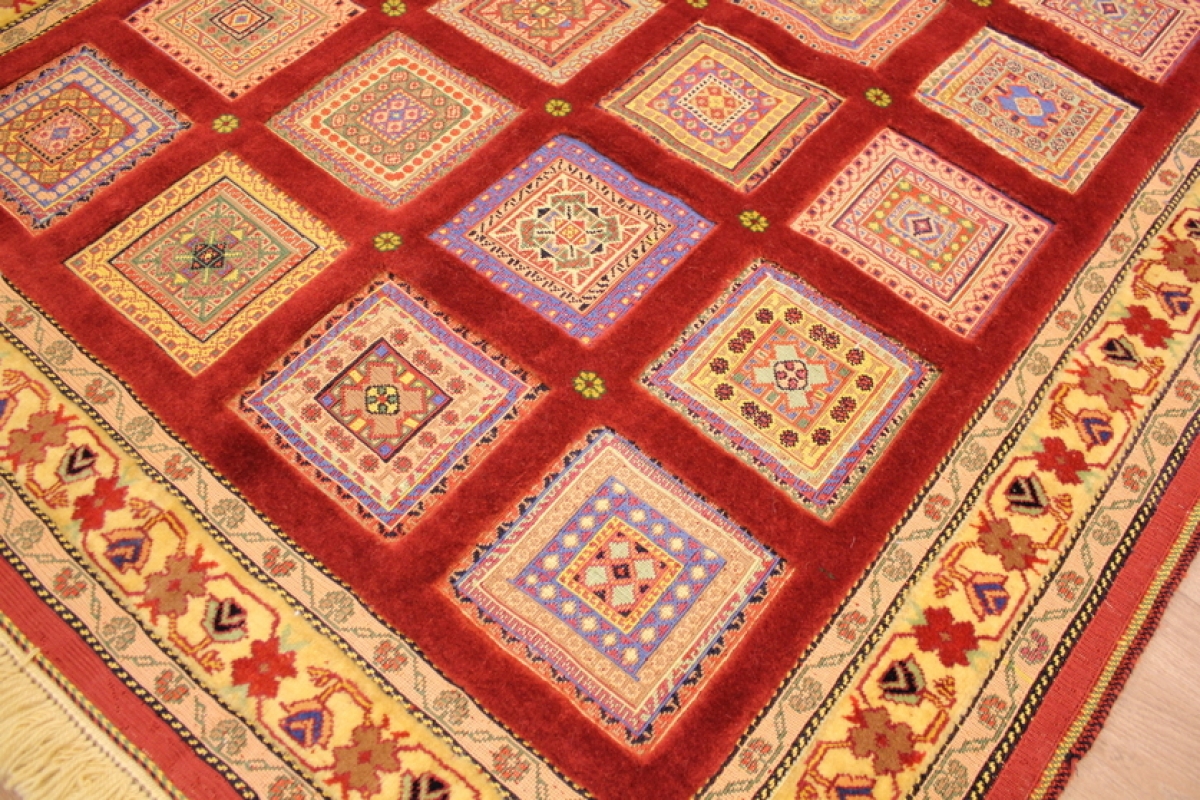 Sie werden sehr kunstvoll geknüpft und sind eine Kombination aus handgewebtem Kelim und handgeknüpftem Teppich.