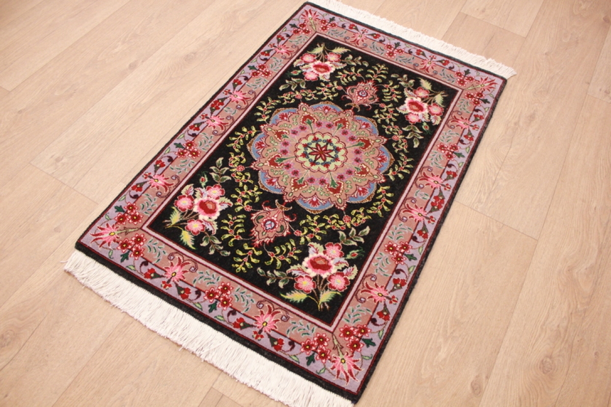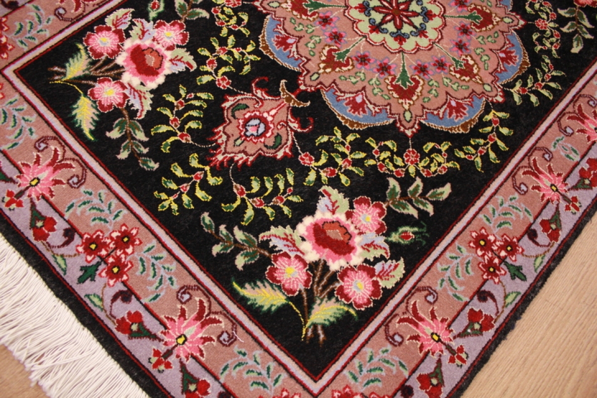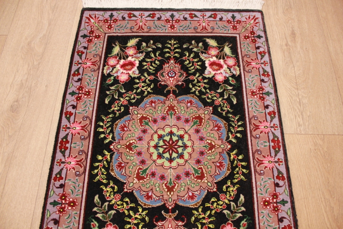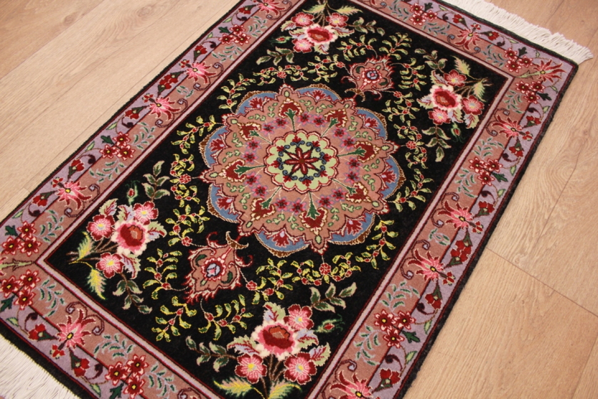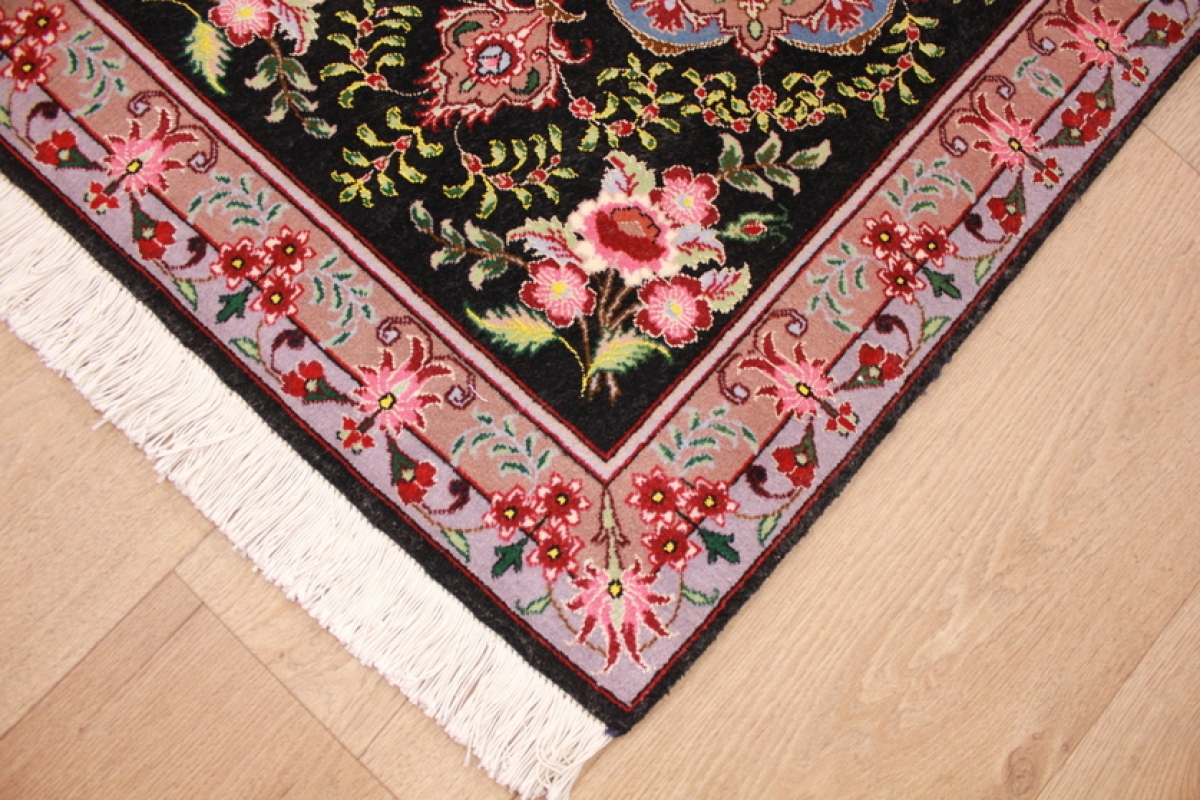 Perser Teppich "Taabriz" mit Seide 92x60 cm Schwarz