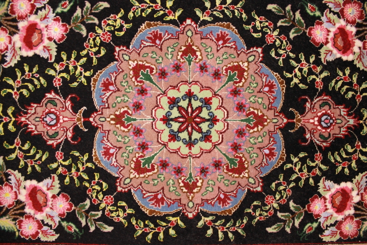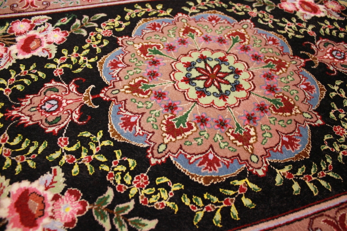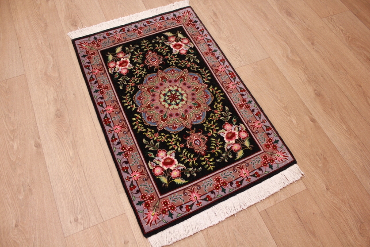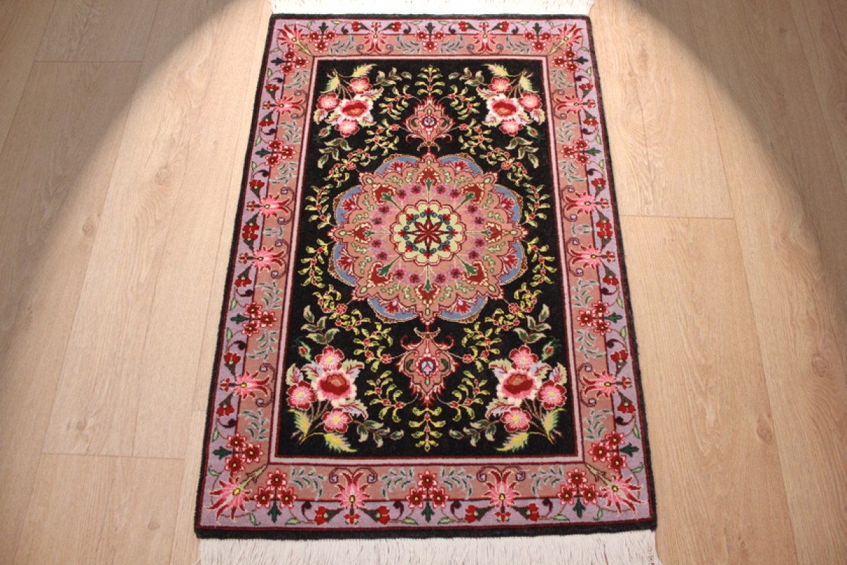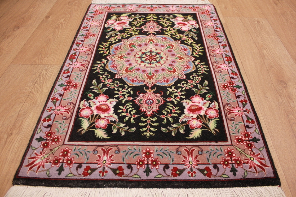 Perser Teppich "Taabriz" mit Seide 92x60 cm Schwarz