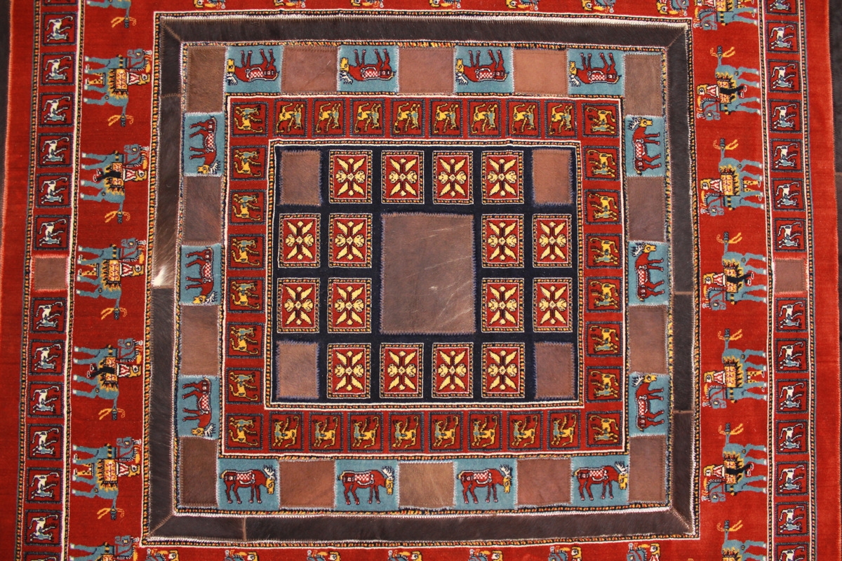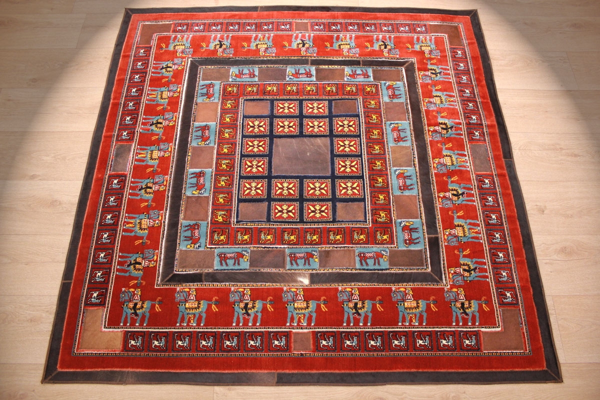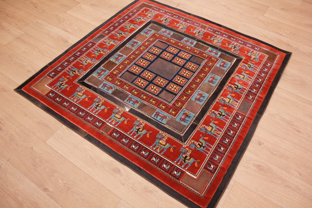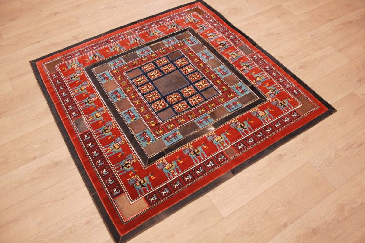 Lederteppich Kombination Leder und Teppich 147x147 cm Rot