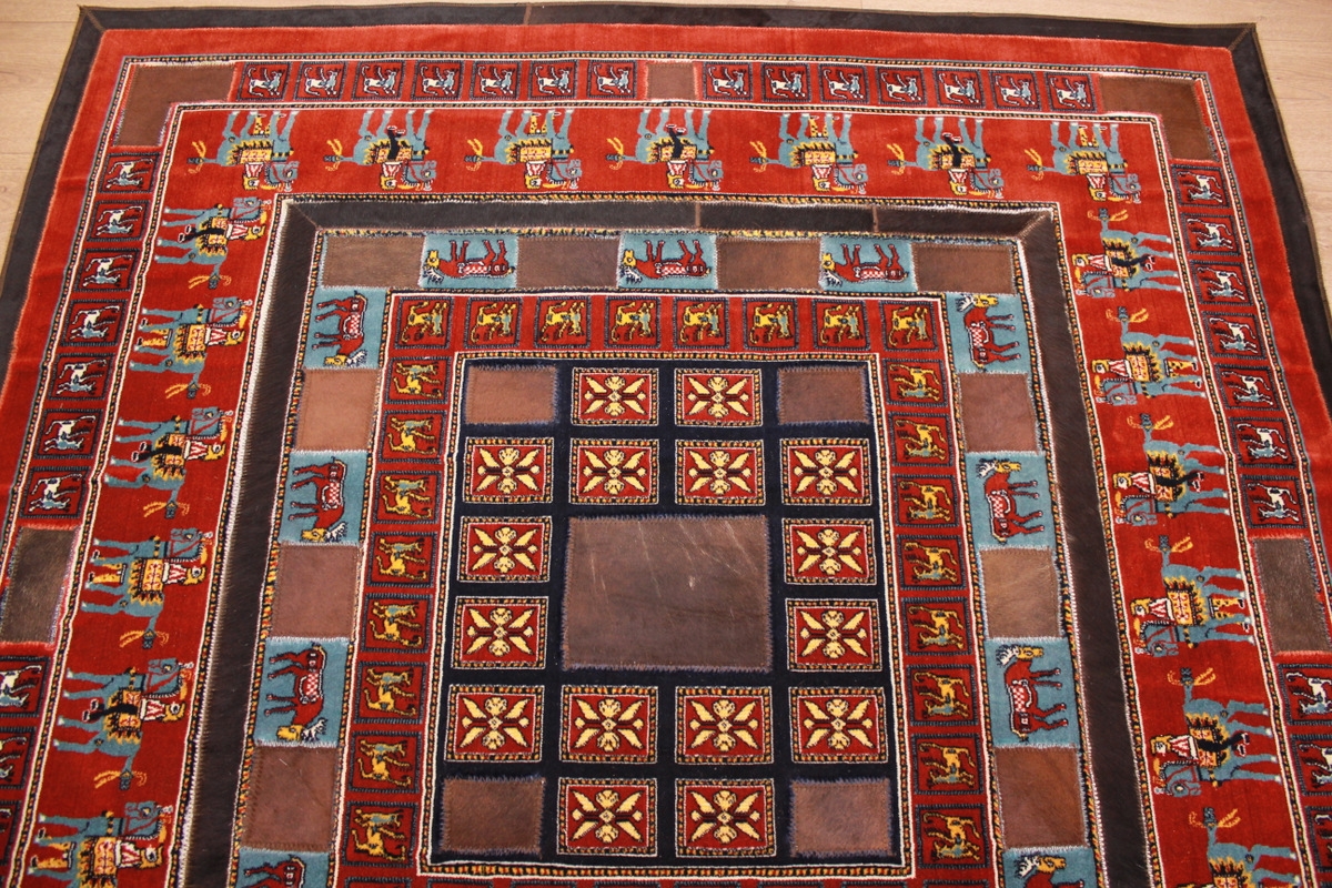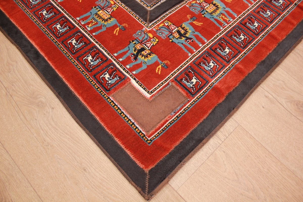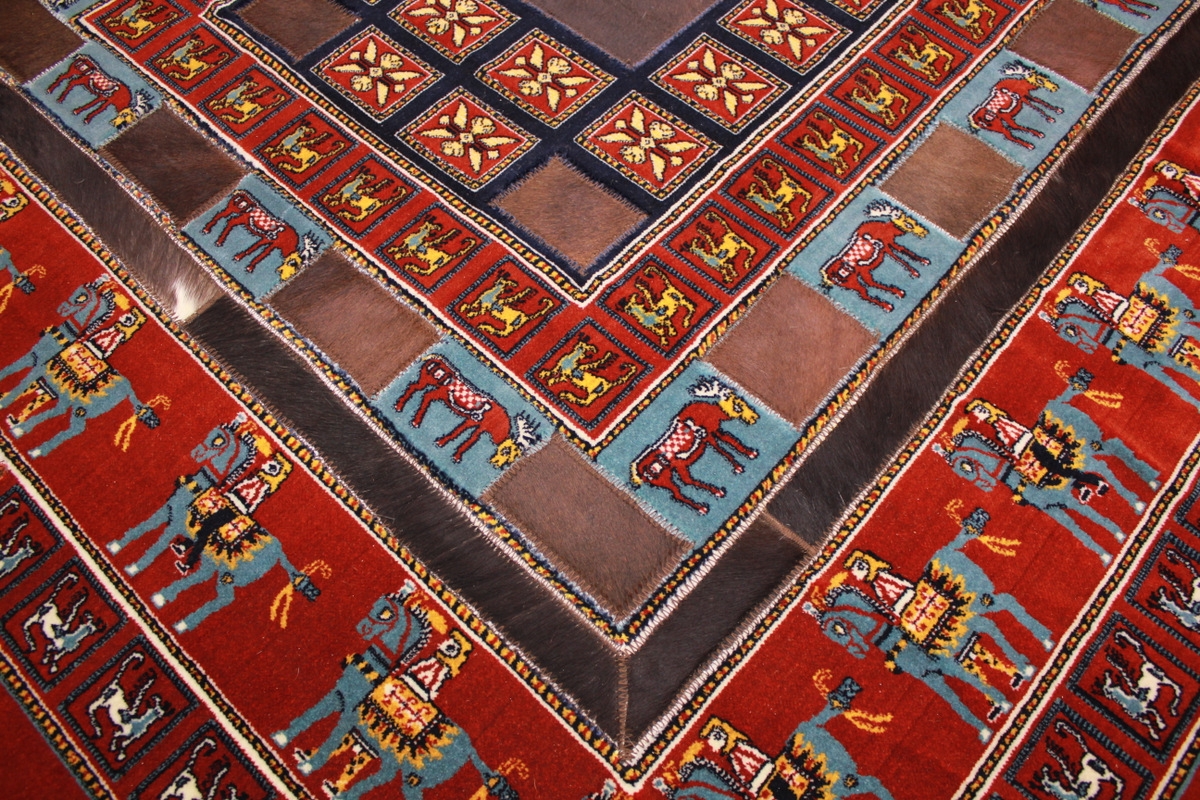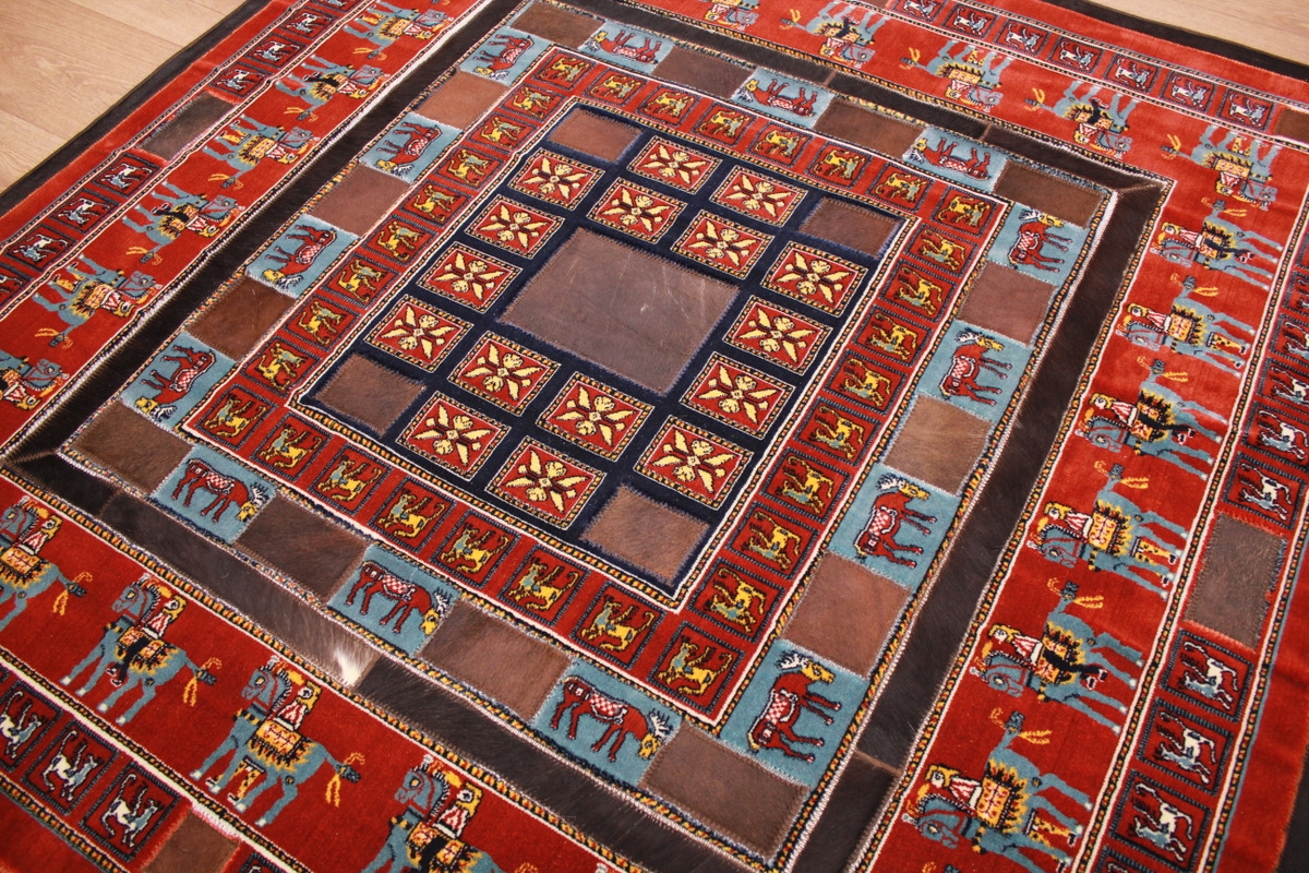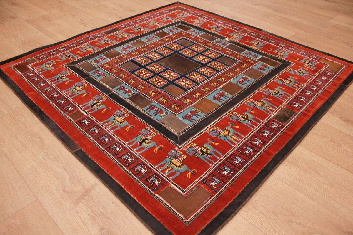Lederteppich Kombination Leder und Teppich 147x147 cm Rot