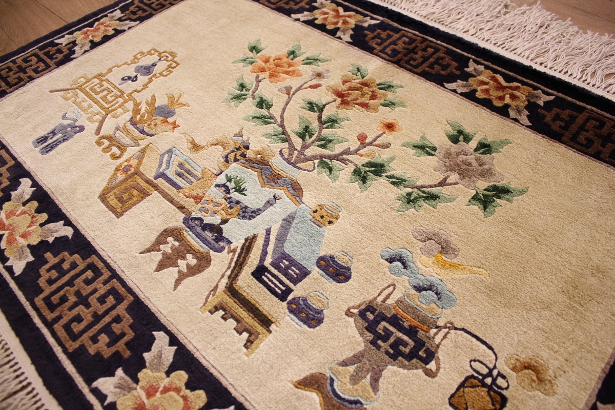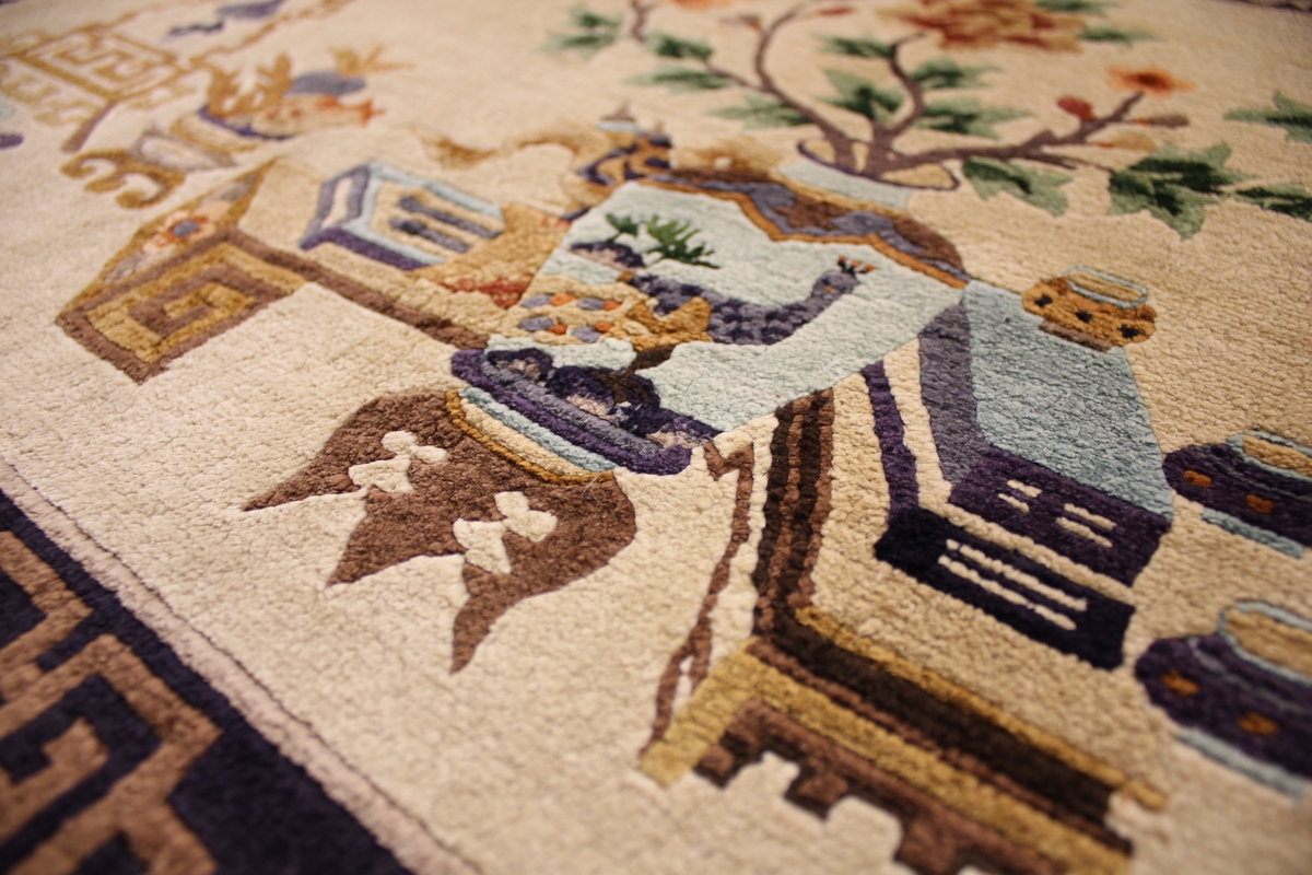 Chinesiche Teppiche werden wie es sich gehört in China von Hand geknüpft. Chinesische Knüpfer verwenden für Ihre Teppiche Materialien wie Wolle, Schurwolle oder Seide. Chinesische Wollteppiche haben meist ein altes chinesischen Motiv wie das berühmte „Drachenmotiv“. Seidenteppiche aus China sind vom Motiv her sehr persisch eingehaucht.