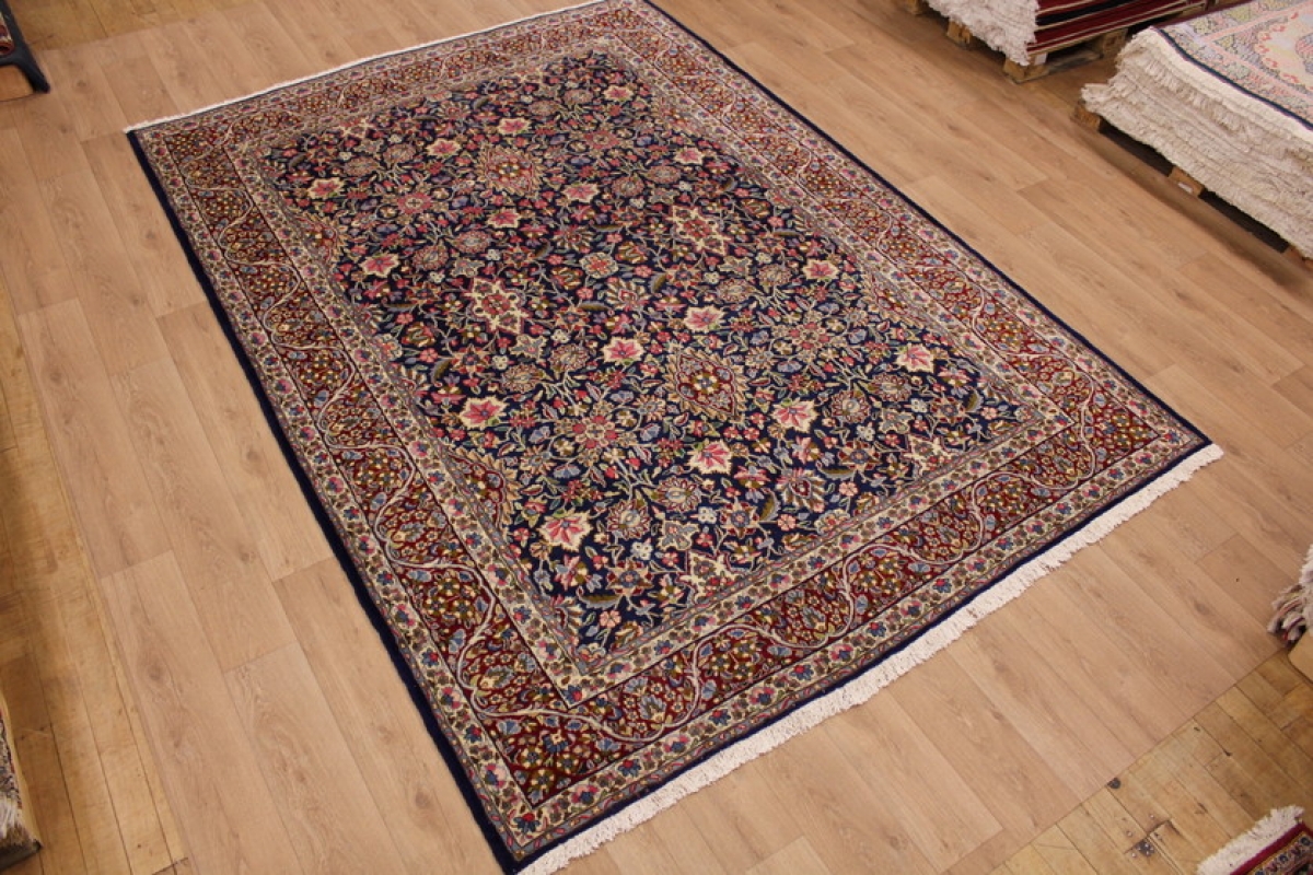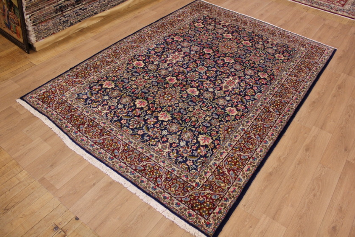 Kerman, auch Kirman, Hauptstadt der gleichnamigen Provinz in Persien. Kerman liegt 1076 km südöstlich von Tehran und 370 Kilometer südöstlich von Yazd entfernt. Die Stadt wurde von Ardashir I. (224 - 241) gegründet und liegt im Zentralpersien. Kerman wurde durch Turkmans, Araber und Mongols nach dem 7. Jahrhundert eingenommen. Kerman wurde für seine Teppiche berühmt, nachdem Marco Polo sie entdeckt hatte. Die Teppichproduktion ist sehr traditionsreich, die gute Qualität sowie die Lebendigkeit und Harmonie der Muster und Farben zeichnen Kerman Teppiche aus.