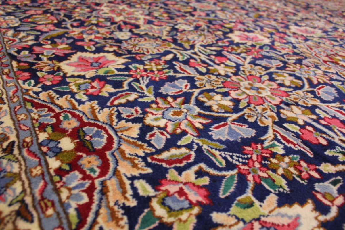 Perserteppich Kirman 340x240 cm Blau Durchgemustert