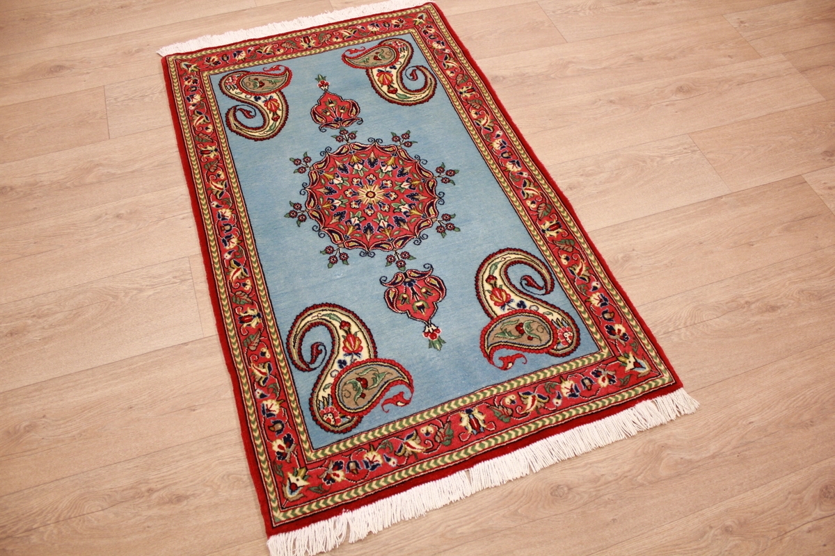 Perser Teppich "Ghom" Orientteppich 125x78 cm Blau
