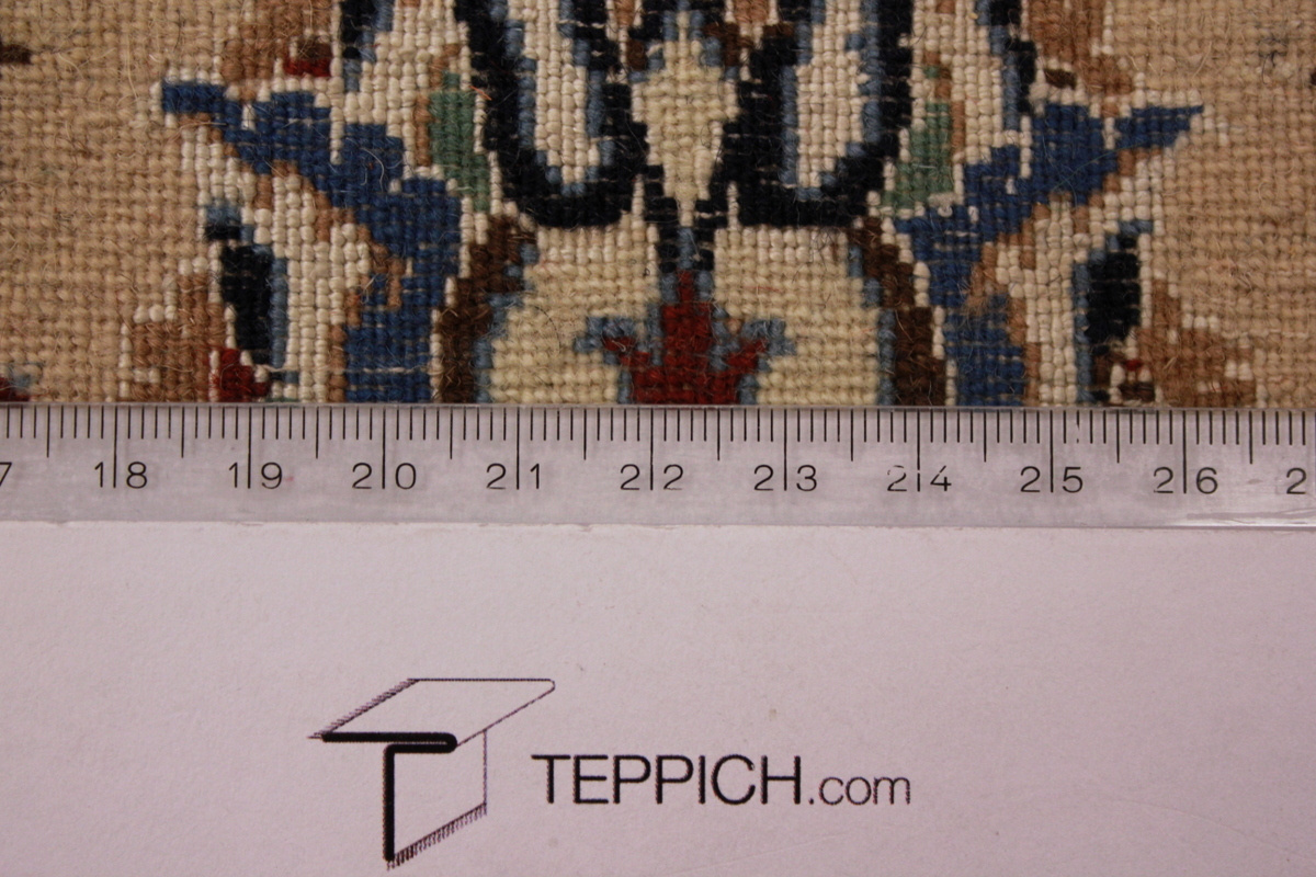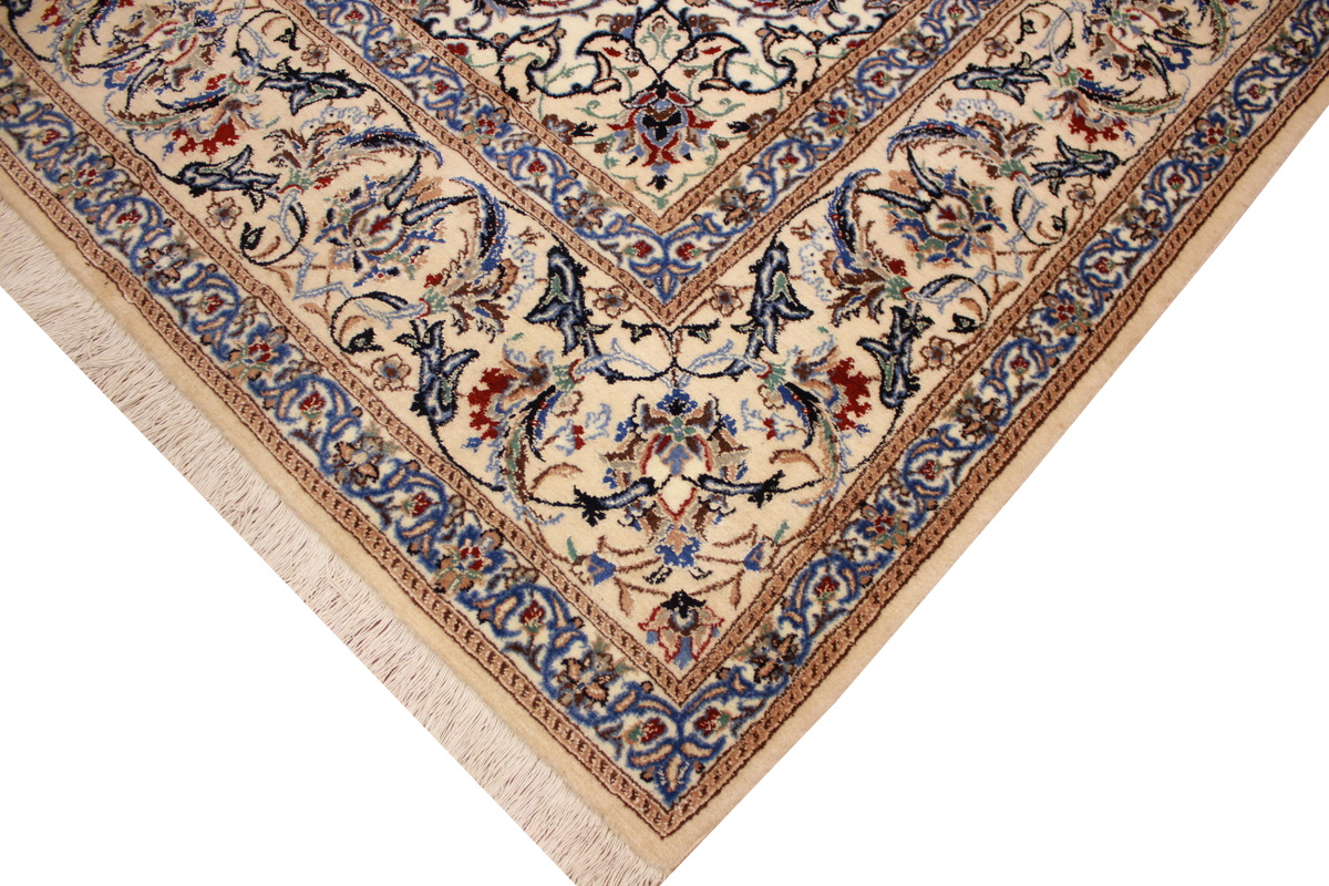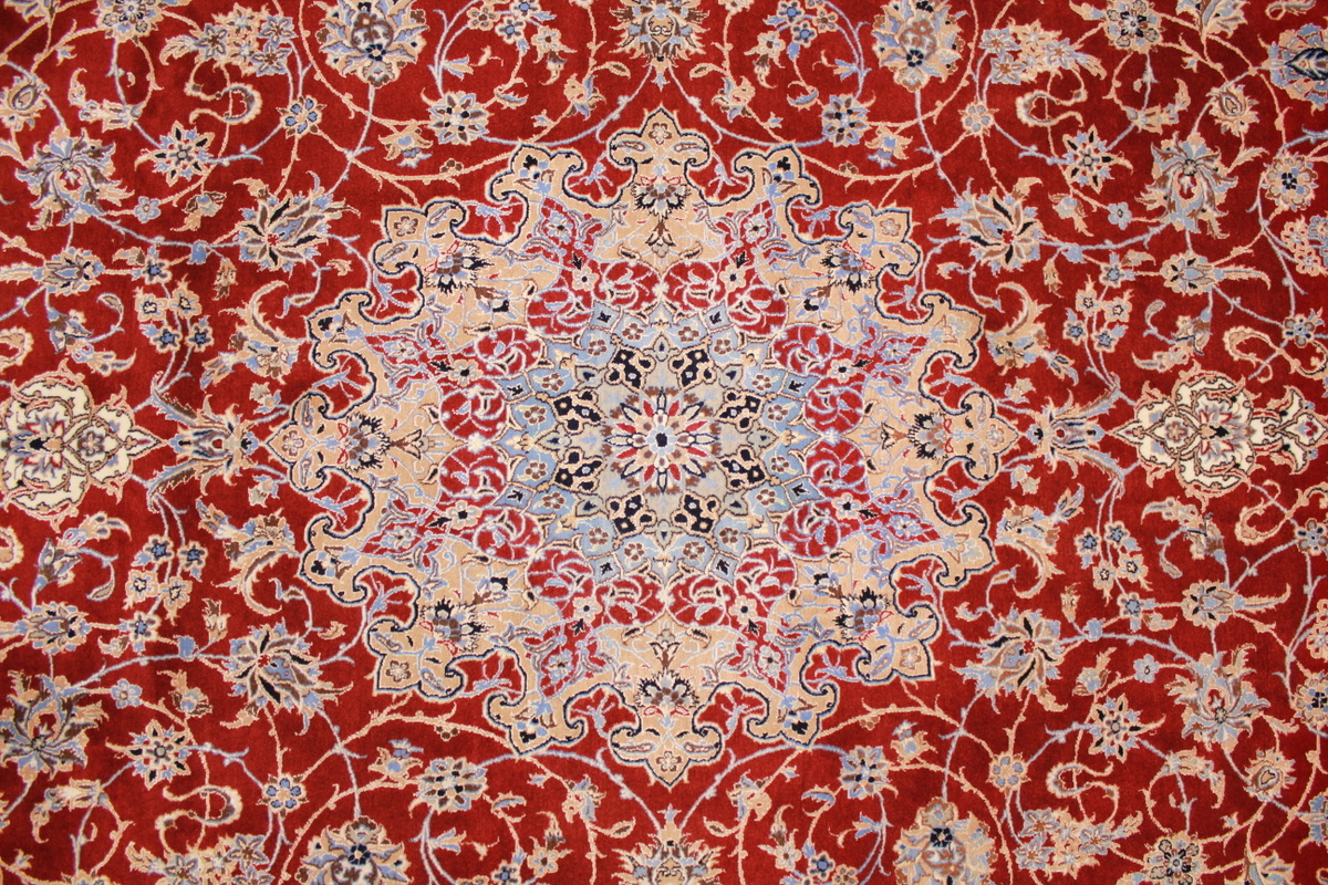 Die Stadt Nain in der Nähe von Isfahan im Zentralpersien ist bekannt für ihre feinen Teppiche, die mehr als eine Million Knoten pro Quadratmeter haben können. Je feiner die Kette, desto feiner kann auch die Knüpfung sein. In der Regel gibt es vier Qualitäten: Nain-Kaschmar (grob geknüpft), Nain-Noh-La (Baumwollfaden der Kette aus 9 Fasern gezwirnt, wodurch 40 Raj auf 7 cm kommen), Nain-Schisch-La (6 Fasern entsprechend 60 Raj), Nain-Tchaha-La (4 Fasern entsprechend 80 Raj). Alle Nain Teppiche sind durchgemustert und mit Medaillon.