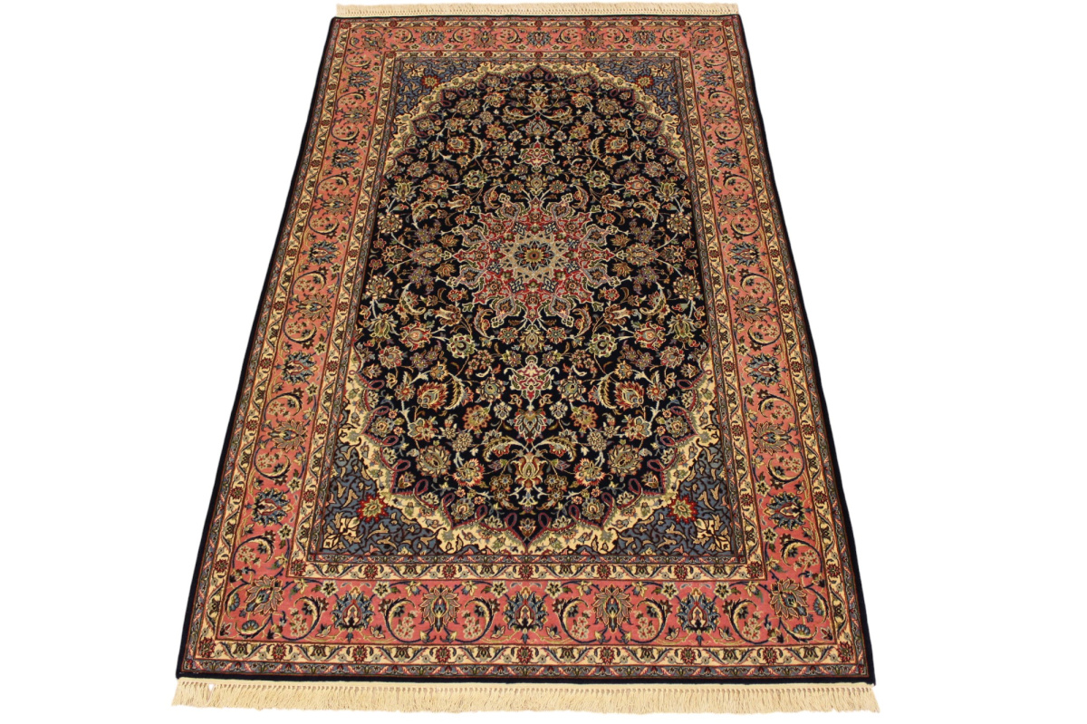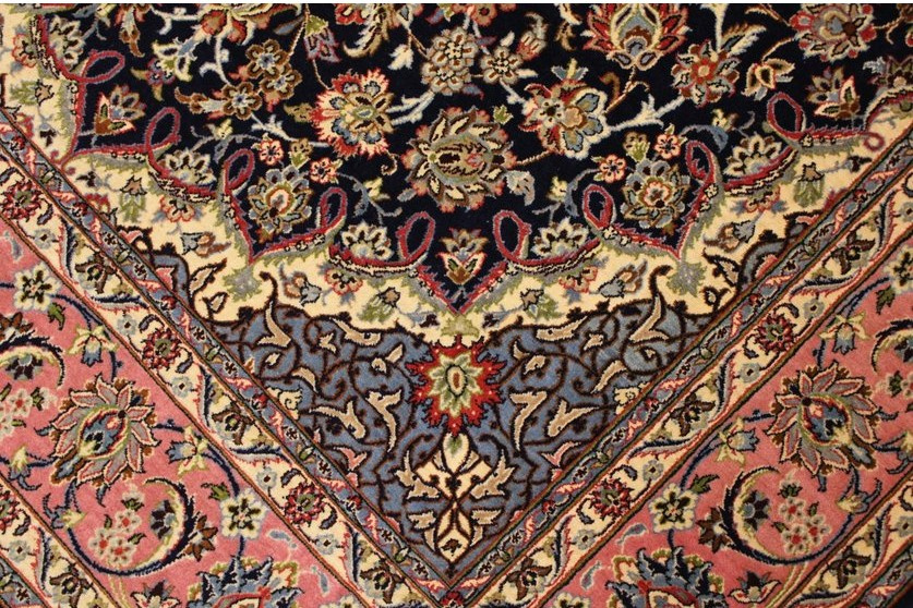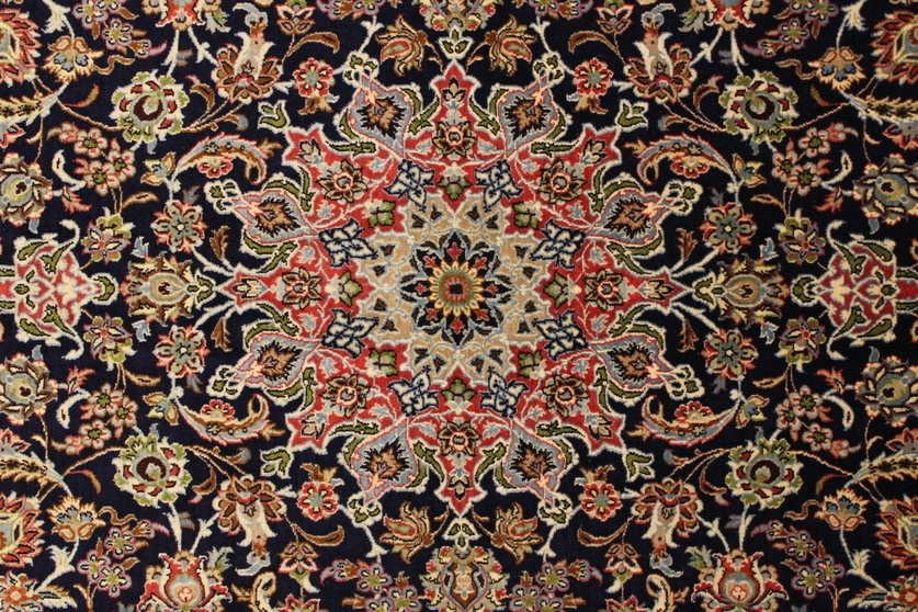 Eine breite Farbpalette findet bei Isfahan-Teppichen Verwendung, und ihre Knüpfer sind Meister im Gestalten harmonischer Kombinationen aus Untergrund und Design, wobei sie mit hellen und dunklen Farben zu variieren wissen.