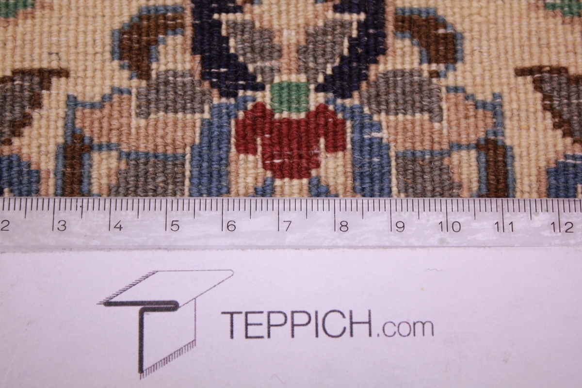 Die Stadt Nain in der Nähe von Isfahan im Zentralpersien ist bekannt für ihre feinen Teppiche, die mehr als eine Million Knoten pro Quadratmeter haben können. Je feiner die Kette, desto feiner kann auch die Knüpfung sein. In der Regel gibt es vier Qualitäten: Nain-Kaschmar (grob geknüpft), Nain-Noh-La (Baumwollfaden der Kette aus 9 Fasern gezwirnt, wodurch 40 Raj auf 7 cm kommen), Nain-Schisch-La (6 Fasern entsprechend 60 Raj), Nain-Tchaha-La (4 Fasern entsprechend 80 Raj). Alle Nain Teppiche sind durchgemustert und mit Medaillon.