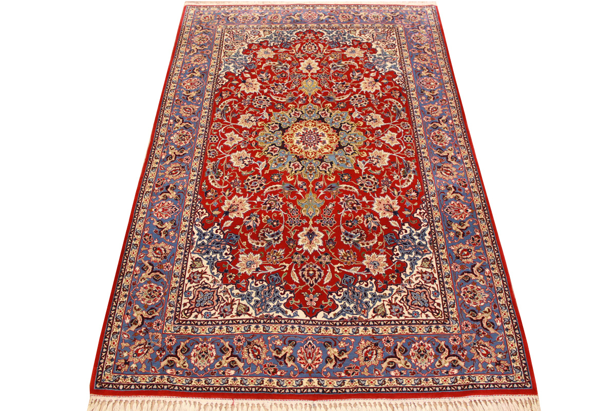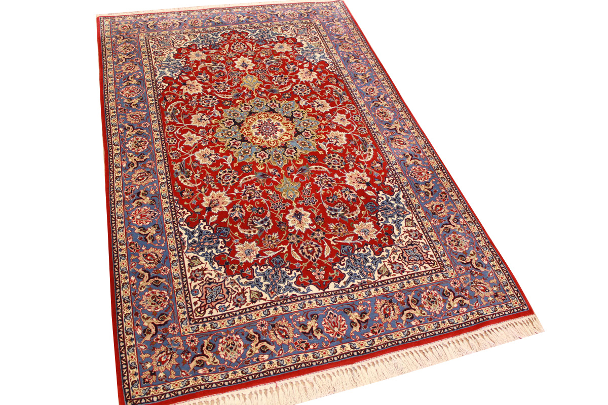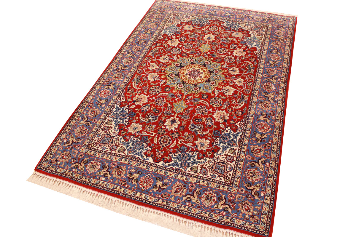 Perser Teppich Isfahan mit Seide 162x105 cm Rot
