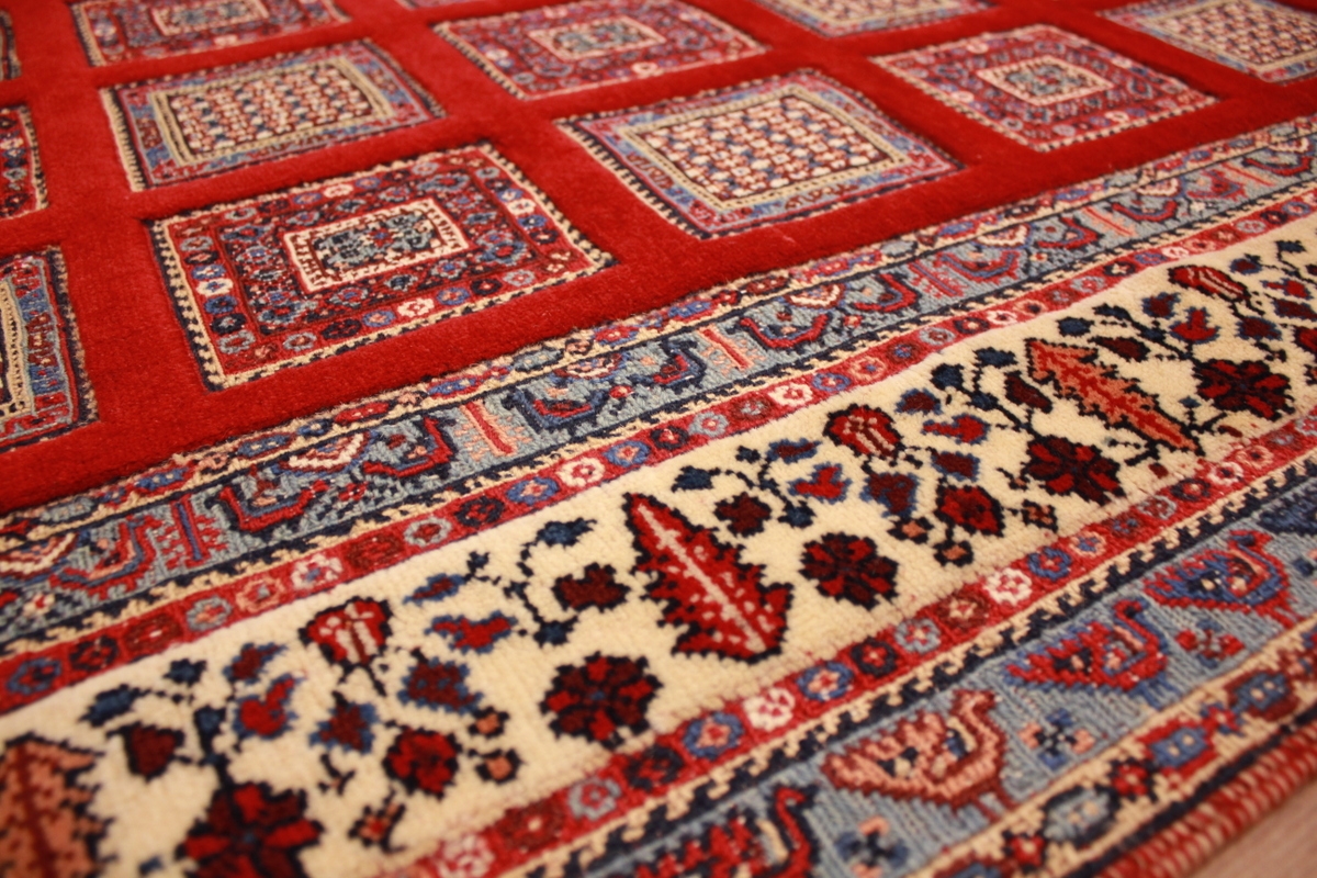 Sie werden sehr kunstvoll geknüpft und sind eine Kombination aus handgewebtem Kelim und handgeknüpftem Teppich.