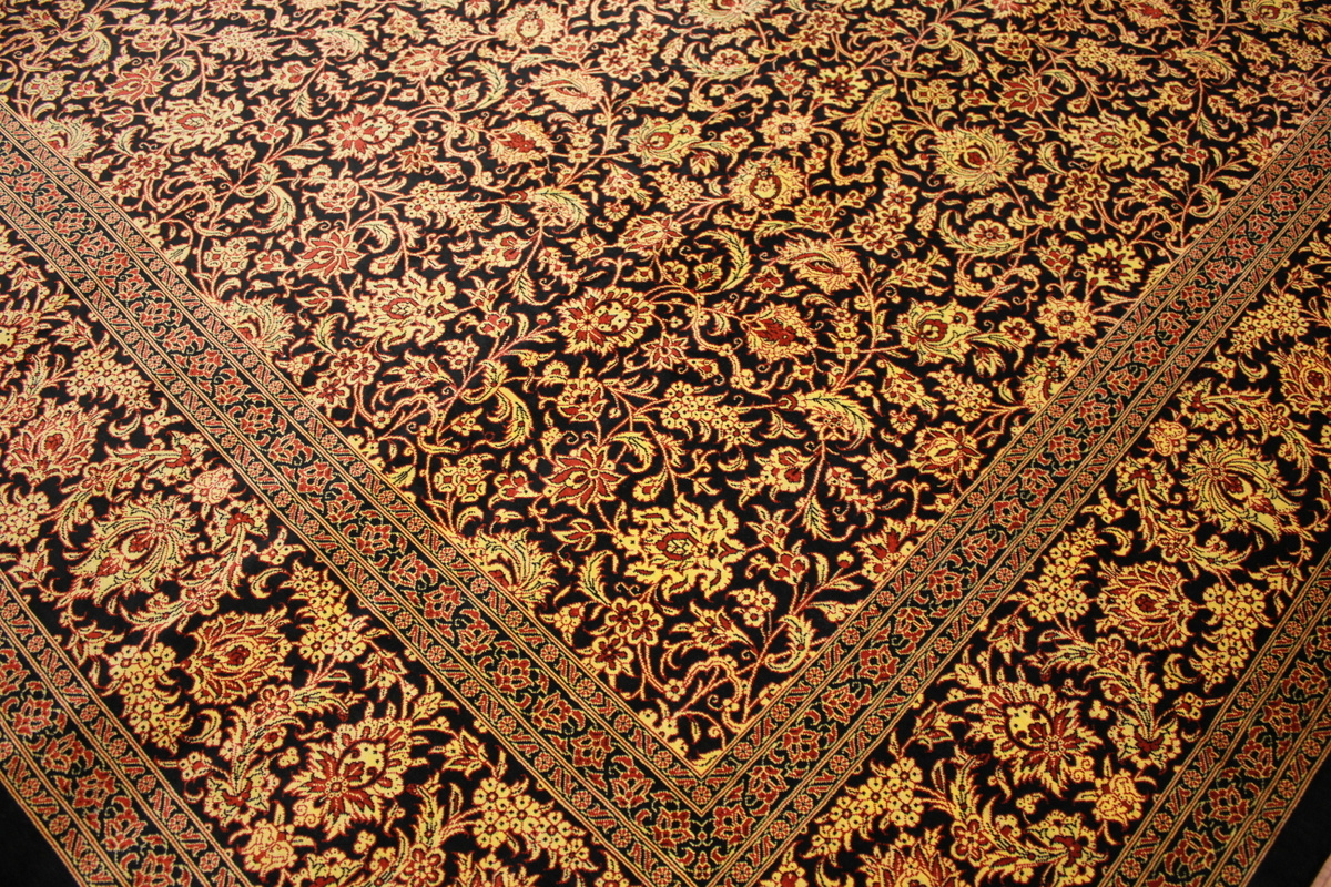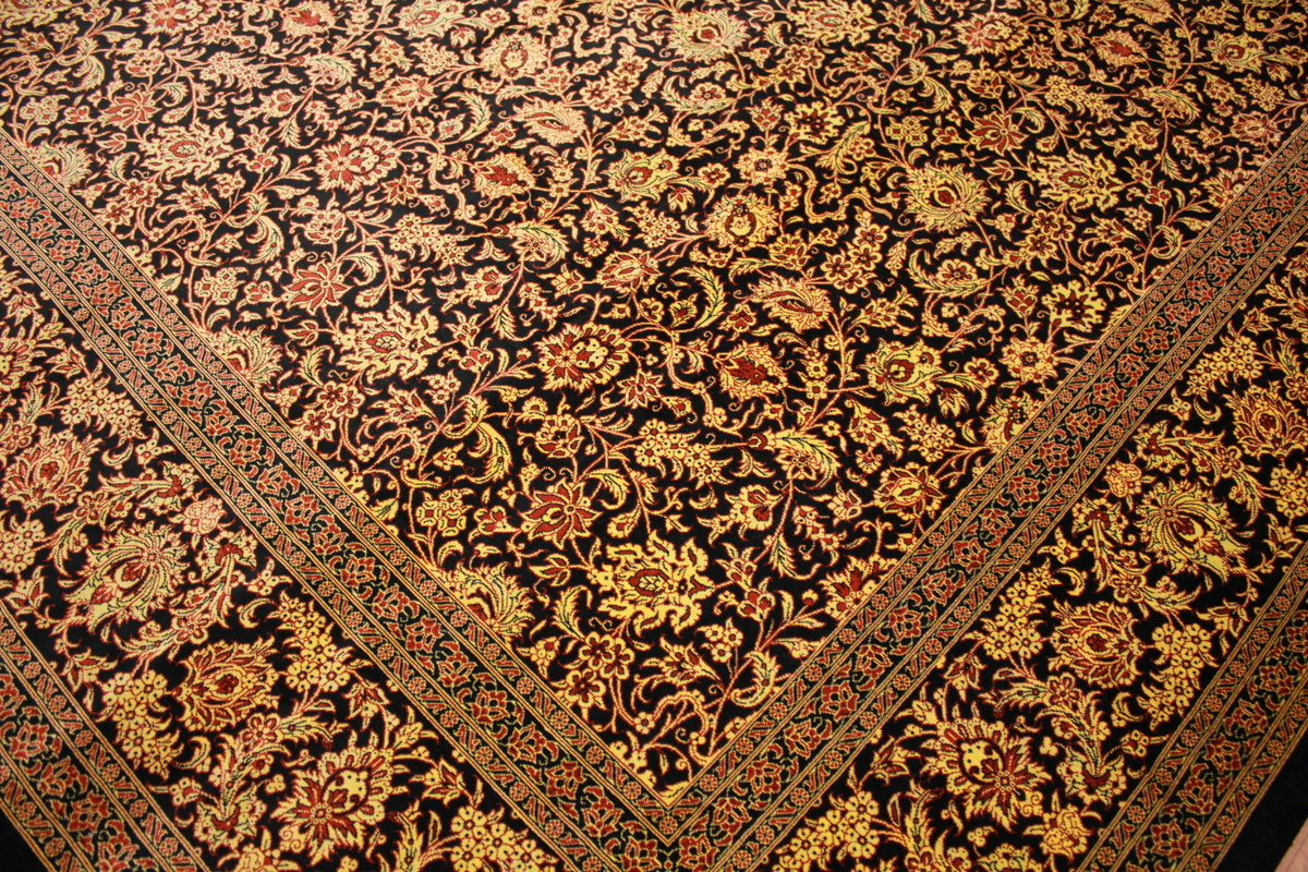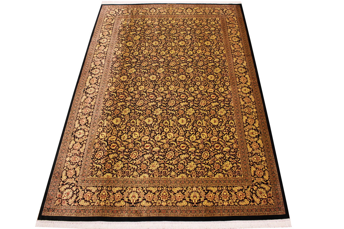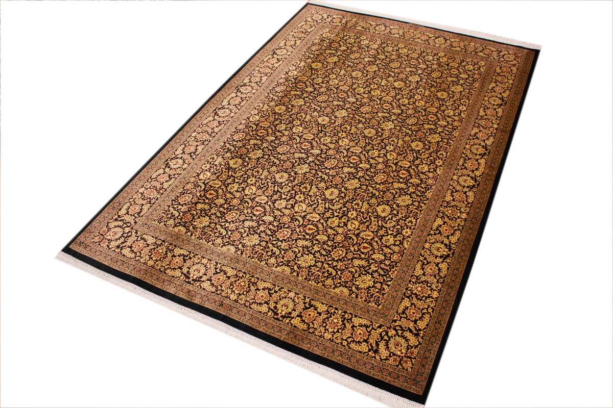Seidenteppich Ghom Schwarz/Gold 298x200 cm