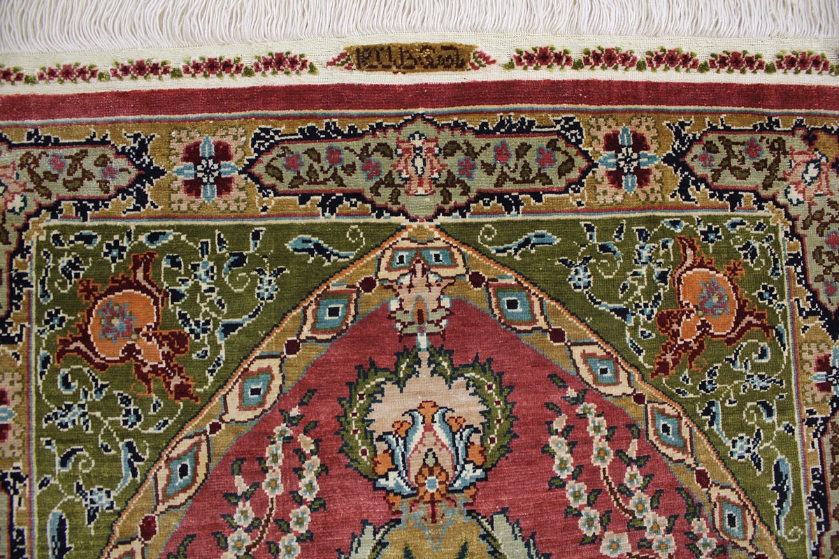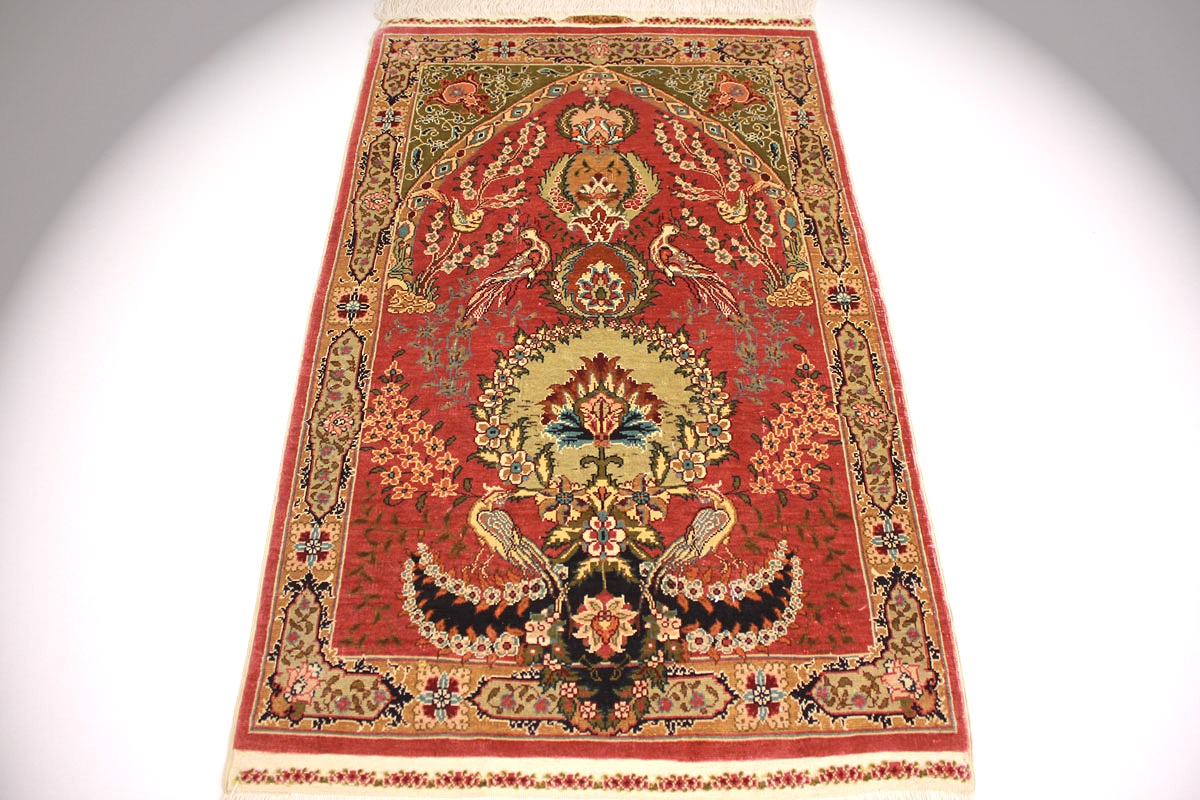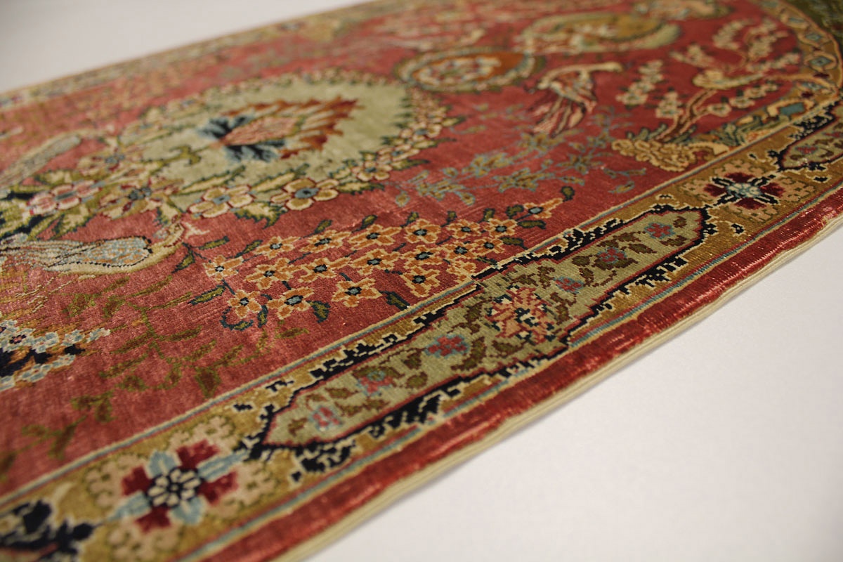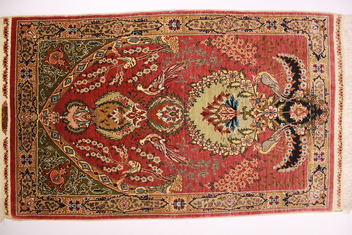 Hereke Teppiche werden sehr sorgfältig in der Türkei von hand geknüpft. Sie bestehen meist aus reiner Seide und können eine Knüpfdichte bis 5 Mio. Knoten/Qm erreichen. Hereke Teppiche sind sehr wertvoll und dekorativ. Sie werden meistens in kleineren Größen geknüpft und als Wandteppich verwendet.