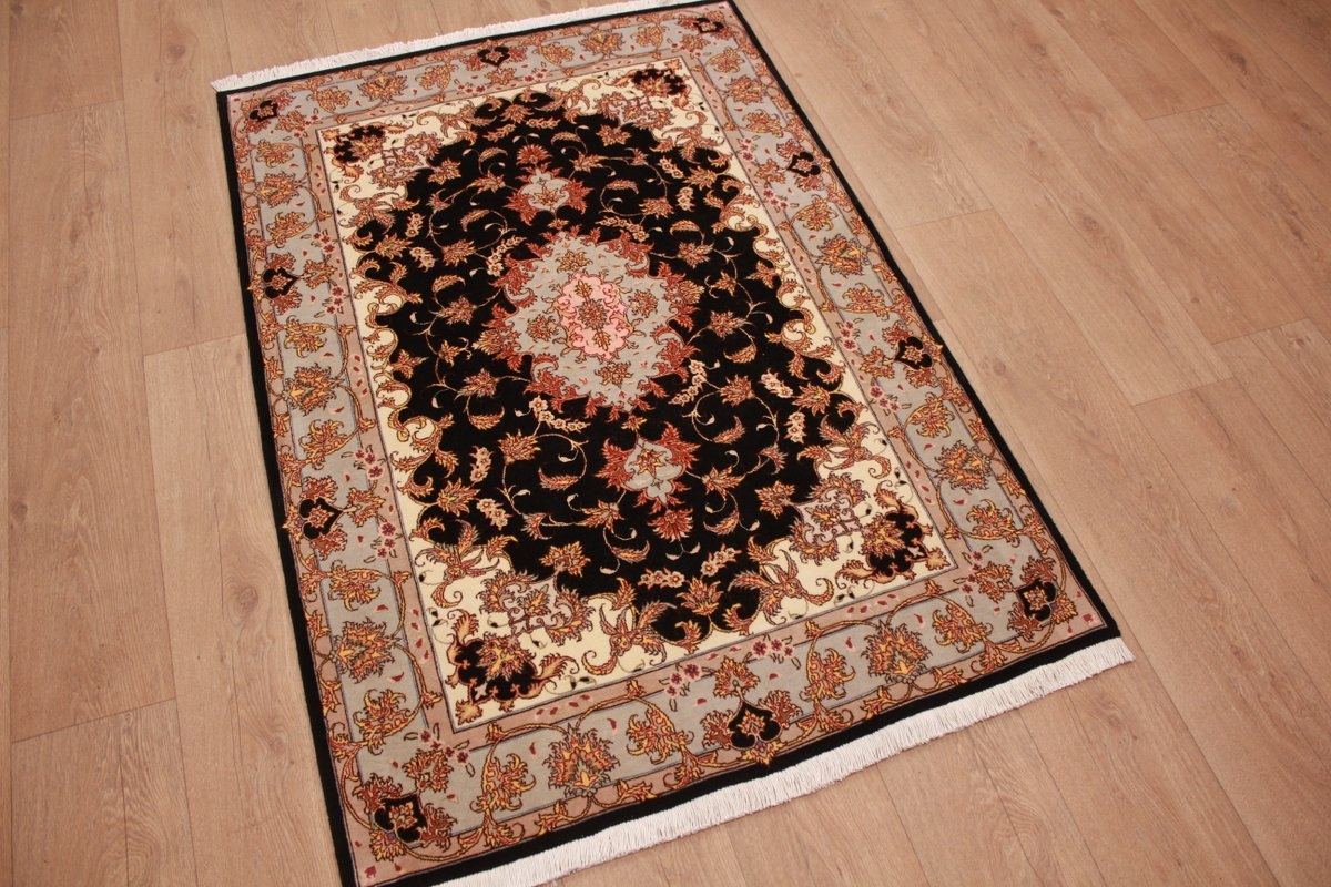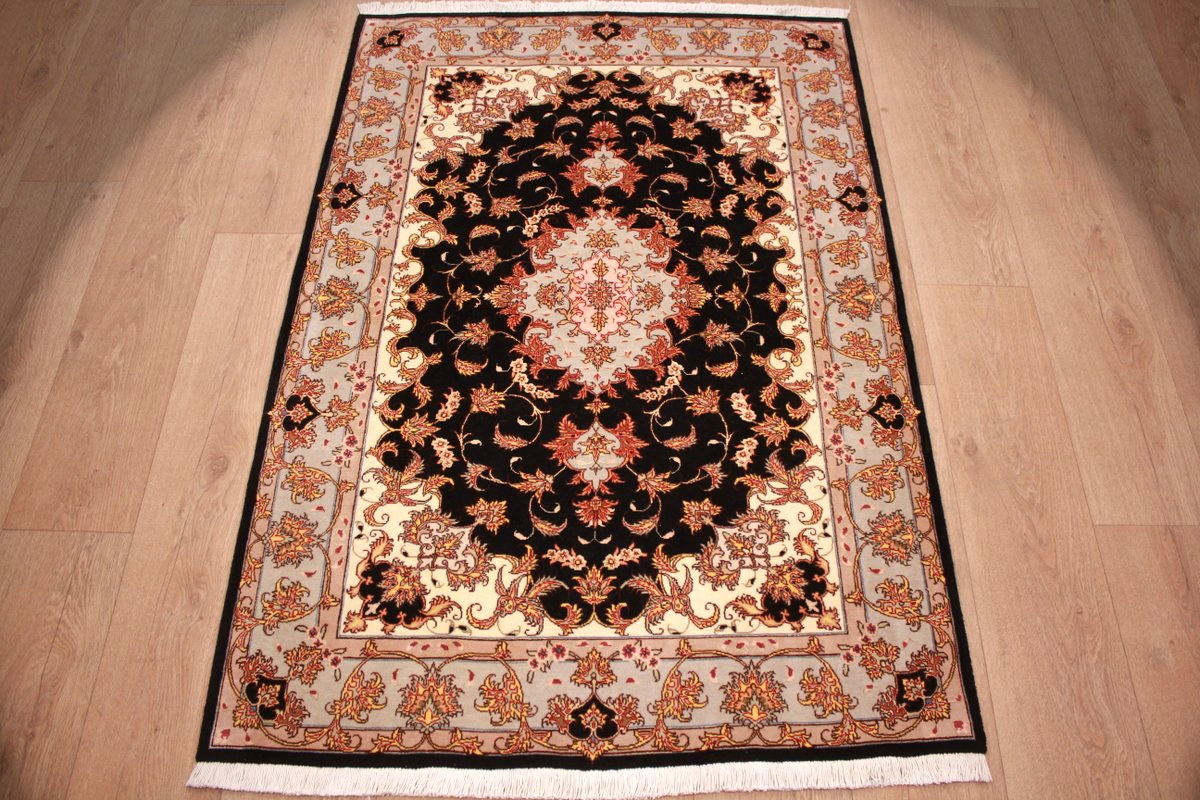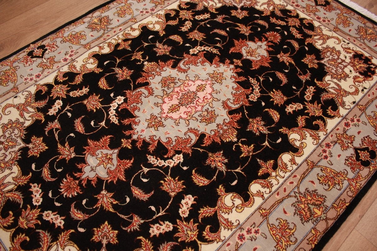 Perserteppich "Taabriz"  floral mit Seide 150x102 cm Schwarz