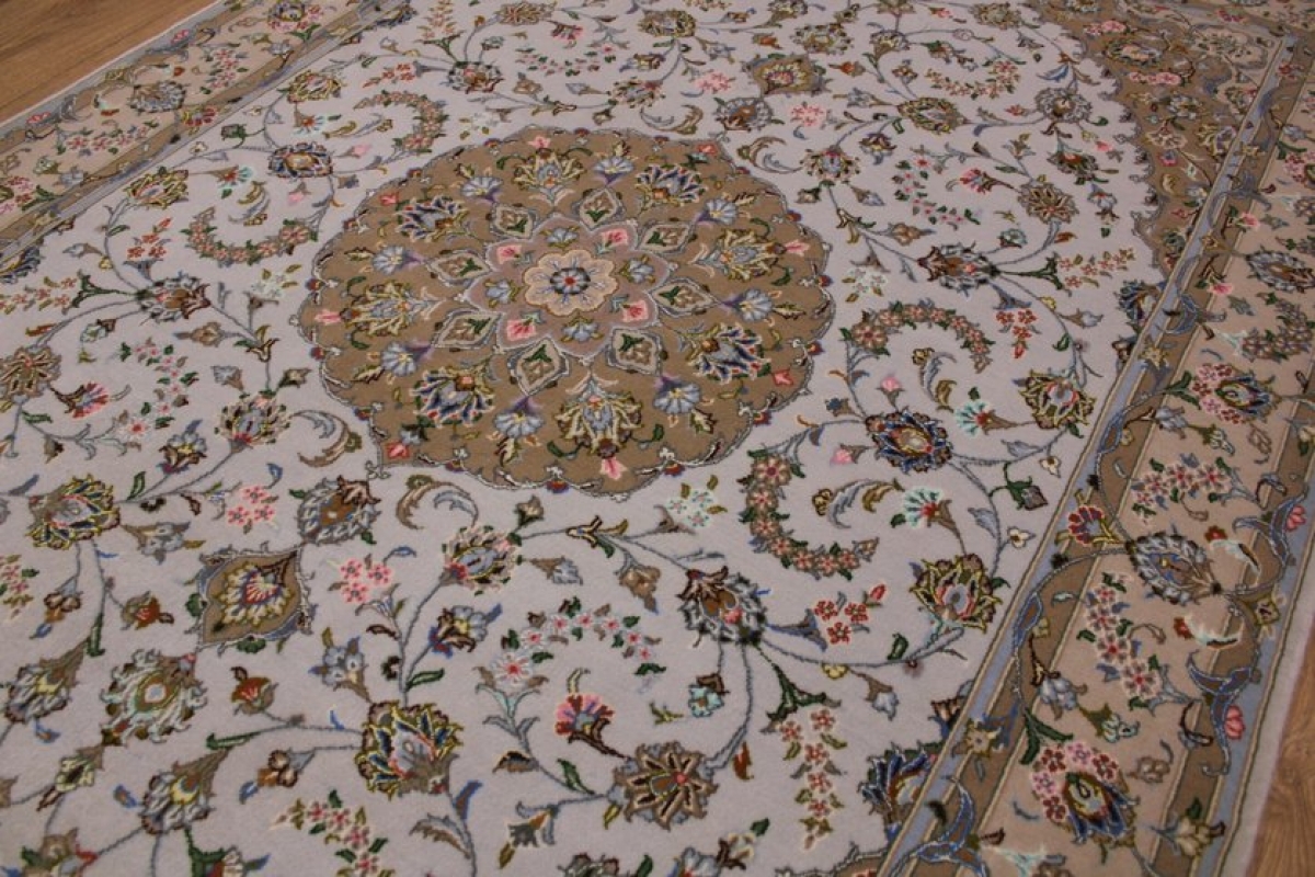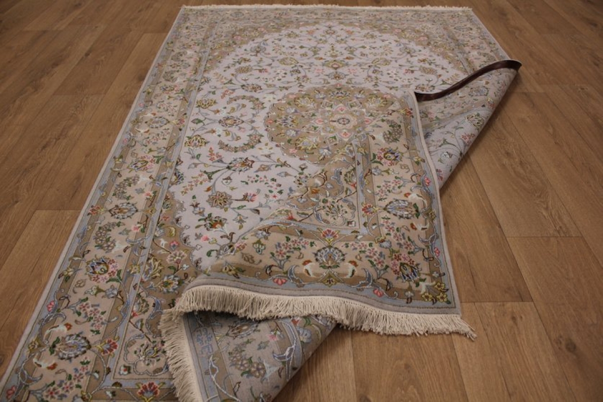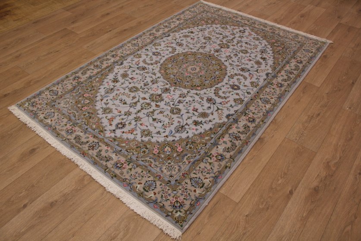 Signierter Perserteppich Keschan 219x143 cm Grau/Blau
