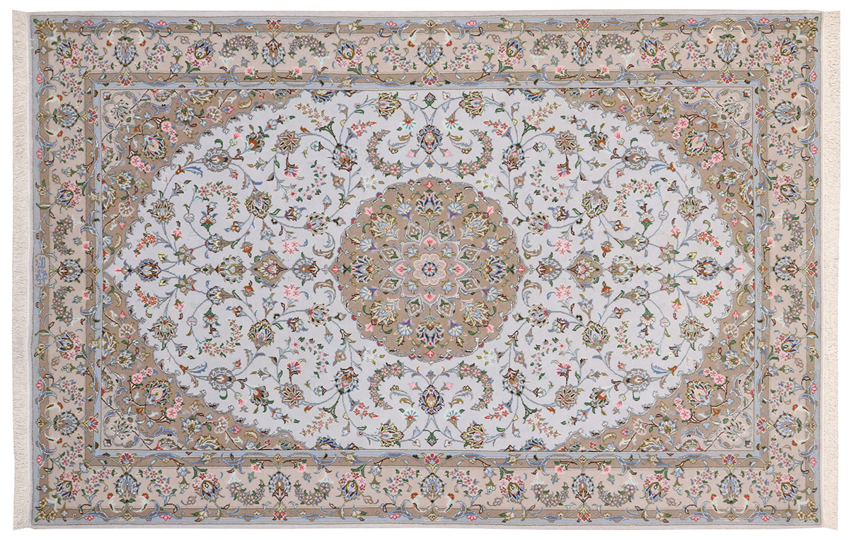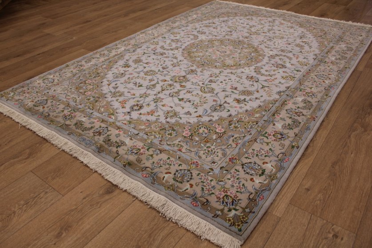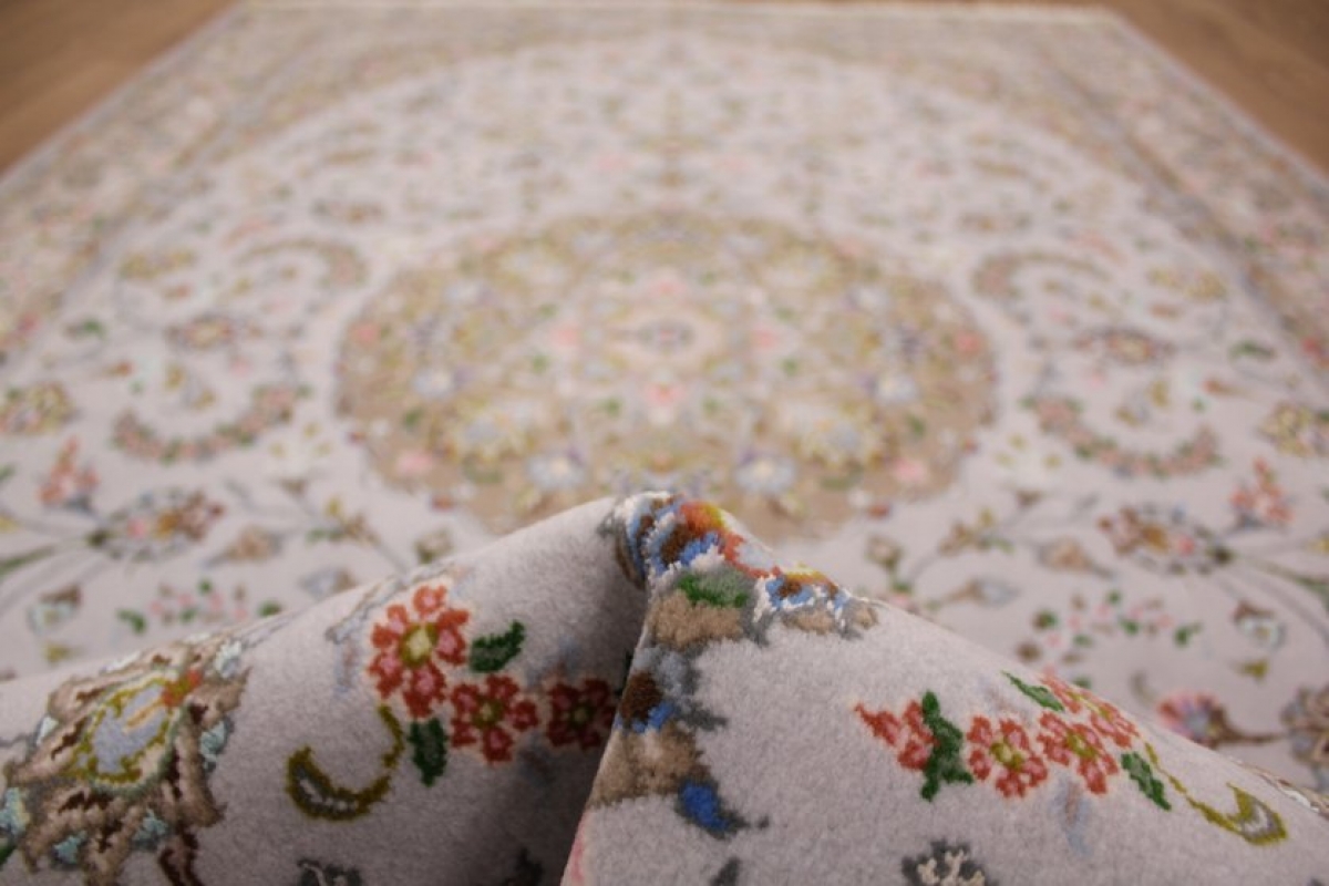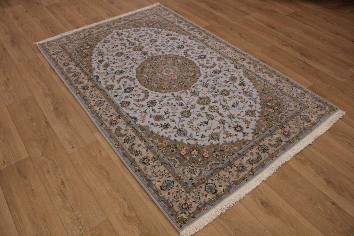 Signierter Perserteppich Keschan 219x143 cm Grau/Blau