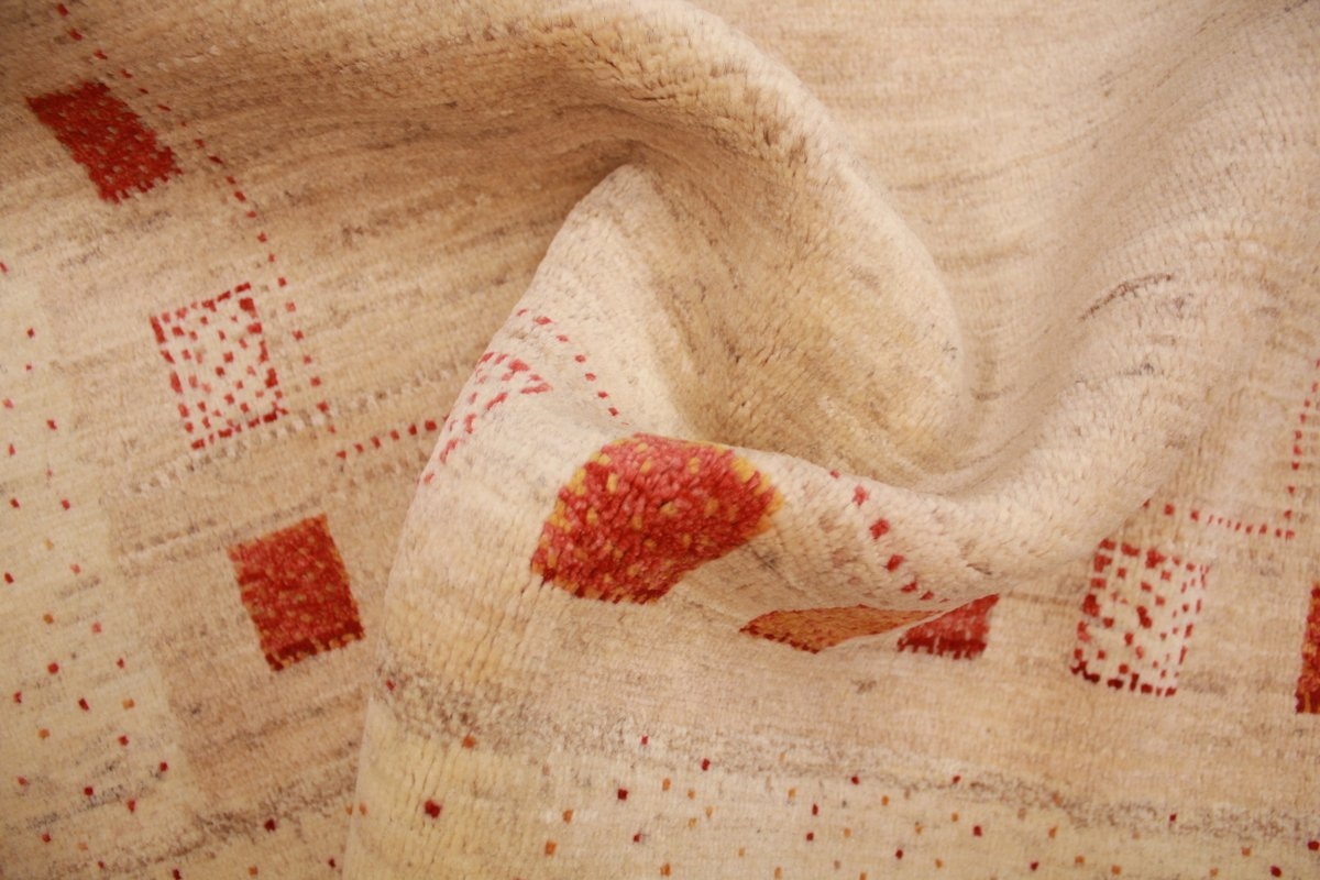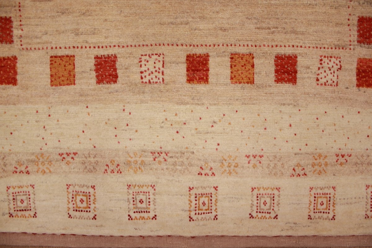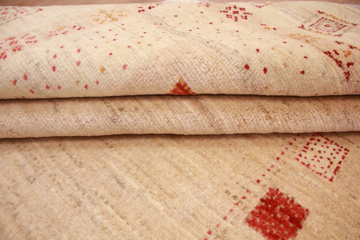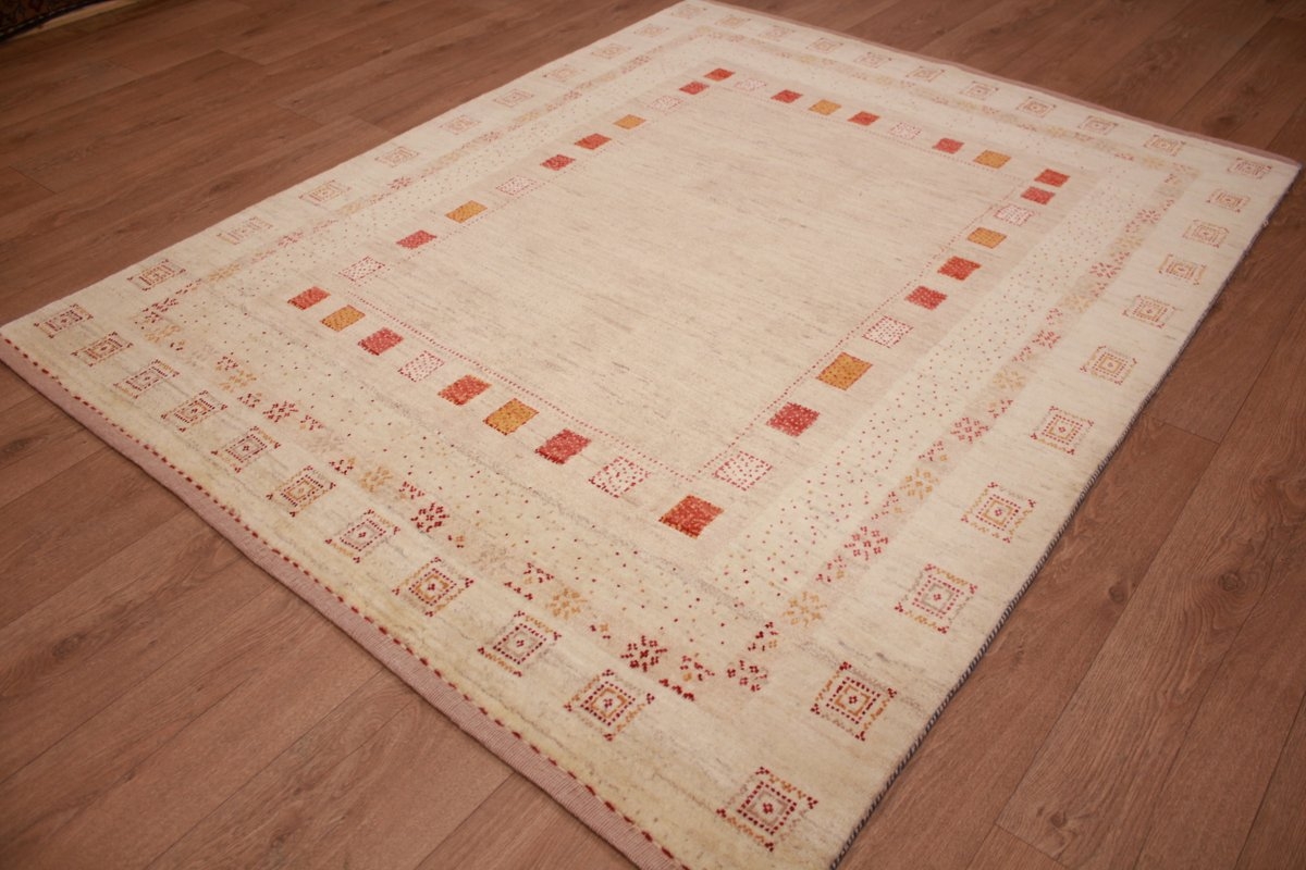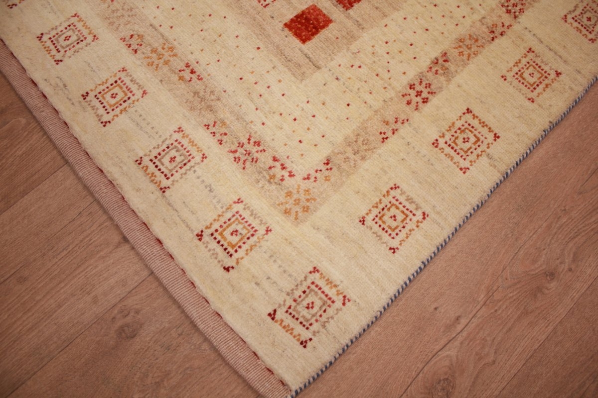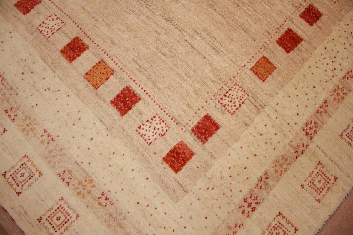 Der Loribaft Teppich ist die gehobene Klasse der populären, modernen und hochflorigen Gabbeh Teppiche aus der südwestlichen persischen Bergregion. Der Loribaft Gabbeh Teppich wird vom Nomadenvolk dieser Region handgeknüpft. Dabei wird die beste Schafswolle verwendet und auf pflanzlicher Basis gefärbt. Die Knüpfung von Loribaft Teppichen ist mehr als doppelt so fein wie ursprüngliche Gabbeh Teppiche. Die Muster sind sehr modern und stilvoll, die Farbgestaltung sehr warm und harmonisch. Diese hochwertige Qualität muss nicht teuer sein, hat aber ihren Preis!