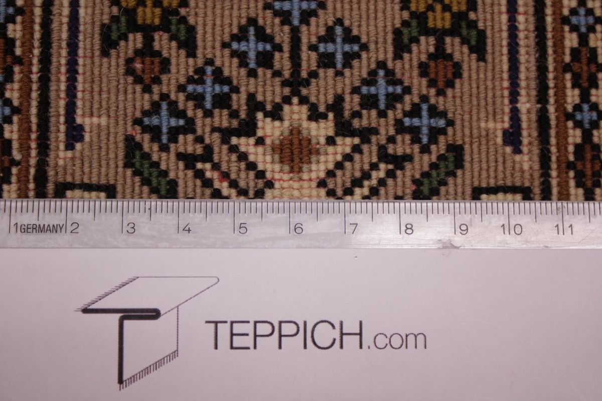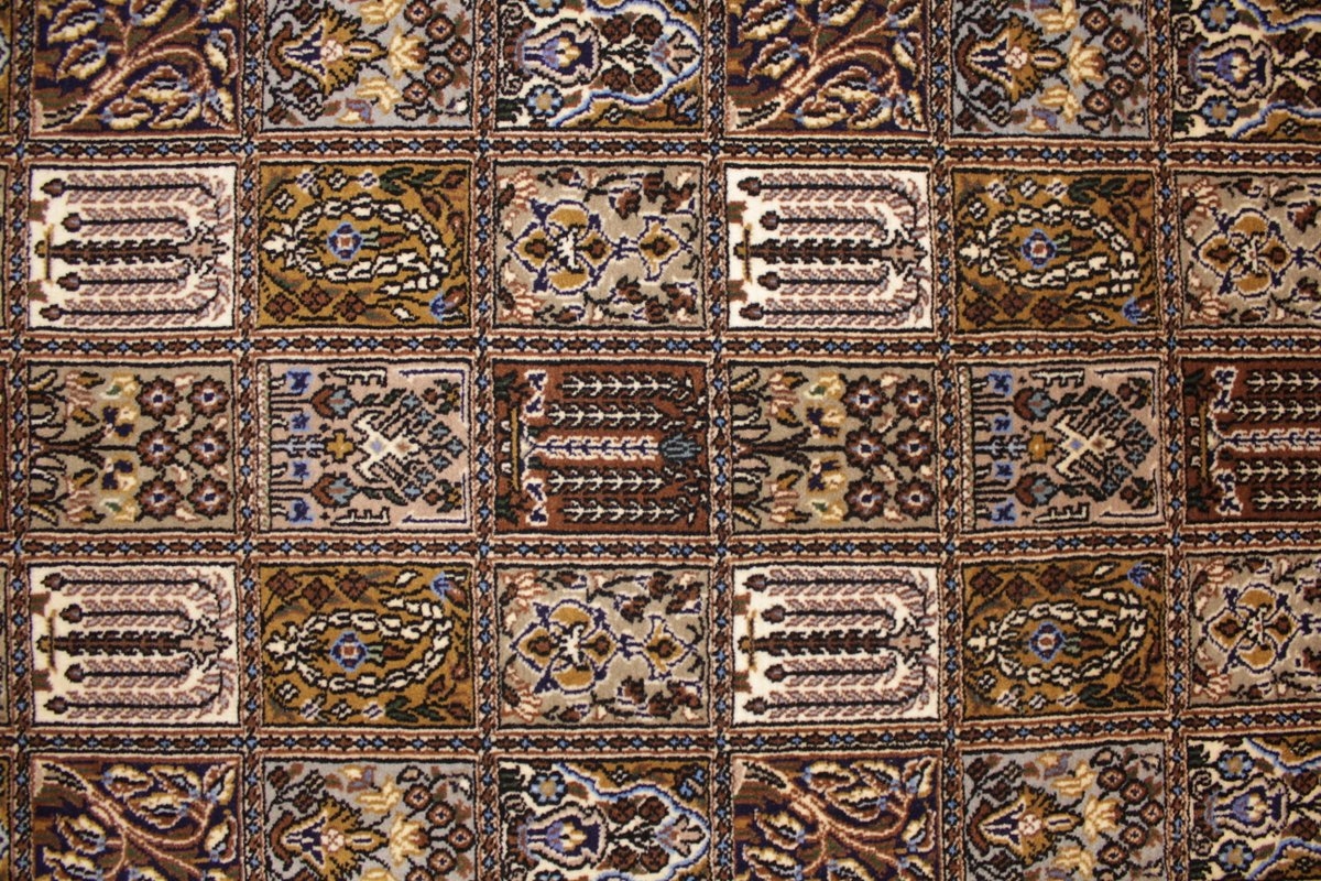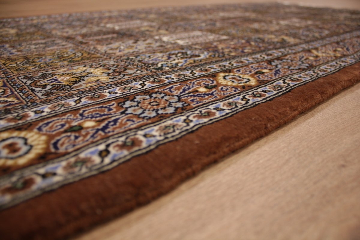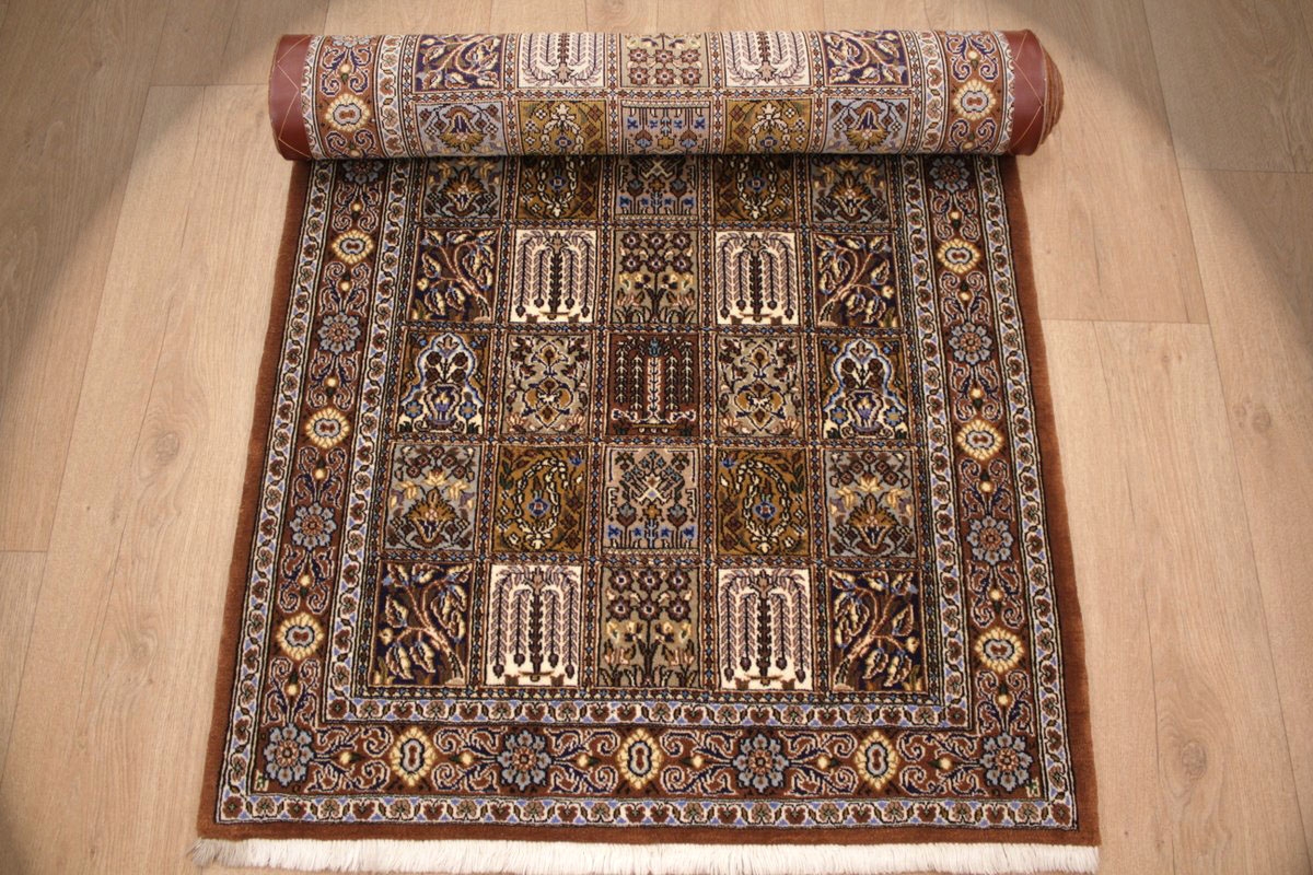 Trotz der vielseitigen Farbpalette hat der Gom-Teppich niemals grelle Farkontraste, sondern achtet auf eine harmonische Farbabstimmung. Bemerkenswert ist auch die äußerst exakte Knüpfung, die fast an Maschinenarbeit erinnert.