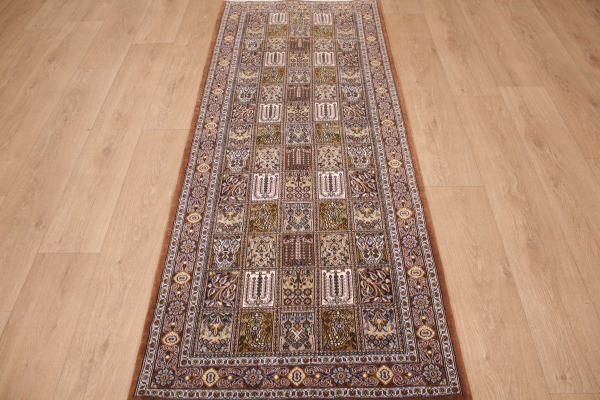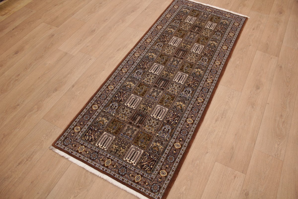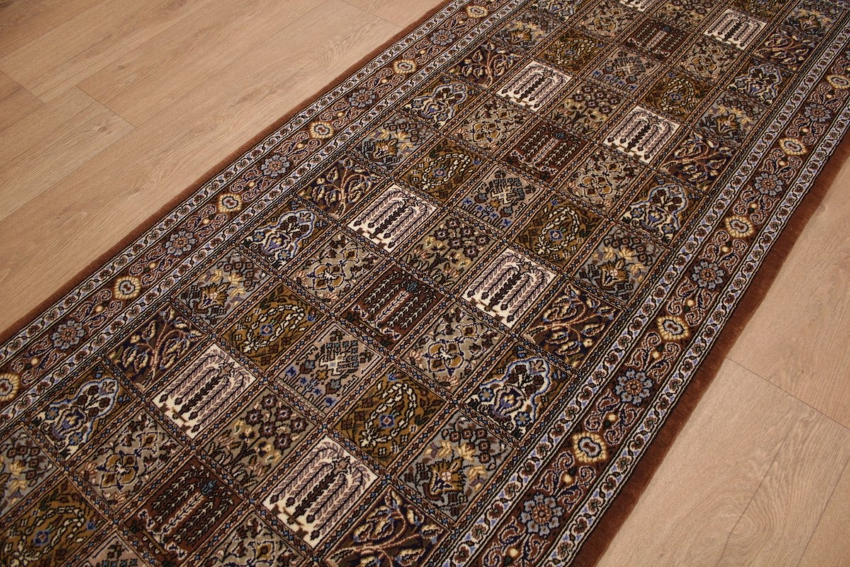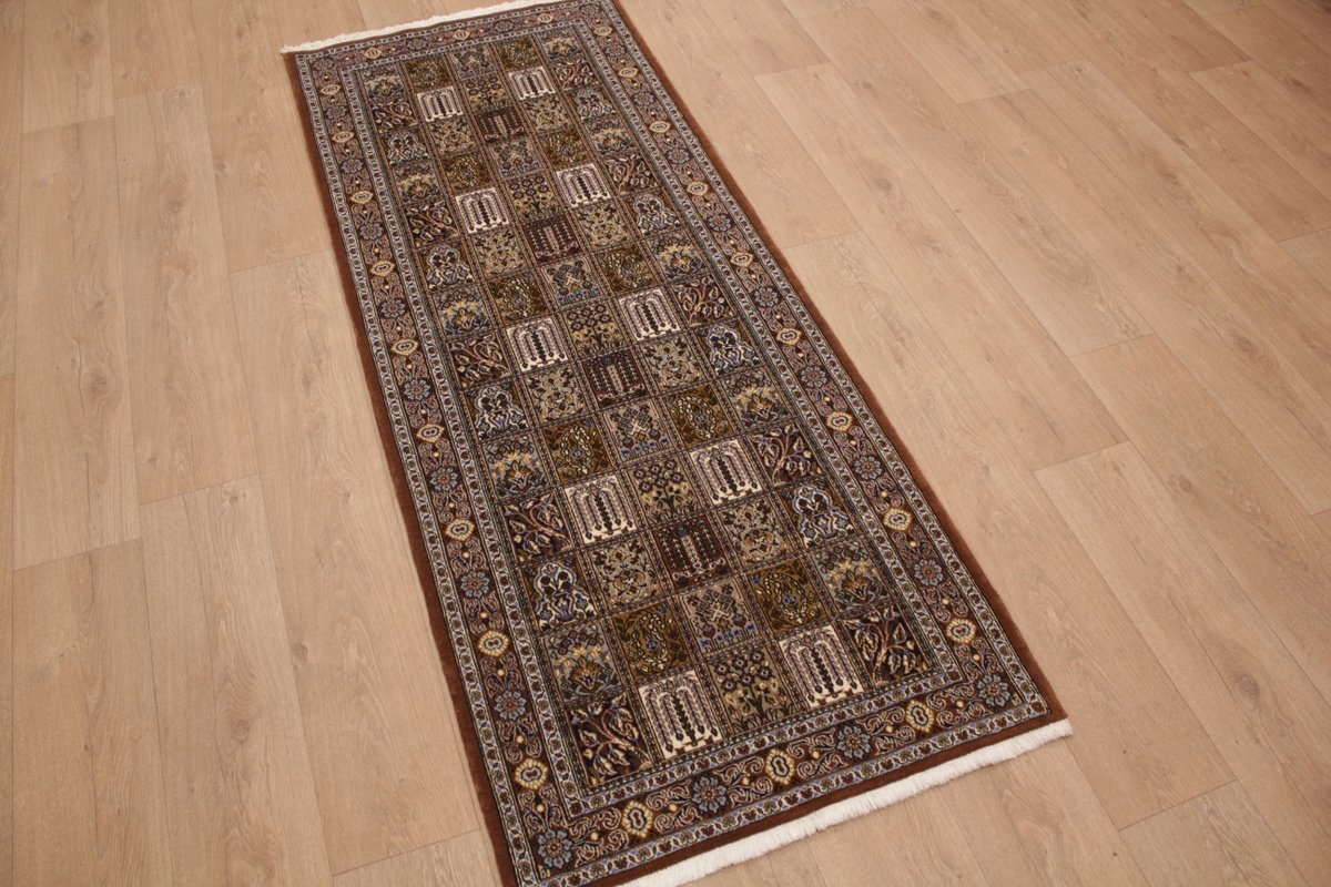 Läufer Ghom Perserteppich 208x83 cm Braun Feldermotiv