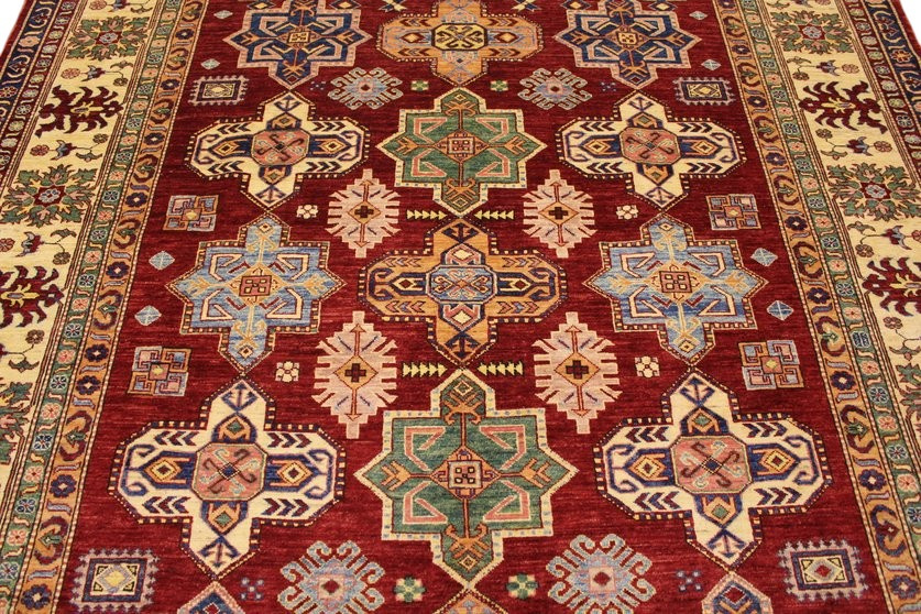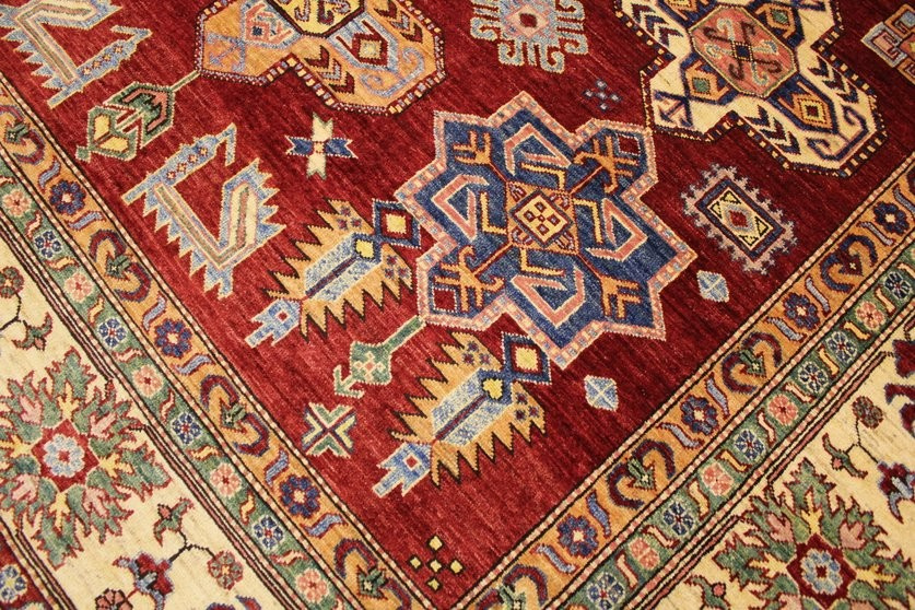 Kazak Teppiche werden in Pakistan handgeknüpft. Sie bestehen aus Wolle und Naturfarben.Die Motive der Kazak Teppiche sind häufig geometrisch. Ein Kazak teppich hat schöne und harmonische Farben und passt in vielen Einrichtungen.