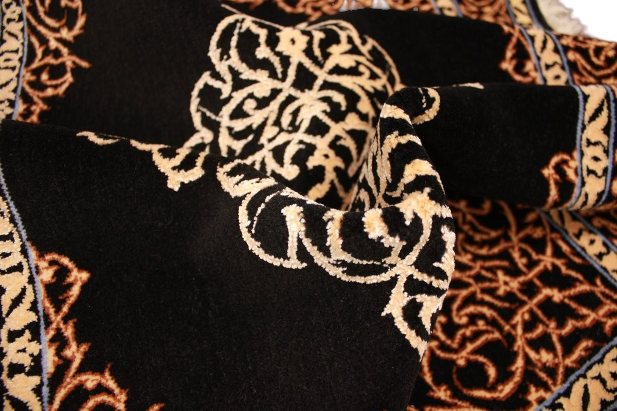 Eine breite Farbpalette findet bei Isfahan-Teppichen Verwendung, und ihre Knüpfer sind Meister im Gestalten harmonischer Kombinationen aus Untergrund und Design, wobei sie mit hellen und dunklen Farben zu variieren wissen.