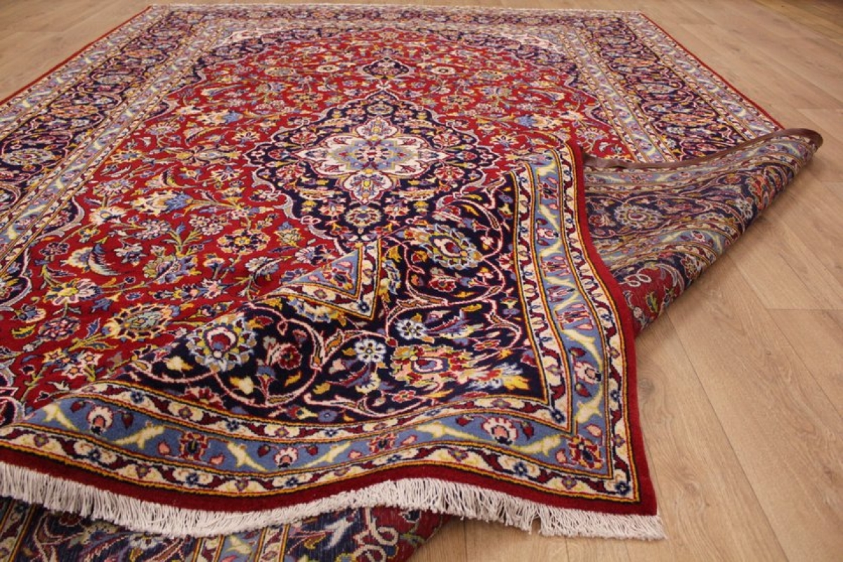 Kashaan Teppiche stammen aus Zentralpersien und besitzen eine lange Textiltradition, unter anderem handgeknüpfte Teppiche. Diese klassischen Kashaan Teppiche werden von den Bewohnern der mittlerweile 80 umliegenden Dörfer hergestellt. Die Teppiche aus Kashaan haben meist ein Medallionmuster und rötliche und/oder dunkelblaue Farbtöne. Die Knüpfkunst der Kashaan Teppiche ist international sehr populär.