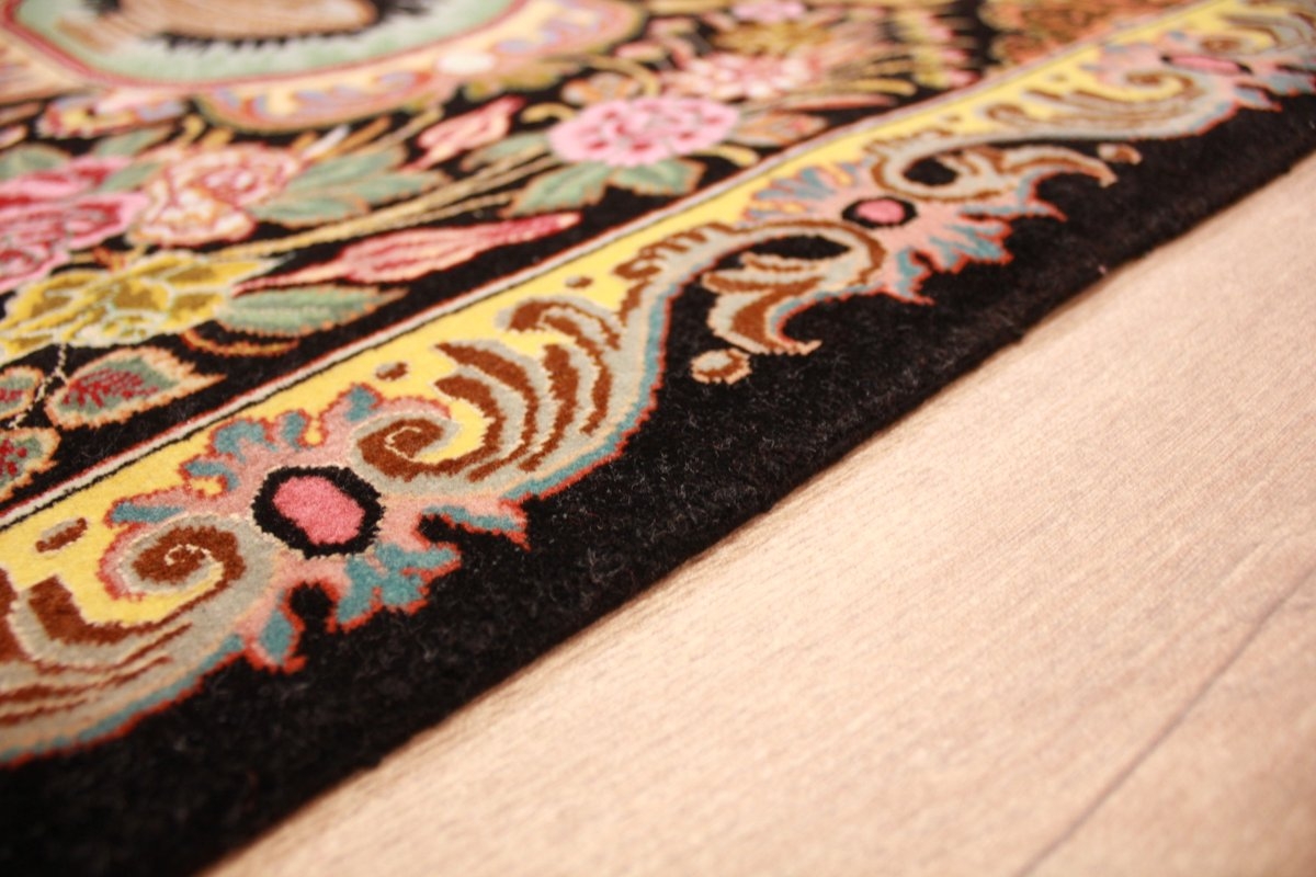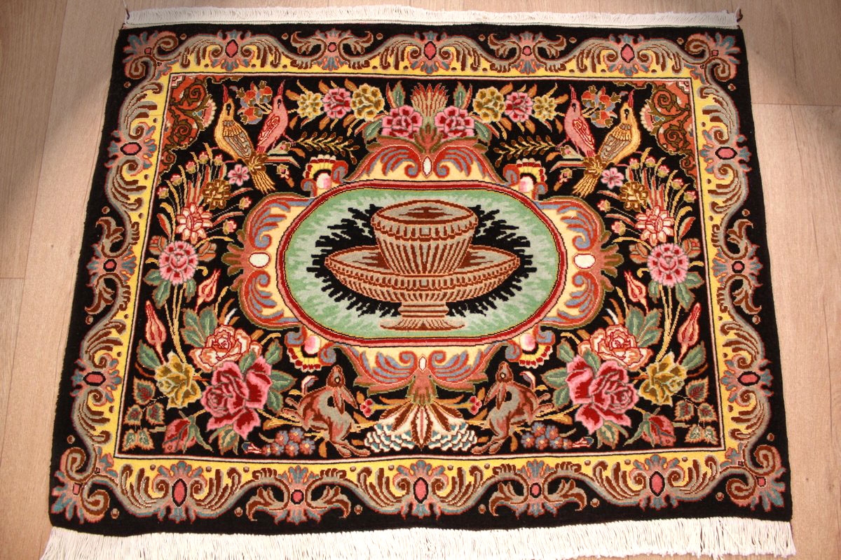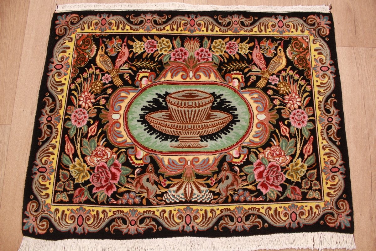 Perserteppich Ghom Orient Teppich 92x69 cm Schwarz