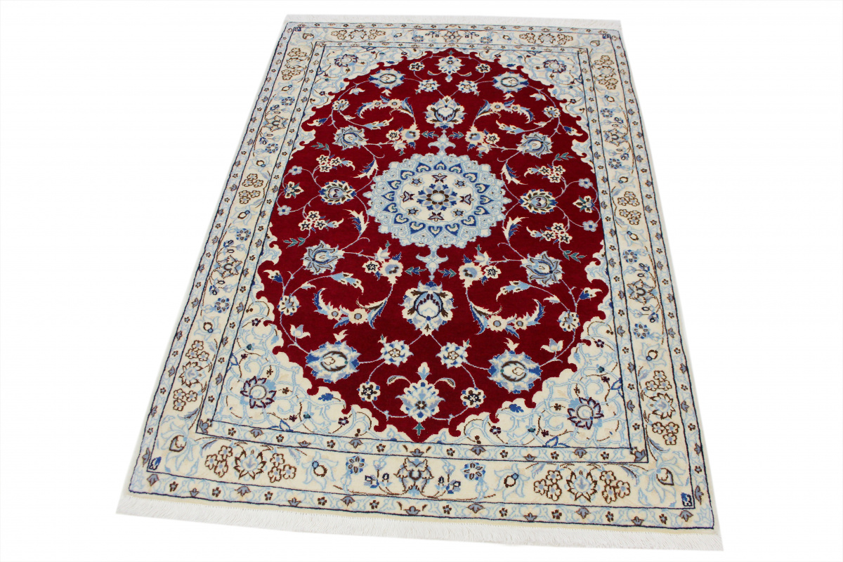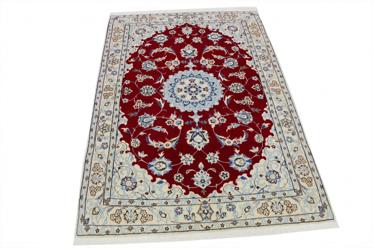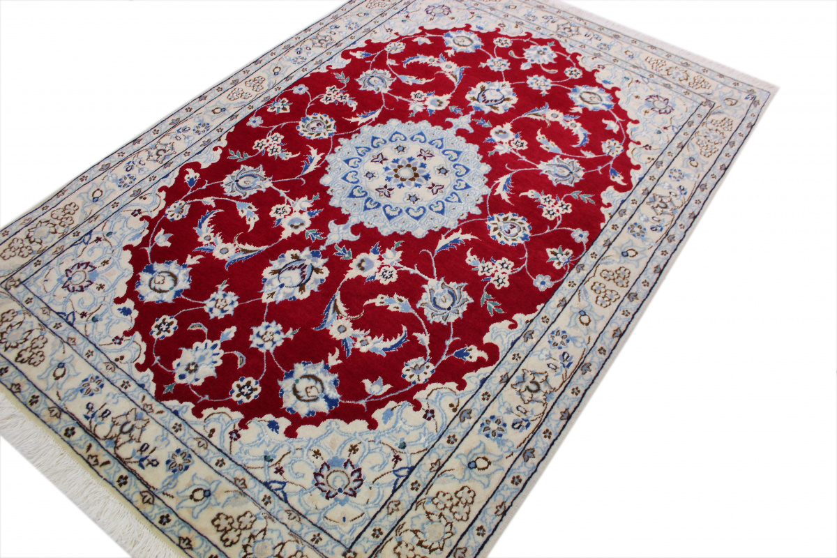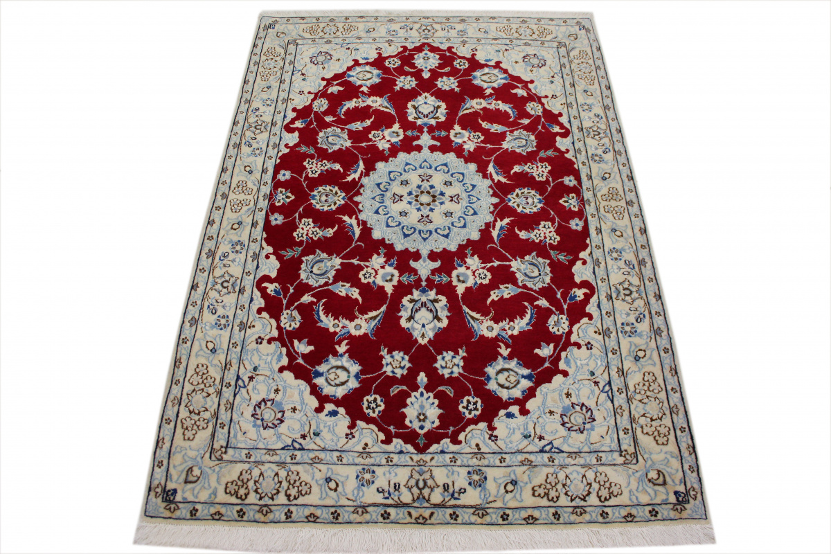 Perserteppich Nain 6la mit Seide 122x83 cm Rot