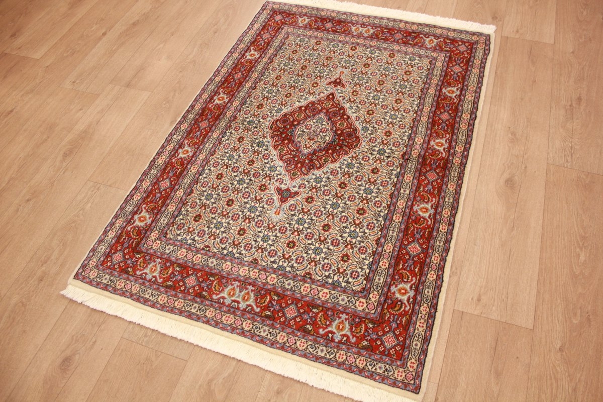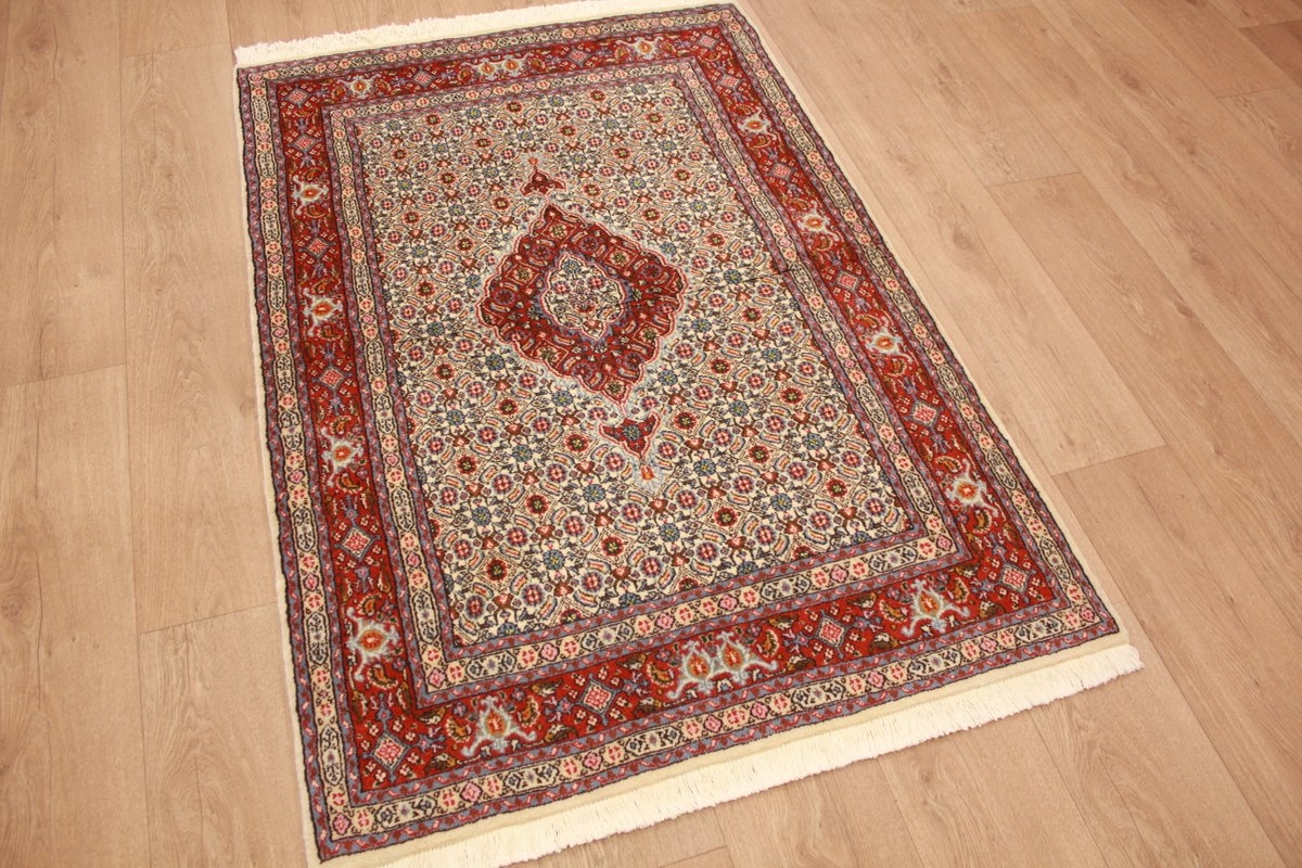 Perser Teppich Moud mit Seide 145x92 cm Beige