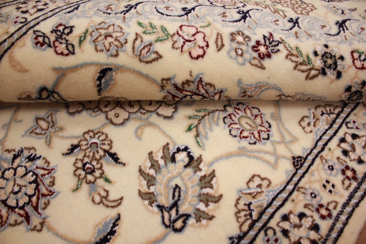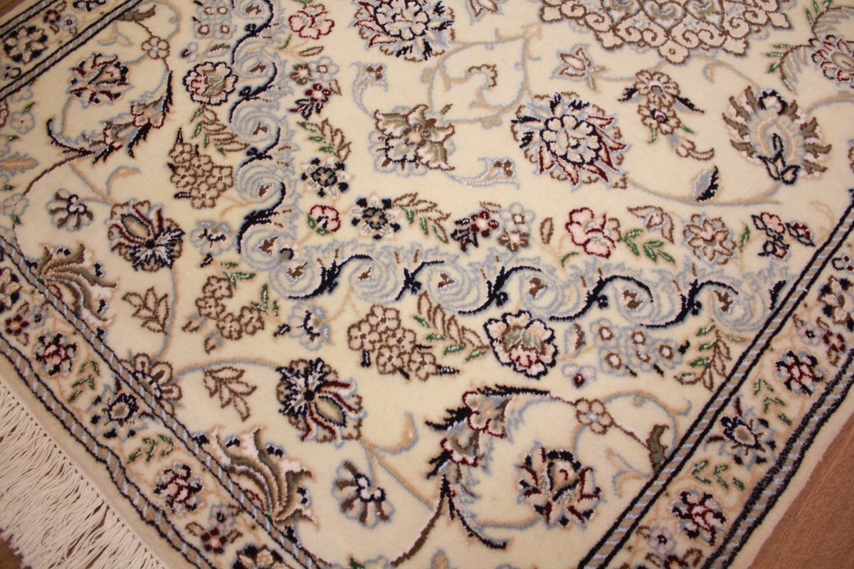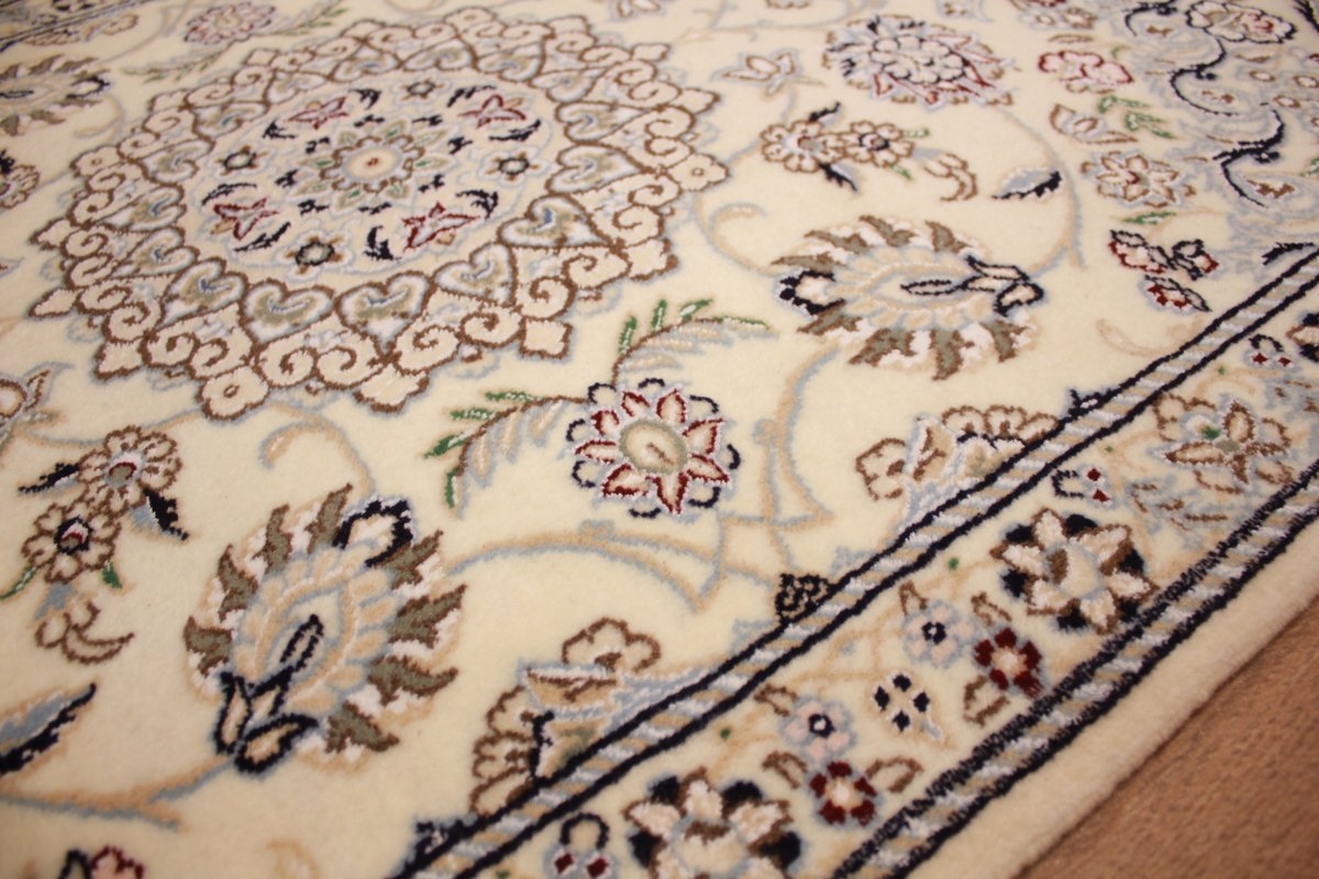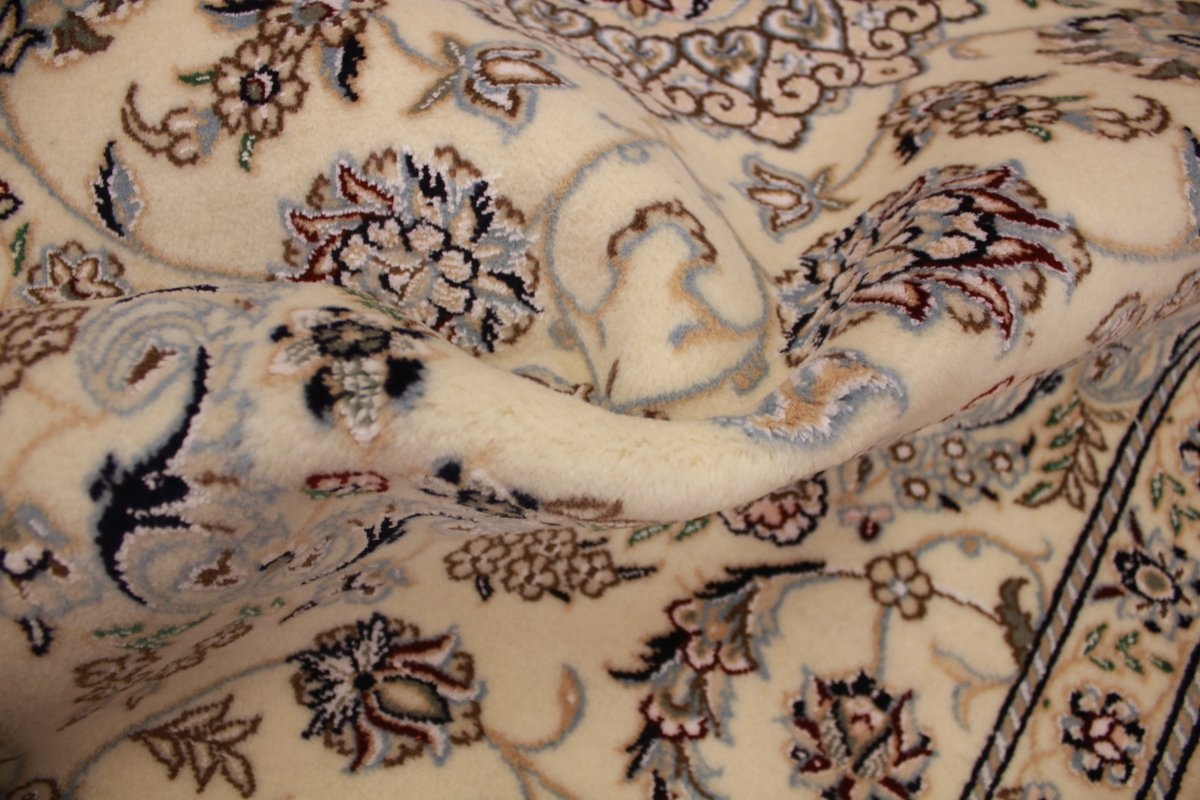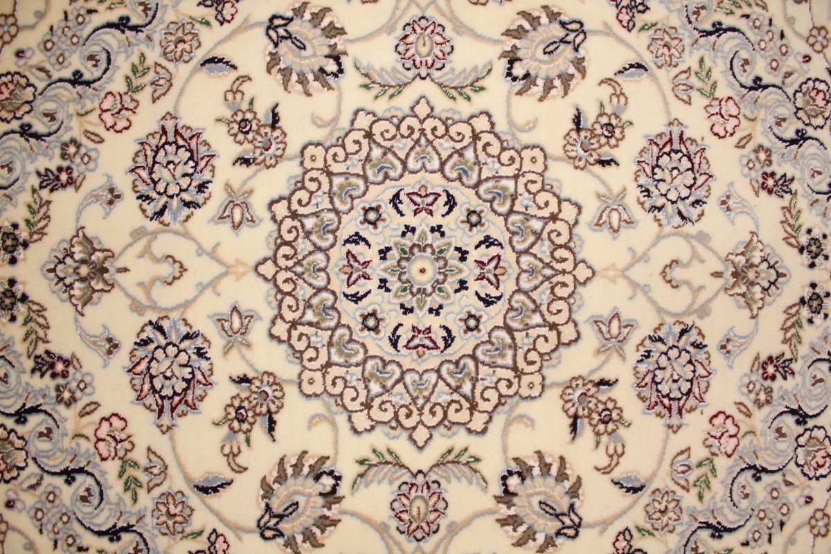 Die Stadt Nain in der Nähe von Isfahan im Zentralpersien ist bekannt für ihre feinen Teppiche, die mehr als eine Million Knoten pro Quadratmeter haben können. Je feiner die Kette, desto feiner kann auch die Knüpfung sein. In der Regel gibt es vier Qualitäten: Nain-Kaschmar (grob geknüpft), Nain-Noh-La (Baumwollfaden der Kette aus 9 Fasern gezwirnt, wodurch 40 Raj auf 7 cm kommen), Nain-Schisch-La (6 Fasern entsprechend 60 Raj), Nain-Tchaha-La (4 Fasern entsprechend 80 Raj). Alle Nain Teppiche sind durchgemustert und mit Medaillon.