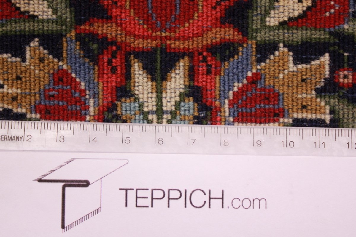 Trotz der vielseitigen Farbpalette hat der Gom-Teppich niemals grelle Farkontraste, sondern achtet auf eine harmonische Farbabstimmung. Bemerkenswert ist auch die äußerst exakte Knüpfung, die fast an Maschinenarbeit erinnert.