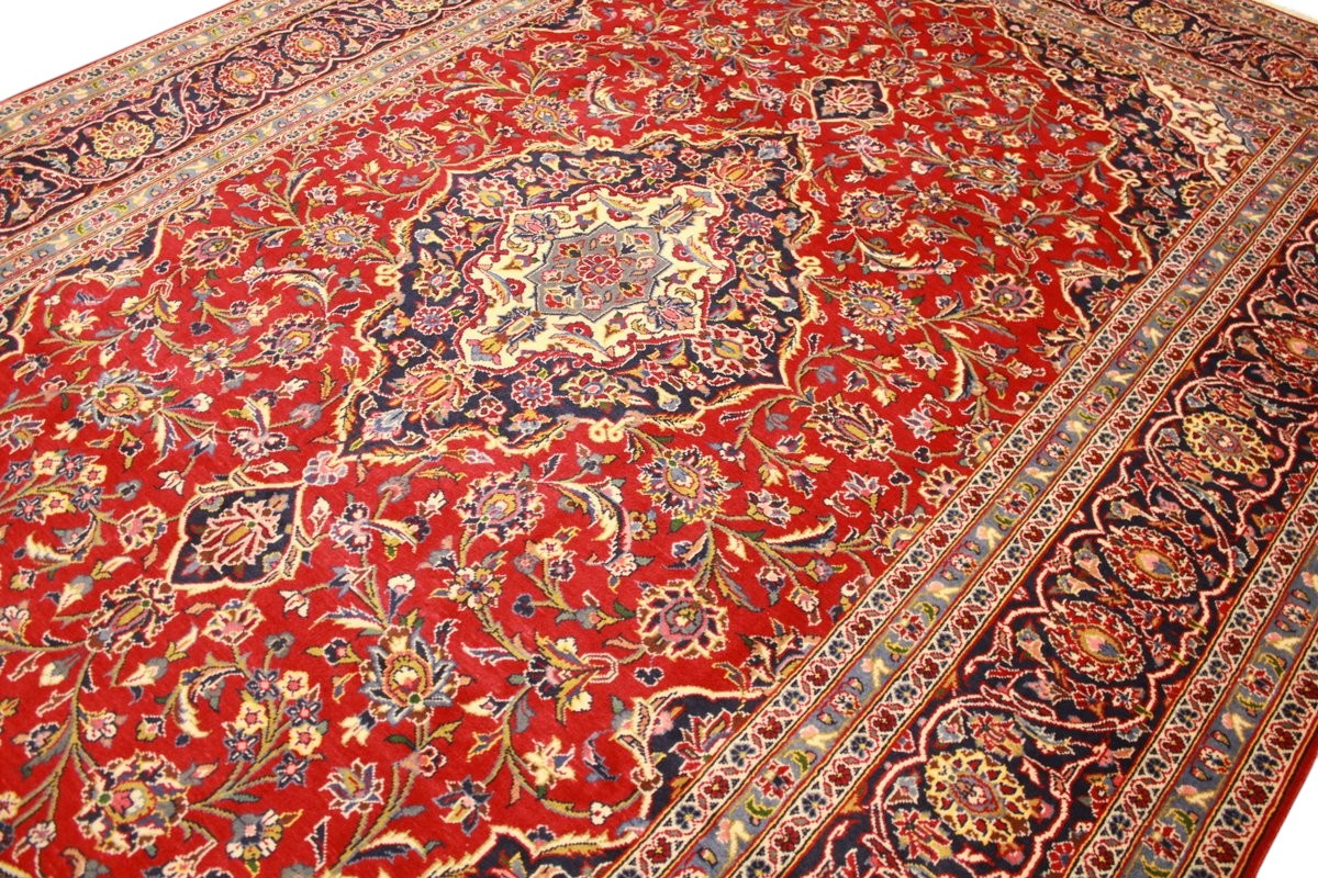 Kashaan Teppiche stammen aus Zentralpersien und besitzen eine lange Textiltradition, unter anderem handgeknüpfte Teppiche. Diese klassischen Kashaan Teppiche werden von den Bewohnern der mittlerweile 80 umliegenden Dörfer hergestellt. Die Teppiche aus Kashaan haben meist ein Medallionmuster und rötliche und/oder dunkelblaue Farbtöne. Die Knüpfkunst der Kashaan Teppiche ist international sehr populär.