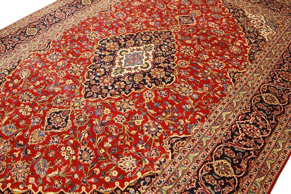 Kashaan Teppiche stammen aus Zentralpersien und besitzen eine lange Textiltradition, unter anderem handgeknüpfte Teppiche. Diese klassischen Kashaan Teppiche werden von den Bewohnern der mittlerweile 80 umliegenden Dörfer hergestellt. Die Teppiche aus Kashaan haben meist ein Medallionmuster und rötliche und/oder dunkelblaue Farbtöne. Die Knüpfkunst der Kashaan Teppiche ist international sehr populär.