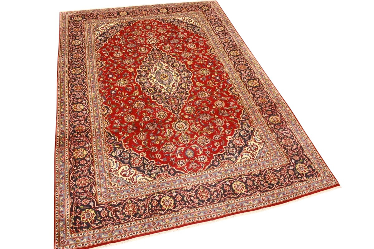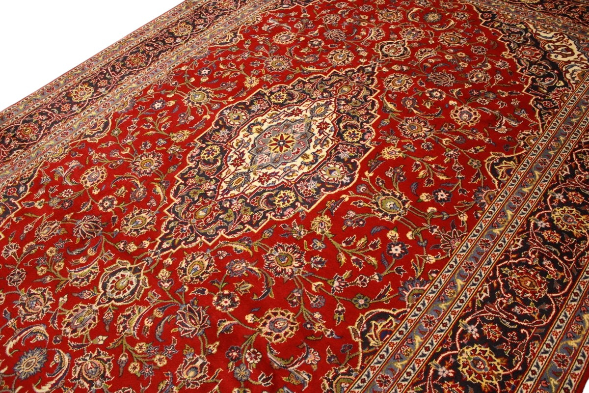 Kashaan Teppiche stammen aus Zentralpersien und besitzen eine lange Textiltradition, unter anderem handgeknüpfte Teppiche. Diese klassischen Kashaan Teppiche werden von den Bewohnern der mittlerweile 80 umliegenden Dörfer hergestellt. Die Teppiche aus Kashaan haben meist ein Medallionmuster und rötliche und/oder dunkelblaue Farbtöne. Die Knüpfkunst der Kashaan Teppiche ist international sehr populär.